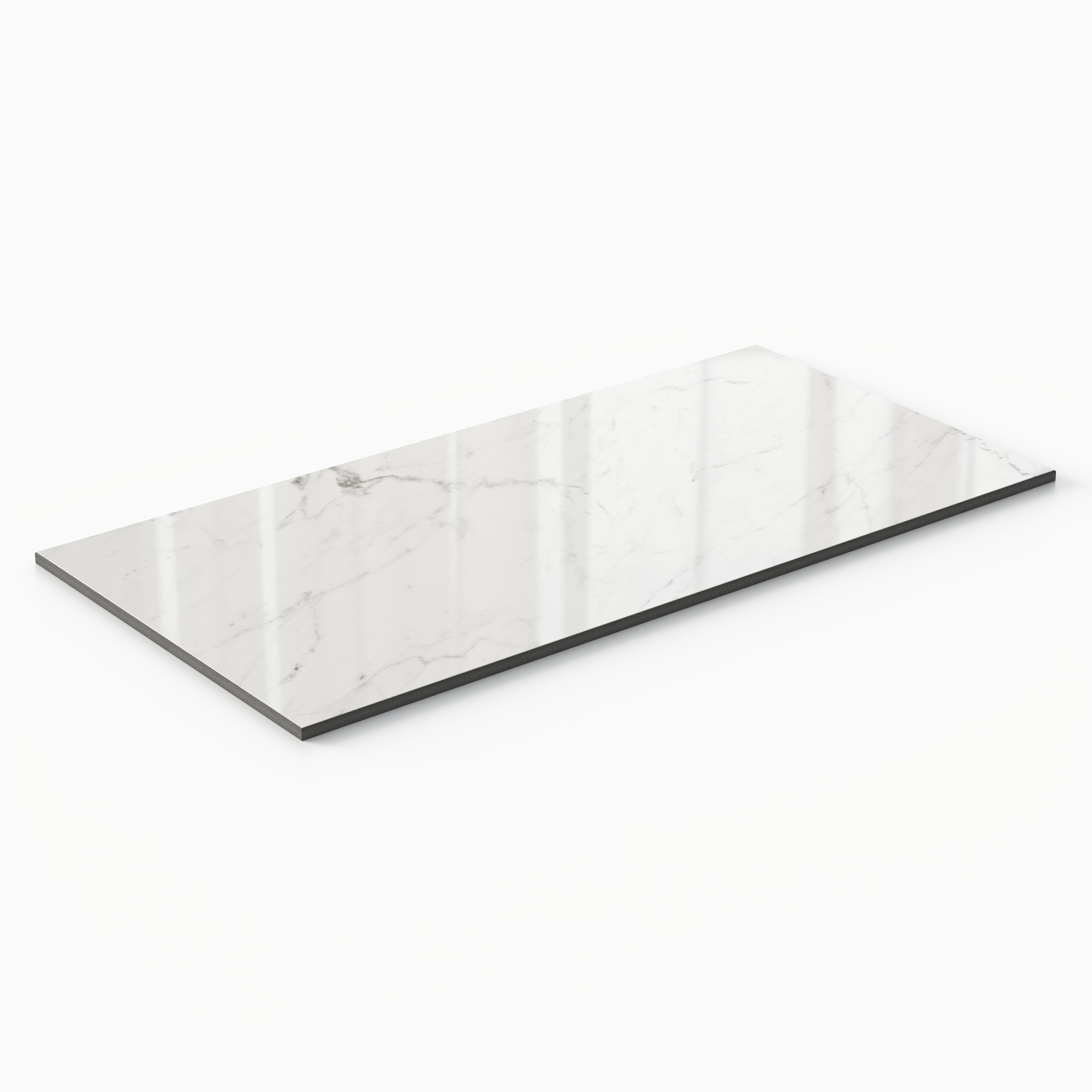 - Polished surface reflects light for a more expansive feel