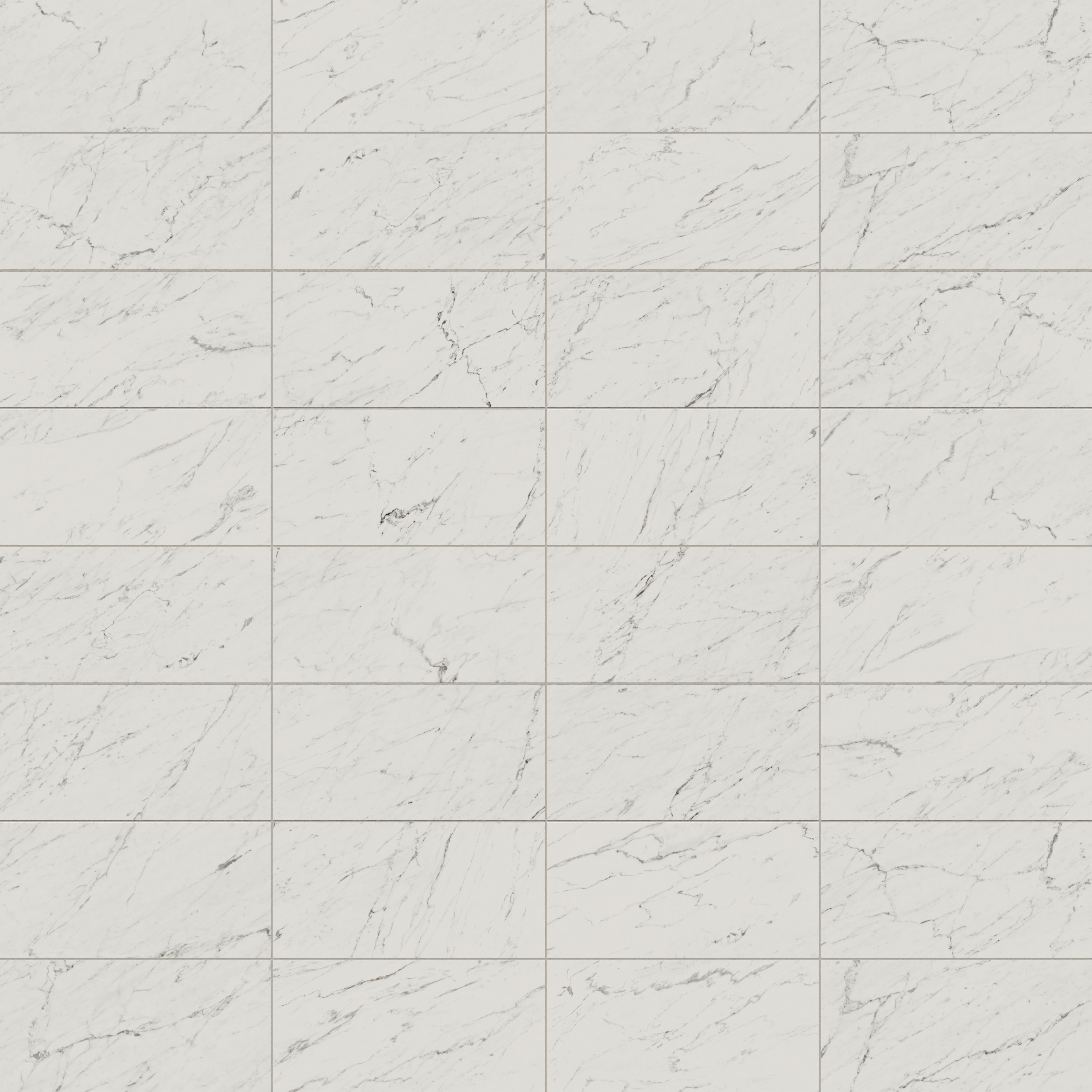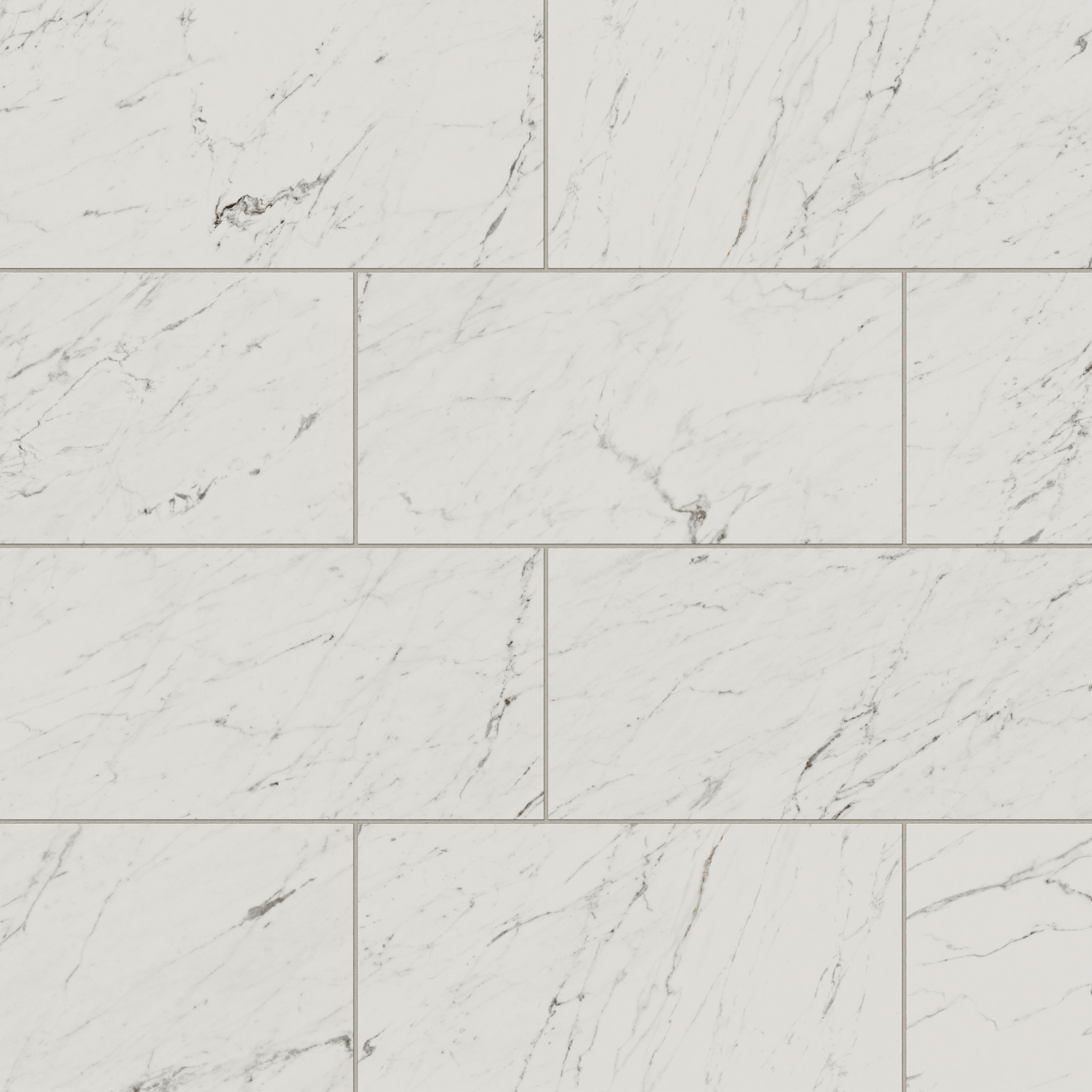 Our Blair 12x24 Polished Porcelain Tile in White Carrara fuses the sophistication of timeless materials with a refined, modern scale, featuring standard-format rectangles that mimic a natural Carrara stone look in fine-lined white. The delicate veining also varies across each lustrous piece, capturing the layered depth of this opulent marble to enhance its sense of movement and authenticity.
