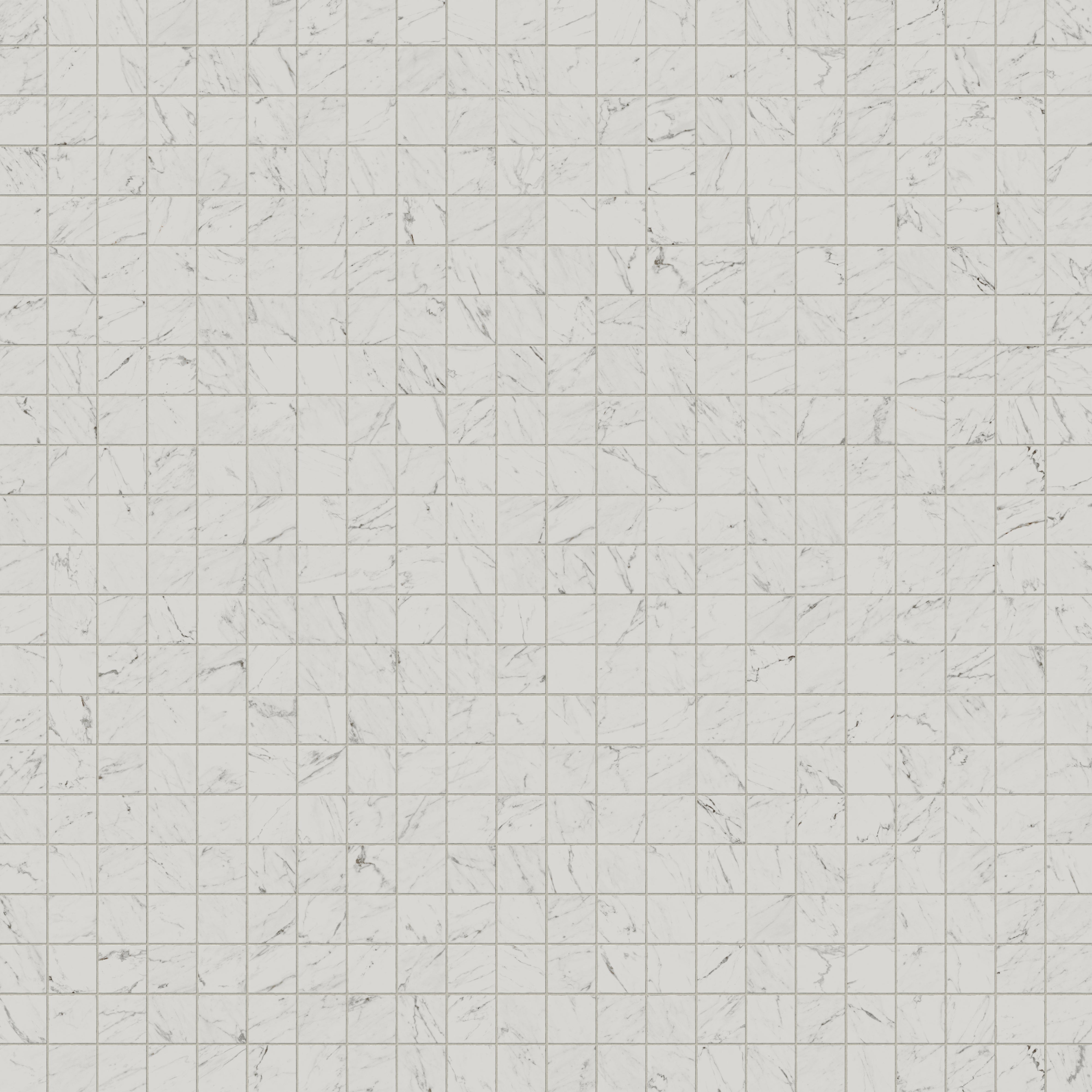 Our Blair 2x2 Matte Porcelain Mosaic Tile in White Carrara fuses the sophistication of timeless materials with a refined, modern scale, featuring mesh-mounted squares that mimic a natural Carrara stone look in fine-lined white. The delicate veining also varies across each softly textured piece, capturing the layered depth of this opulent marble to enhance its sense of movement and authenticity.