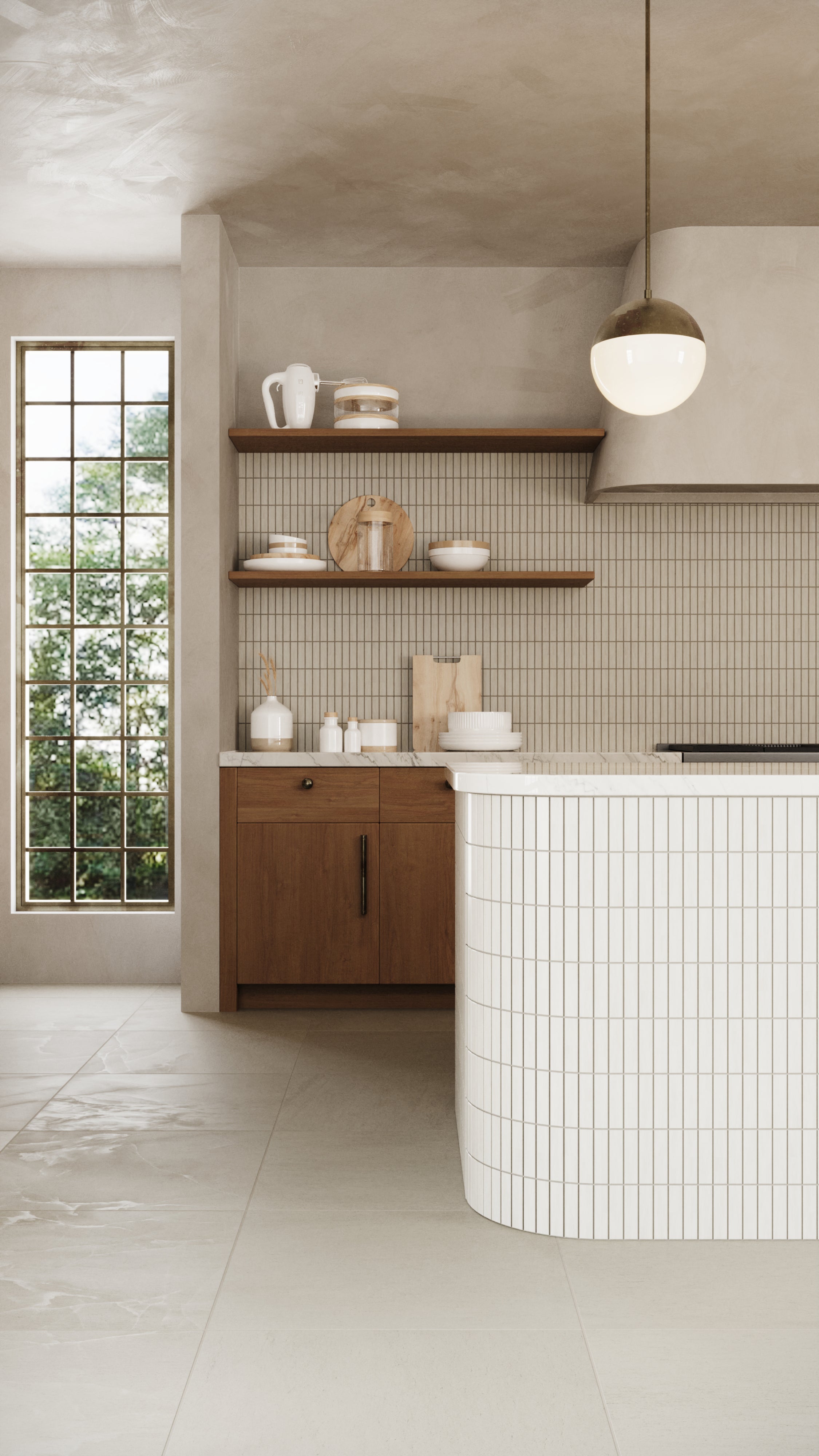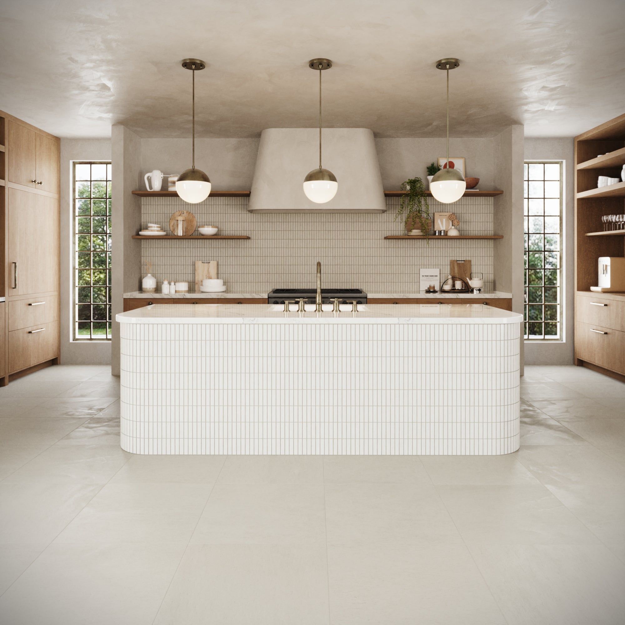Our Brody 24x24 Matte Porcelain Tile in Sand is inspired by the fine-grained character of volcanic stone formed as magma cools, captured through its warm off-white tones and subtly textured finish that enriches the mineral-like variations. Presented in a large square format, each piece creates an earthy, organic look that adapts seamlessly across modern, nature-inspired settings.