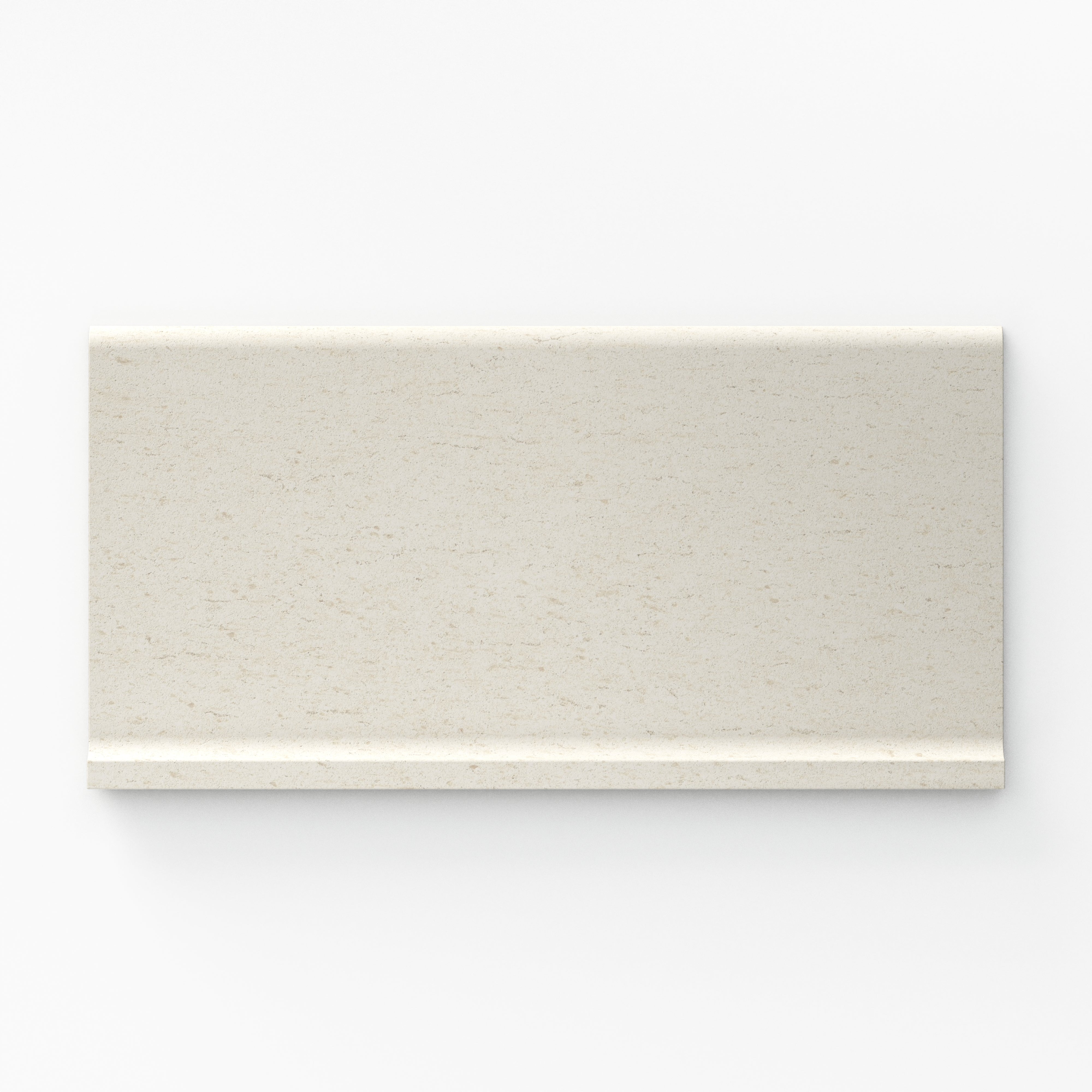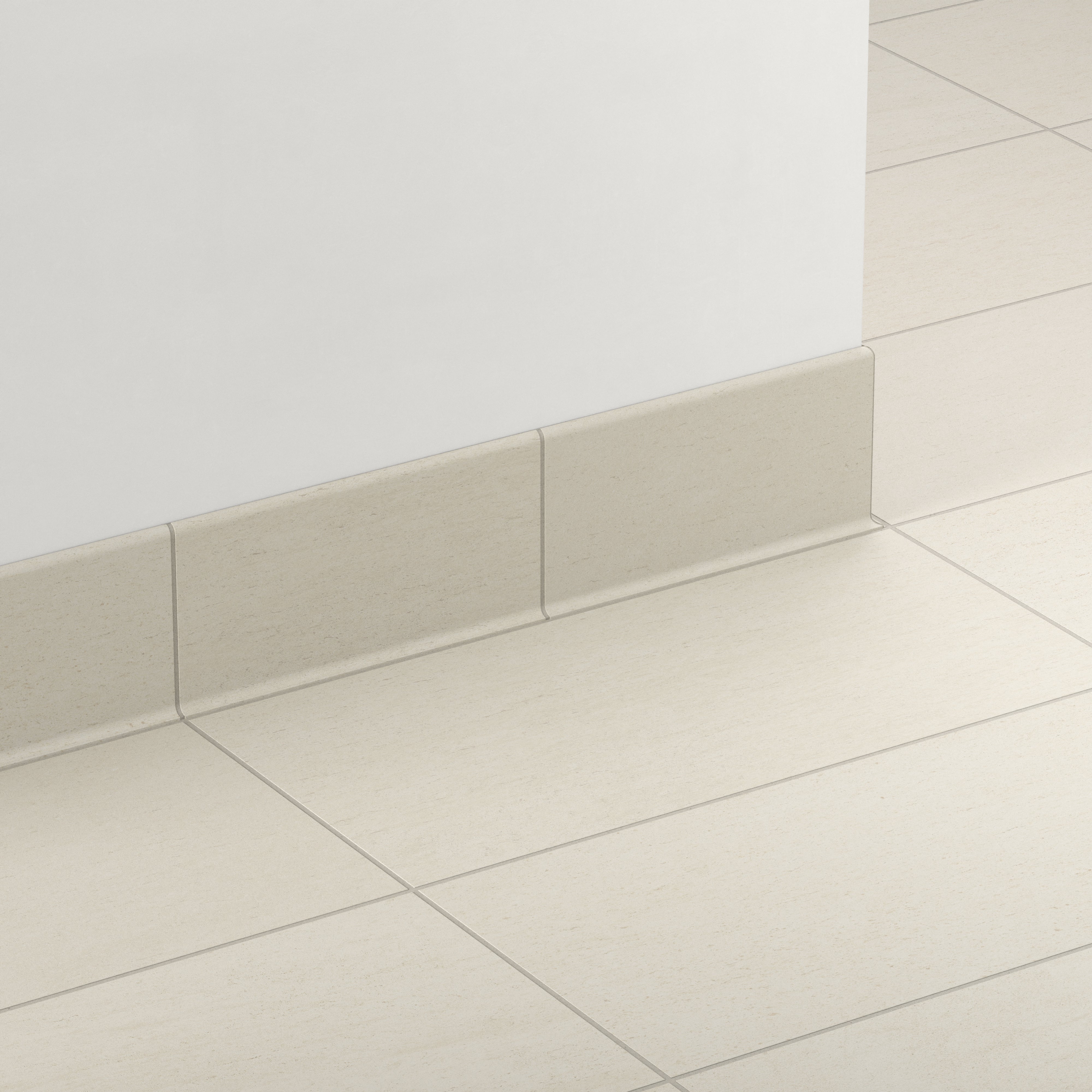 Extending the collection’s volcanic stone look, our Brody 6x12 Matte Porcelain Cove Base Tile in Sand features warm off-white tones and a subtly textured finish that enriches its mineral-like variations. Its gently concave profile forms a smooth, easy-to-clean transition between walls and floors, carrying the same earth-inspired character through every detail.