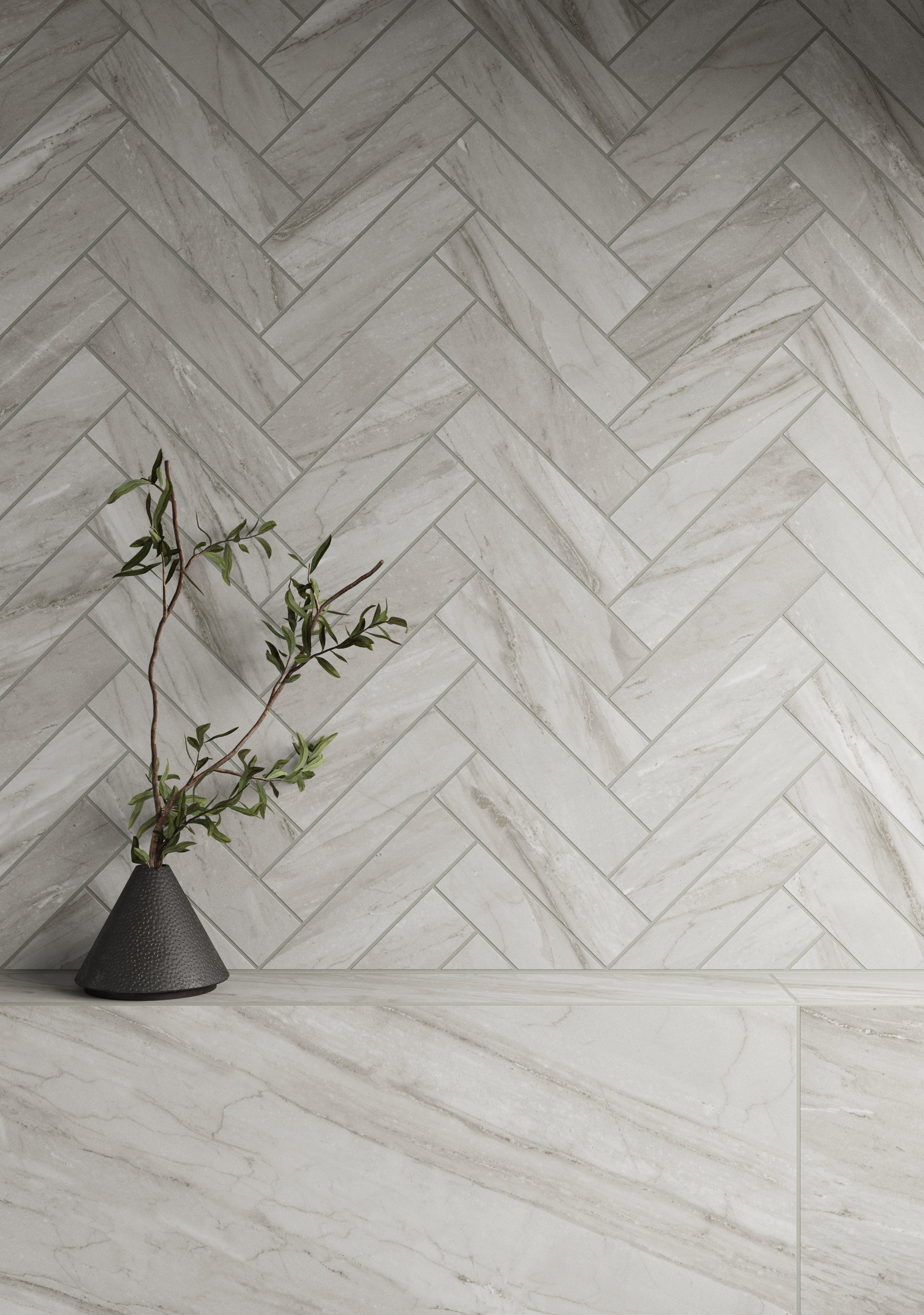 Embracing the natural marble aesthetic, our Chantel 24x48 Matte Porcelain Tile in Alaska Grey reinterprets this timeless, exquisite material through a modern rectangular format. Each large piece carries drifted veins in earthy gray tones, softened by a rustic finish that creates an expansive yet sophisticated space.