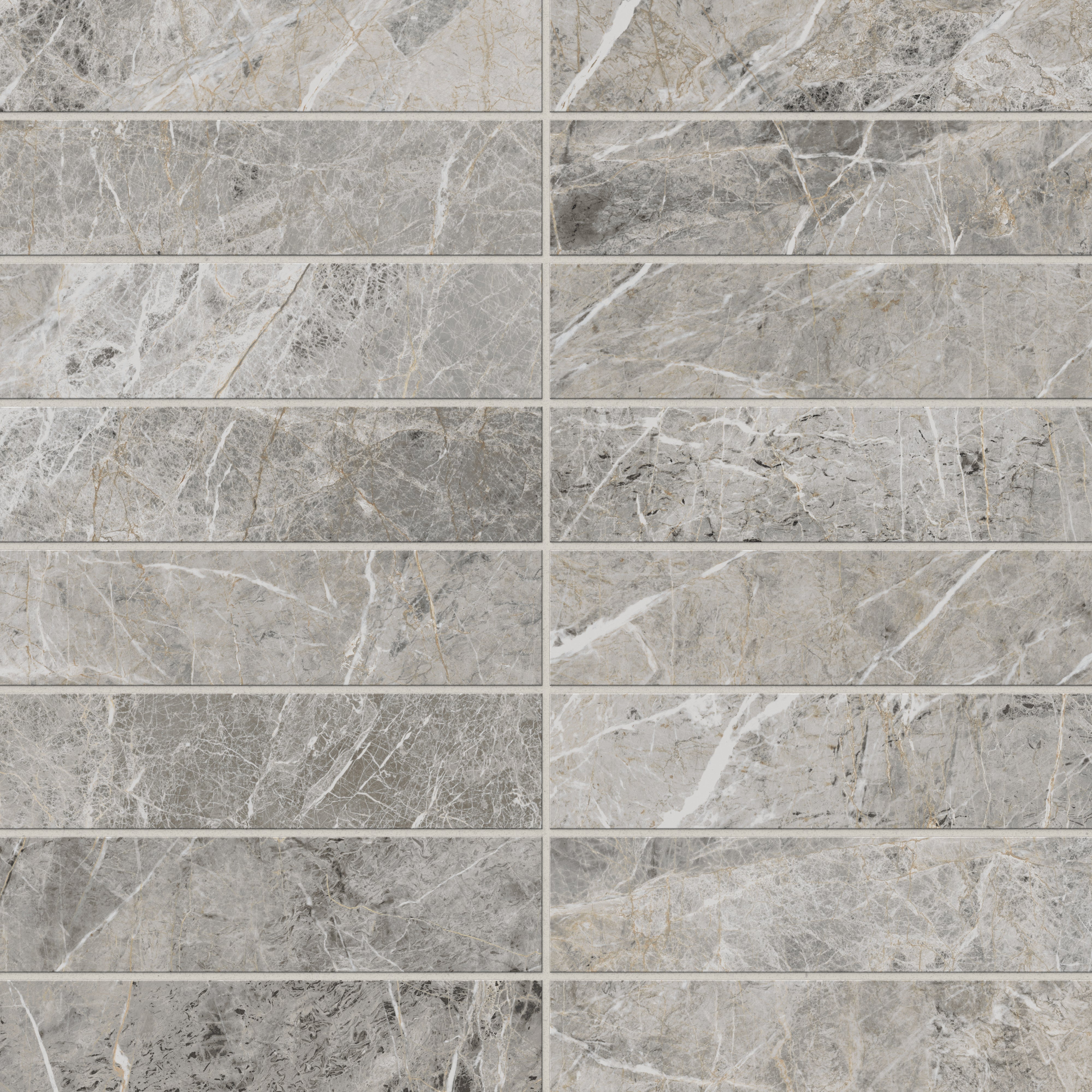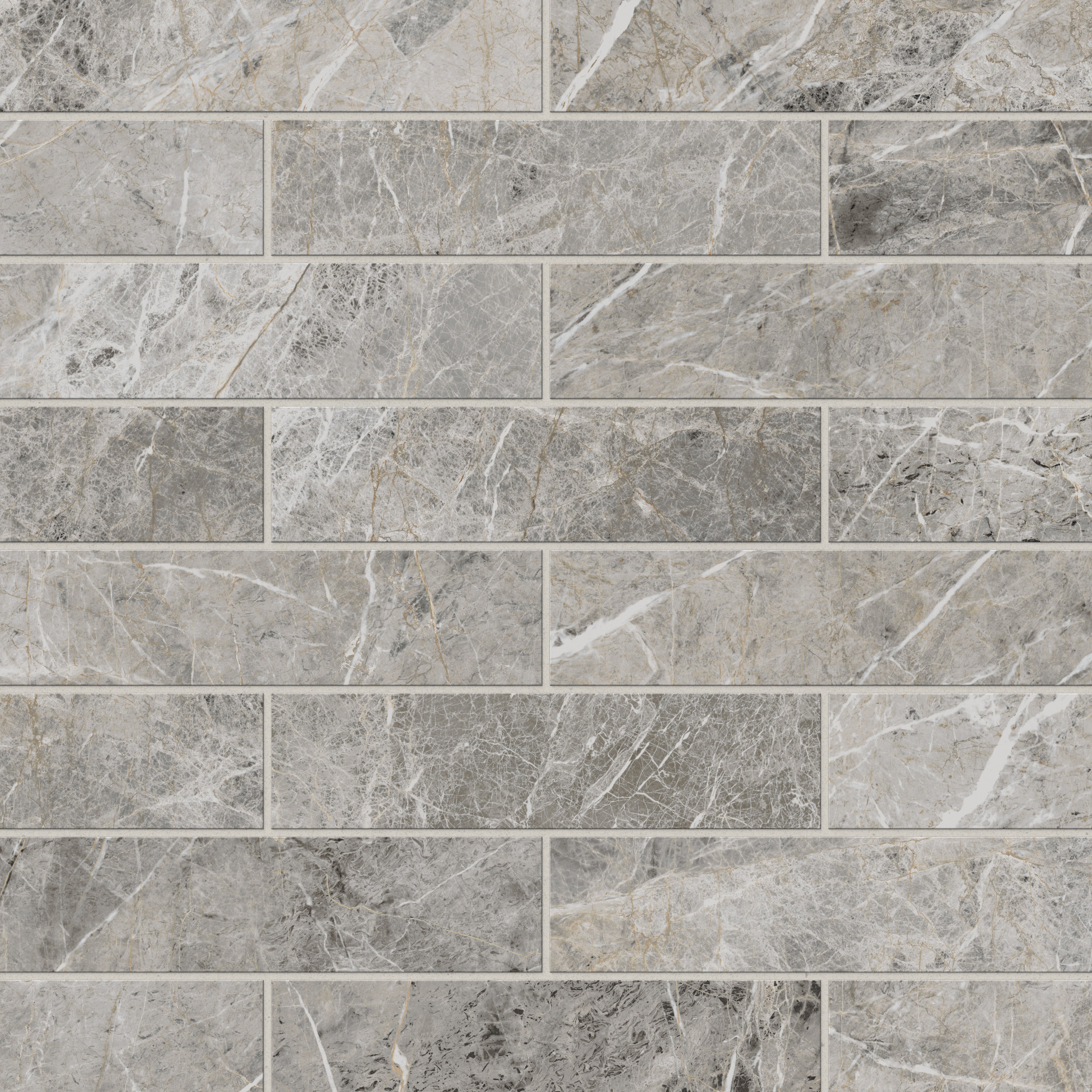 Embracing the natural marble aesthetic, our Chantel 3x12 Matte Porcelain Tile in Imperial reinterprets this timeless, exquisite material through a modern subway format. Each elongated piece carries striking veining across its rich mid-gray surface, softened by a rustic finish that creates an expansive yet sophisticated space.