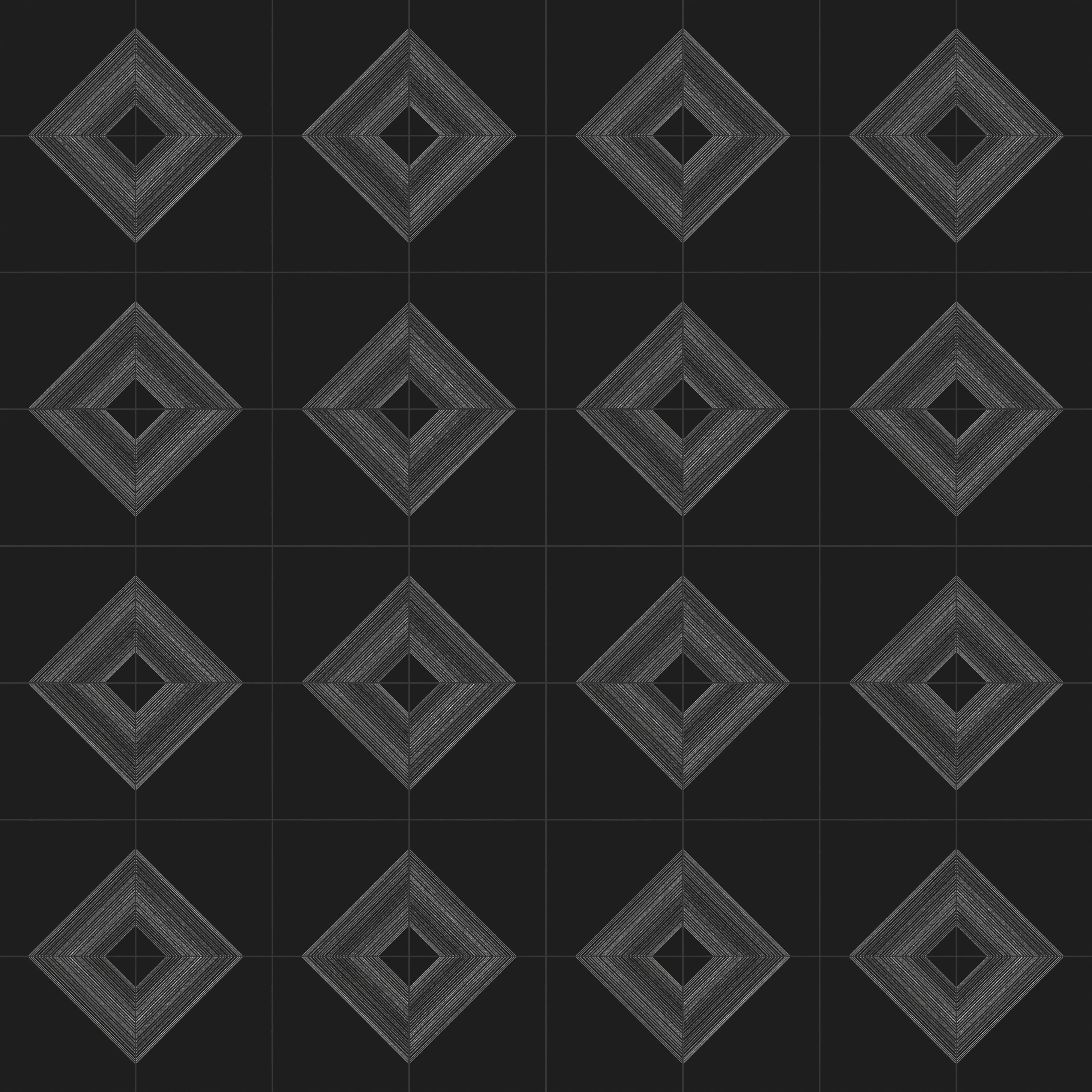 Our Estelle 12x12 Satin Ceramic Tile in Deco 3 Black Silver dazzles with a patterned design across its black surface, featuring a diagonal band of silver lines that runs from one side. These transform into hollowed diamond forms when laid side by side, elevated by a velvety finish that contrasts beautifully against the subtle shimmer of its metallic accents.