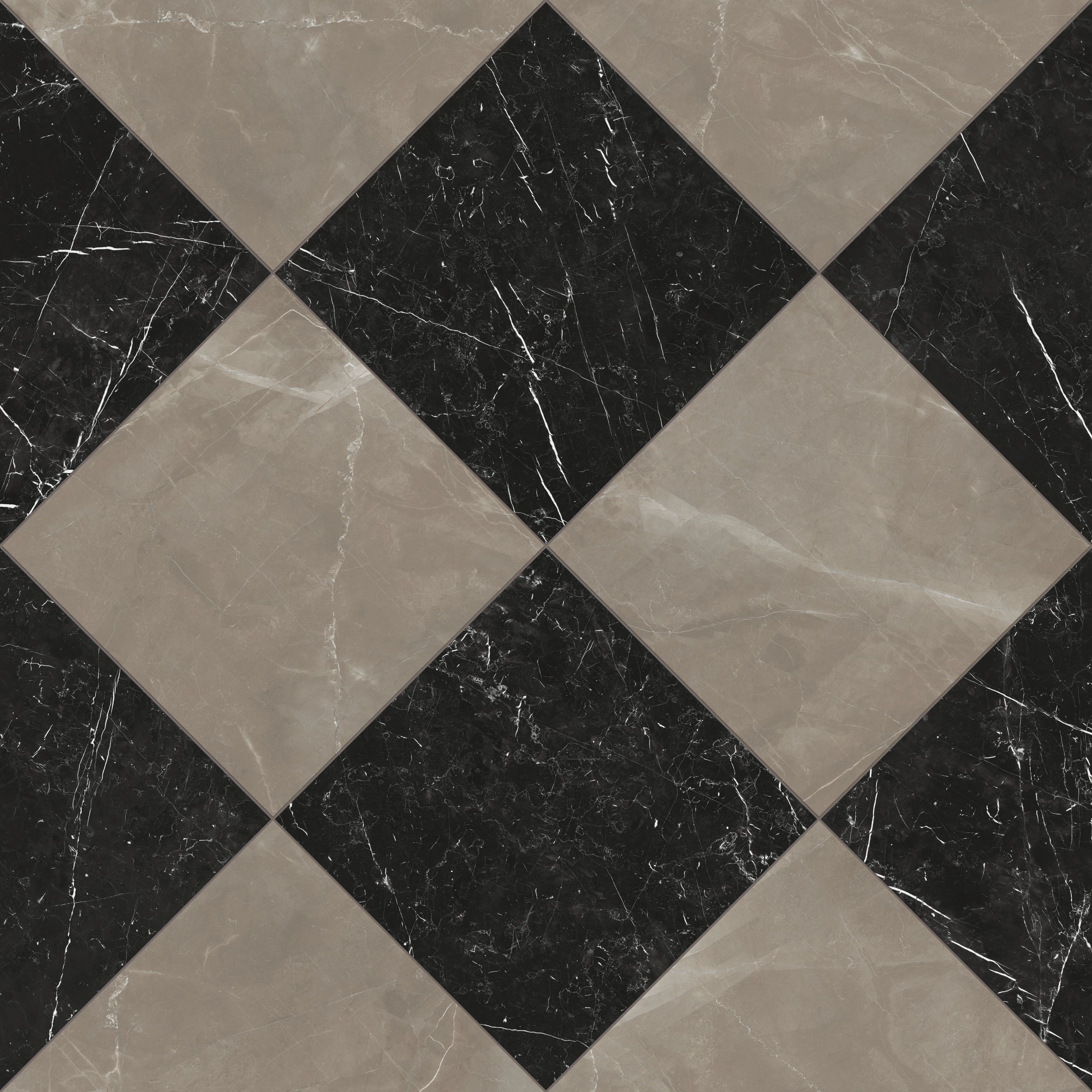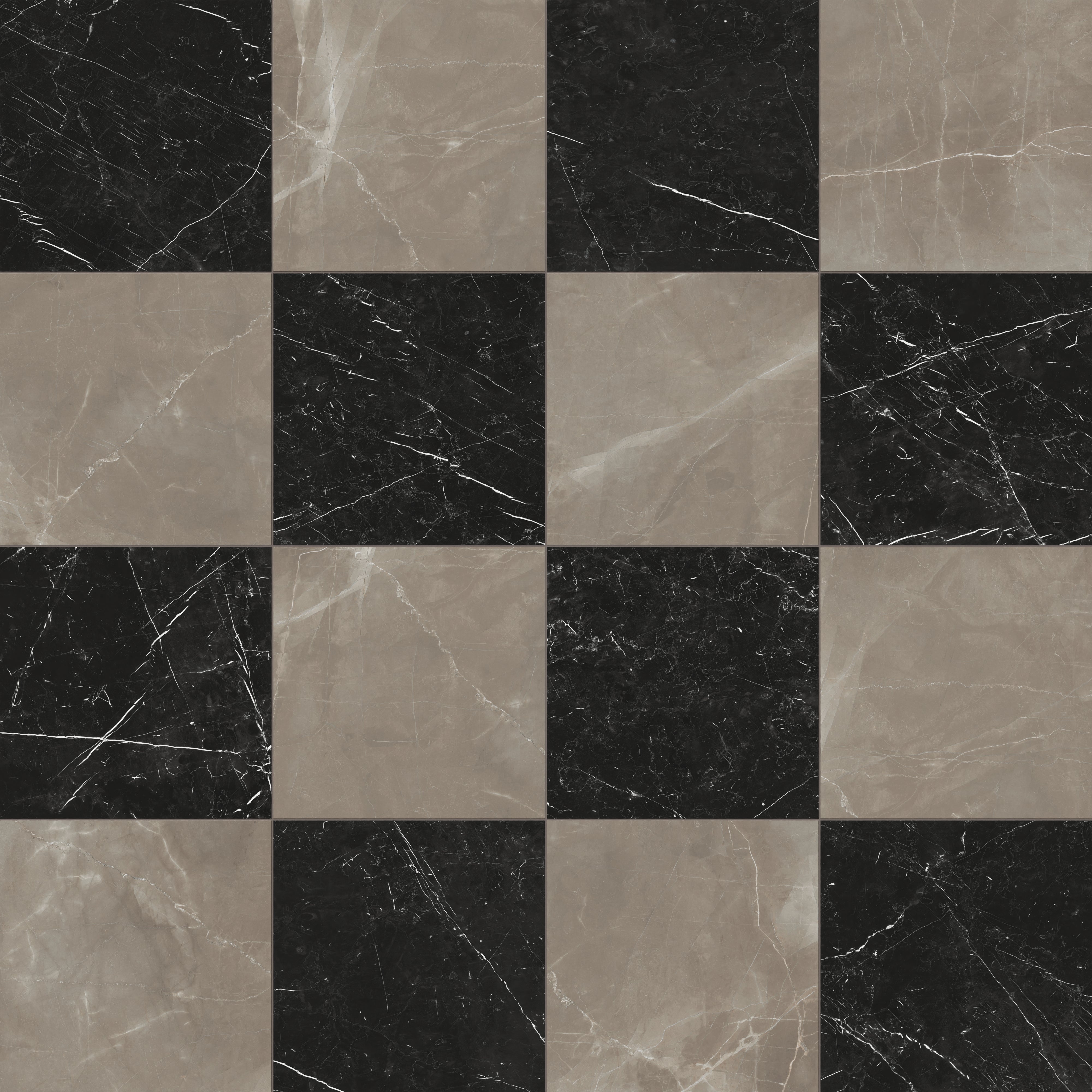 Leona 24x24 Checkerboard Matte Porcelain Tile in Amani Bronze and Nero Marquina