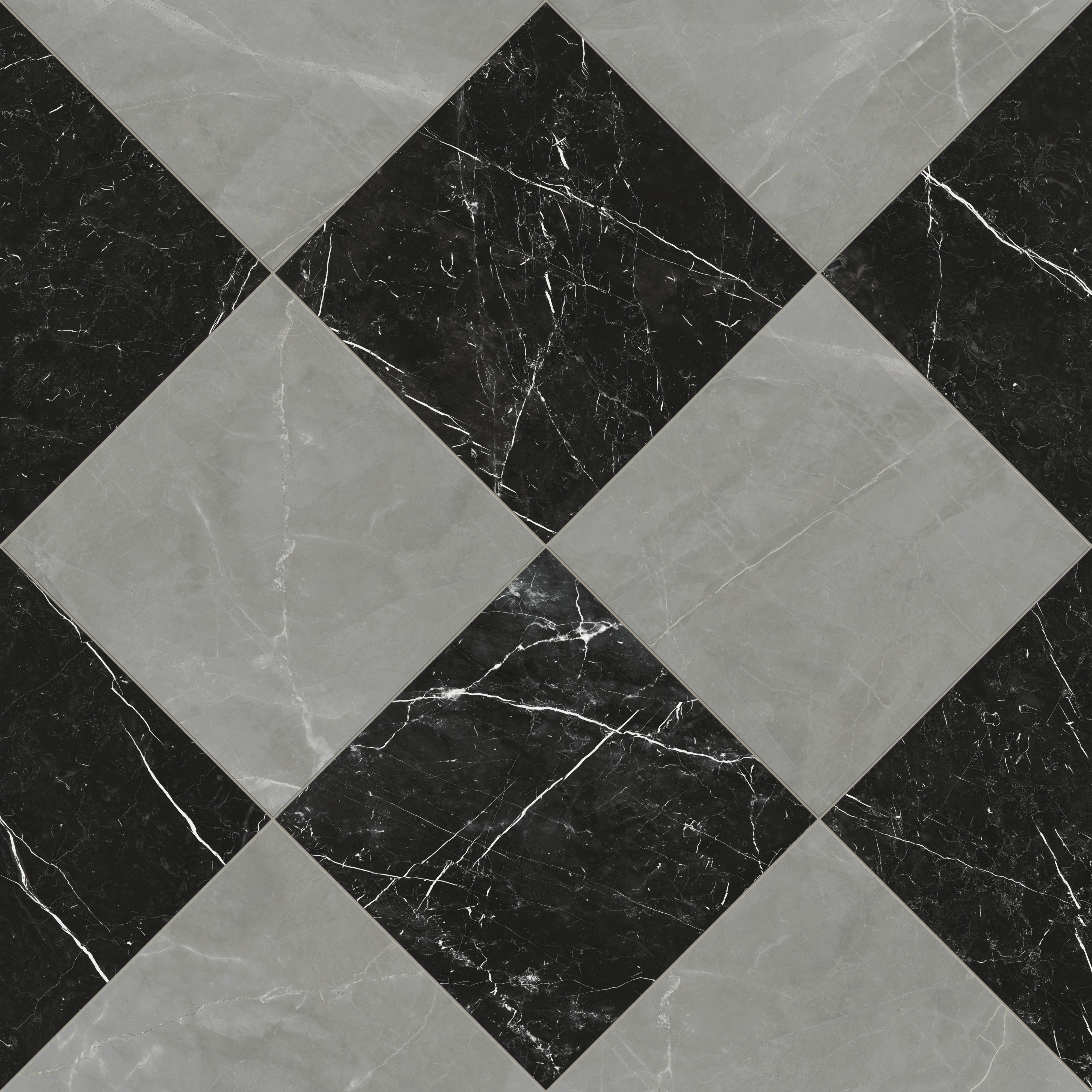 - Marble-inspired porcelain pairs for a low-maintenance checkerboard look