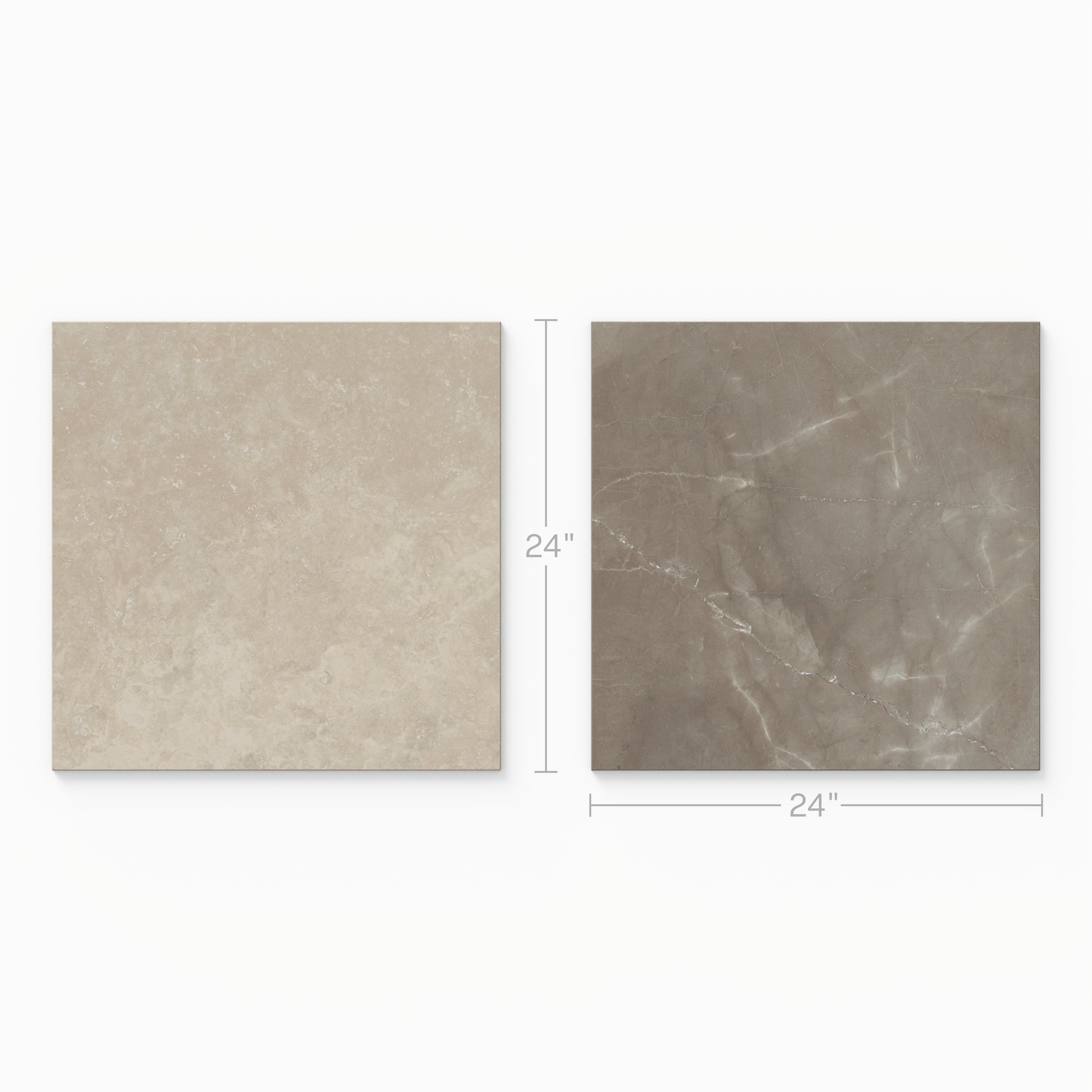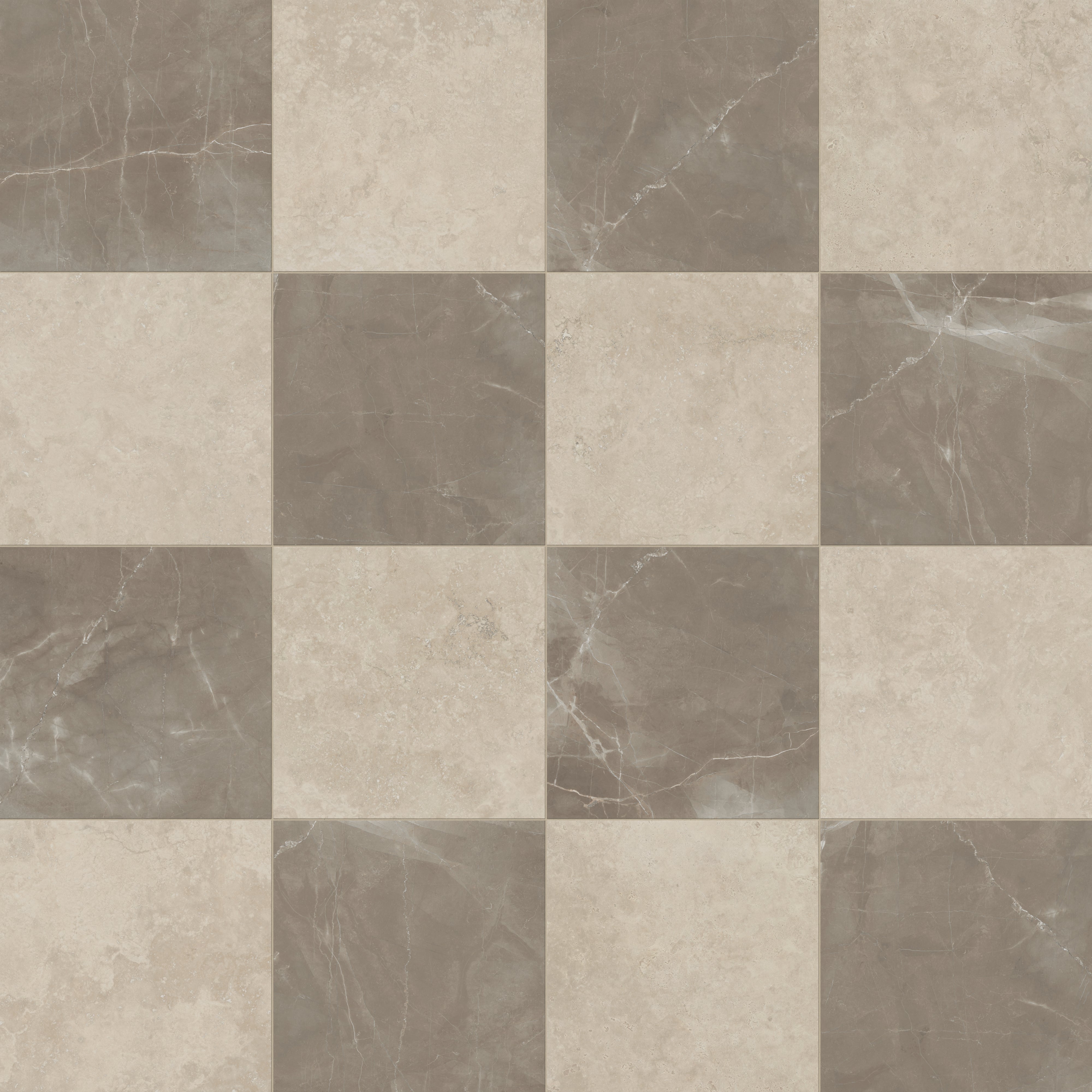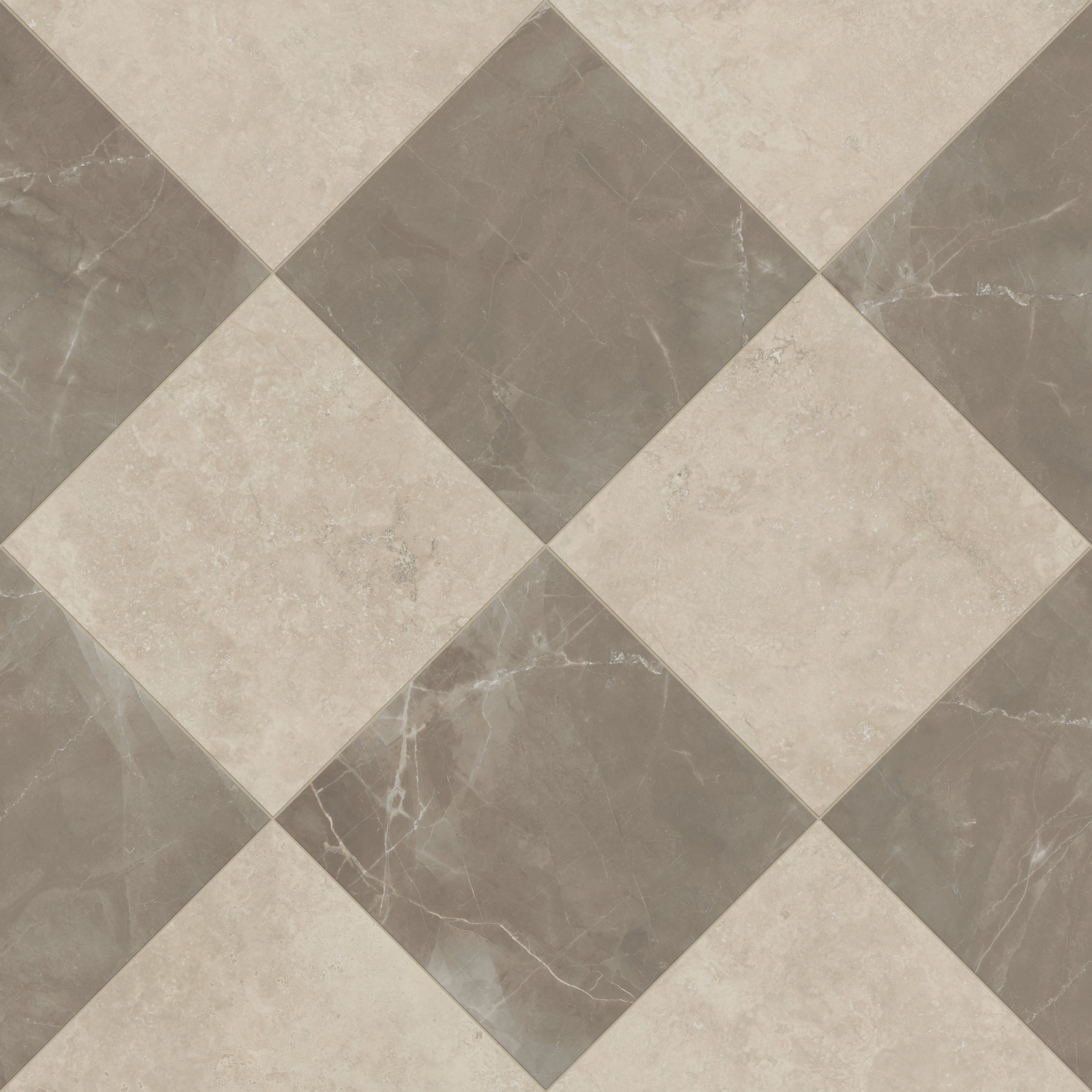 Classic elegance redefined—this is the essence of our Leona 24x24 Checkerboard Matte Porcelain Tile in Marfil and Amani Bronze. Designed for those seeking a refined take on the timeless checkered pattern, these large format square tiles strike the perfect balance between the life-like shade variations of beige Crema Marfil and the rich, earthy tones of Amani Bronze. Its matte finish also lends a subtle texture that enhances the natural marble aesthetic, adding a modern edge to this vintage-inspired style while remaining practical for everyday use.
