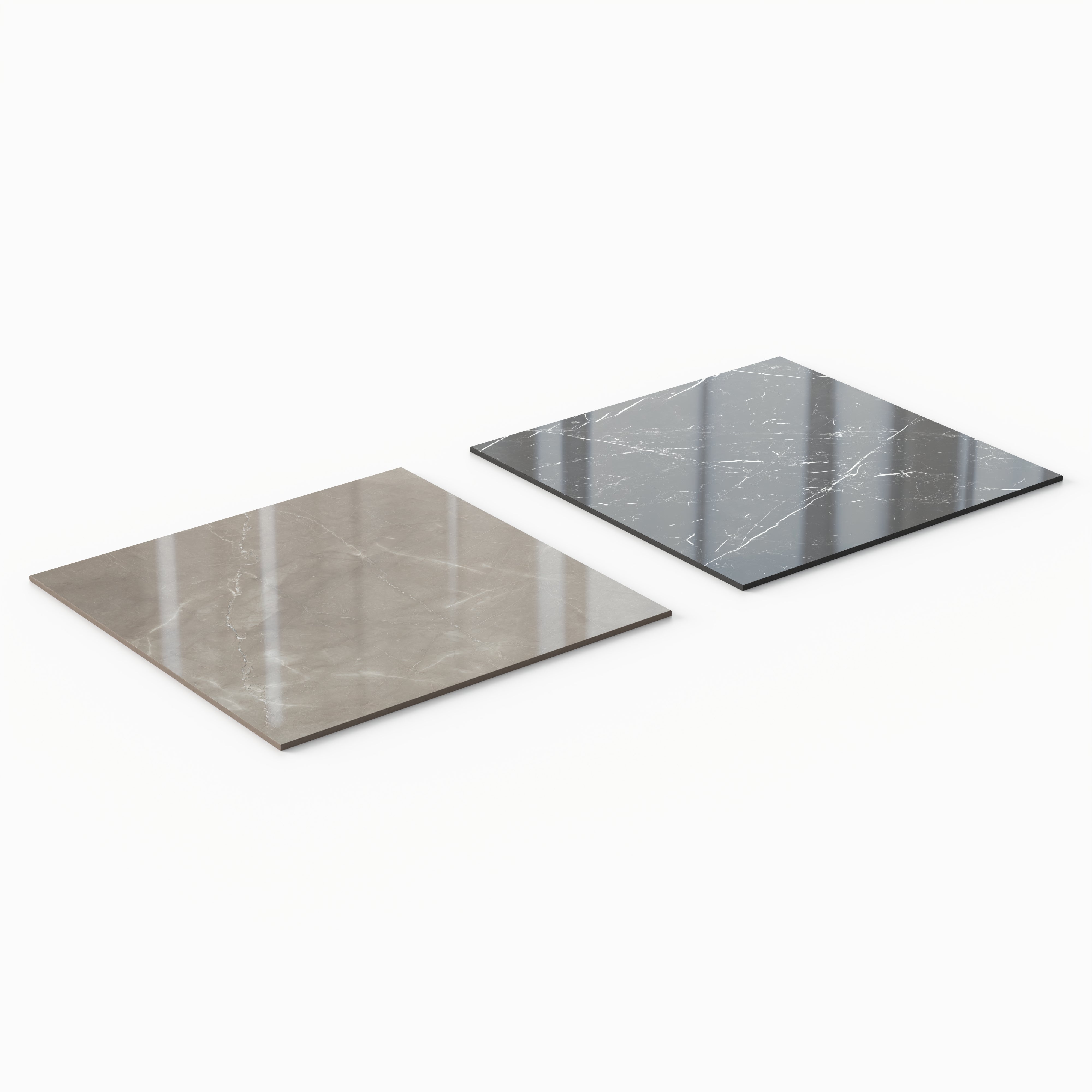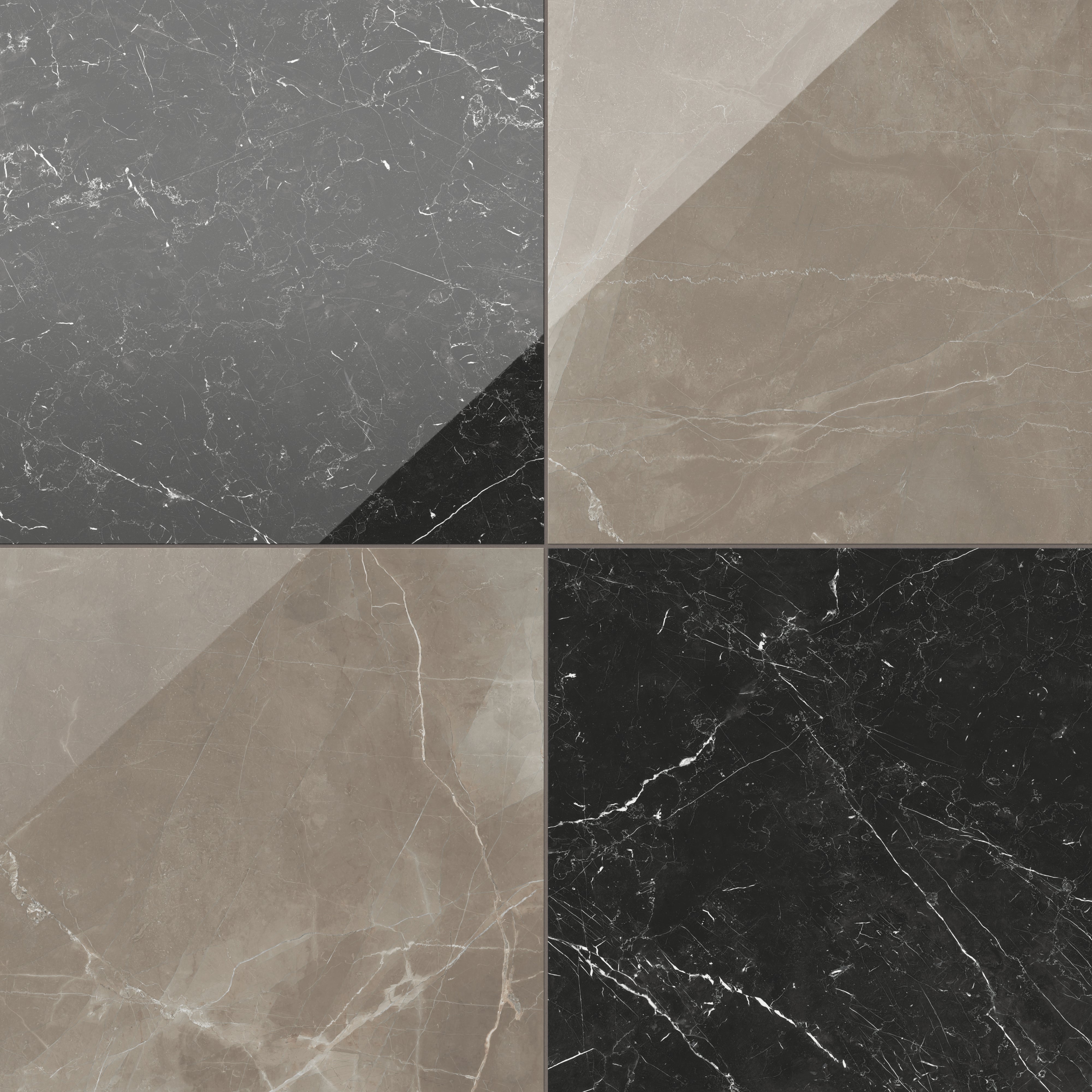 - Marble-inspired porcelain pairs for a low-maintenance checkerboard look