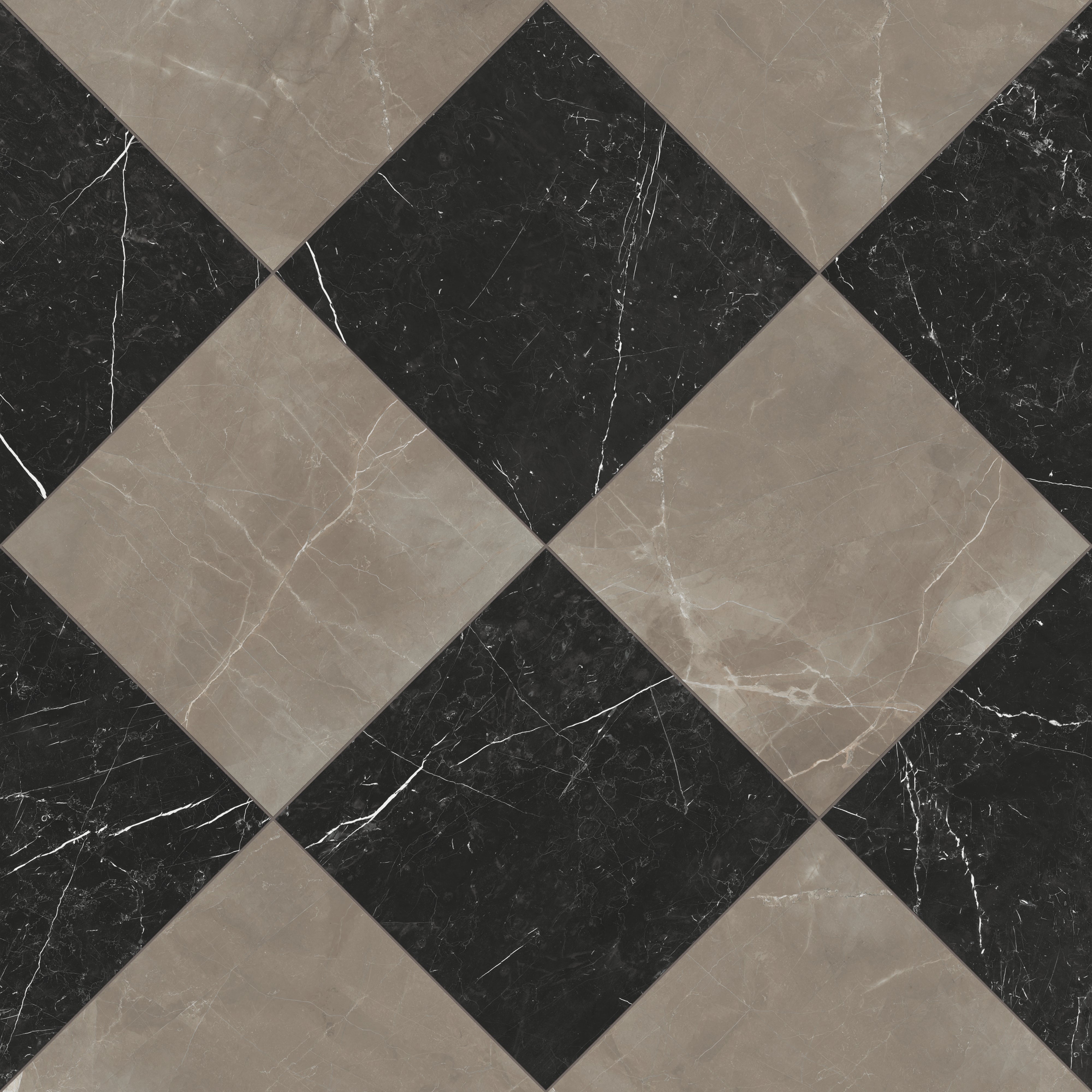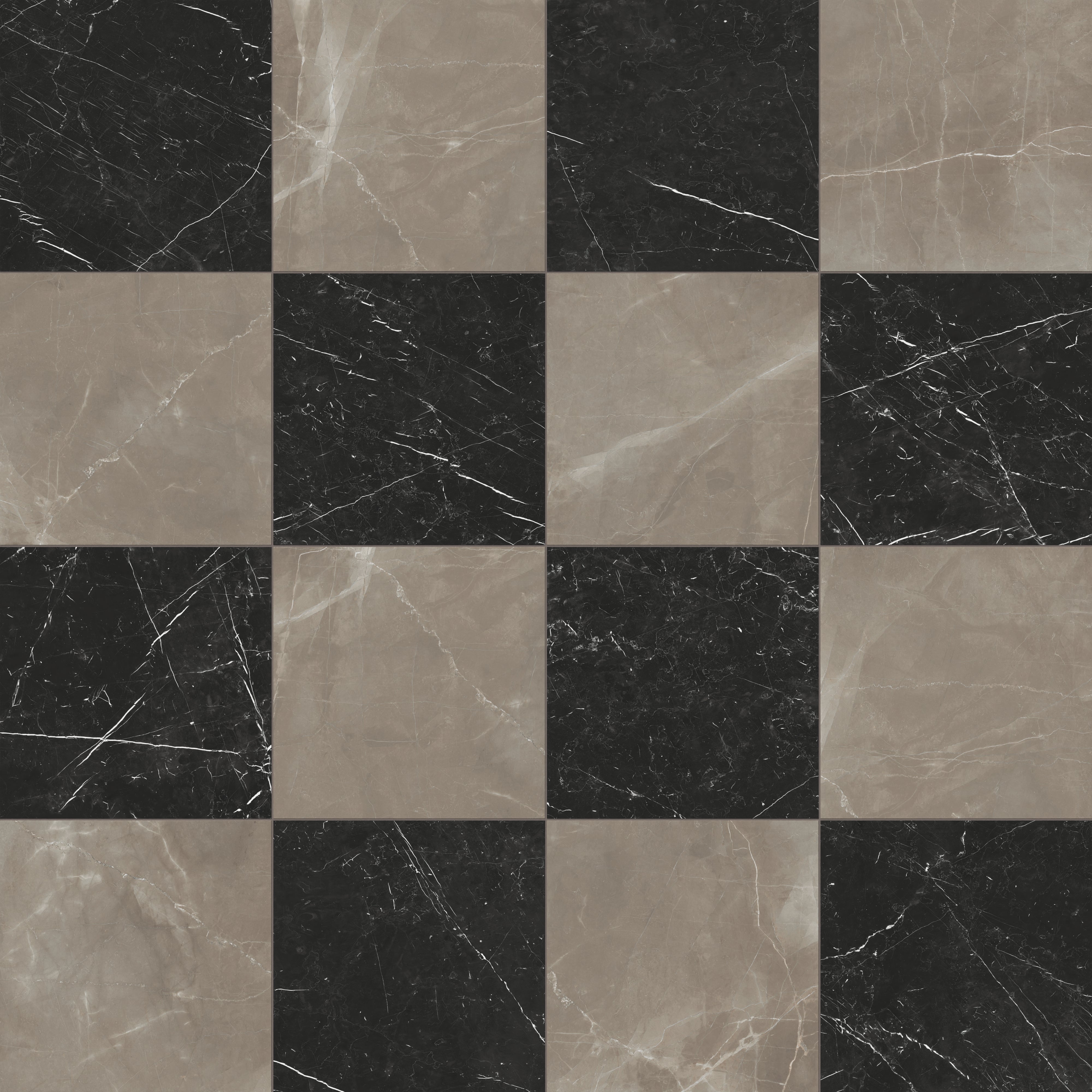 Leona 24x24 Checkerboard Polished Porcelain Tile in Amani Bronze and Nero Marquina