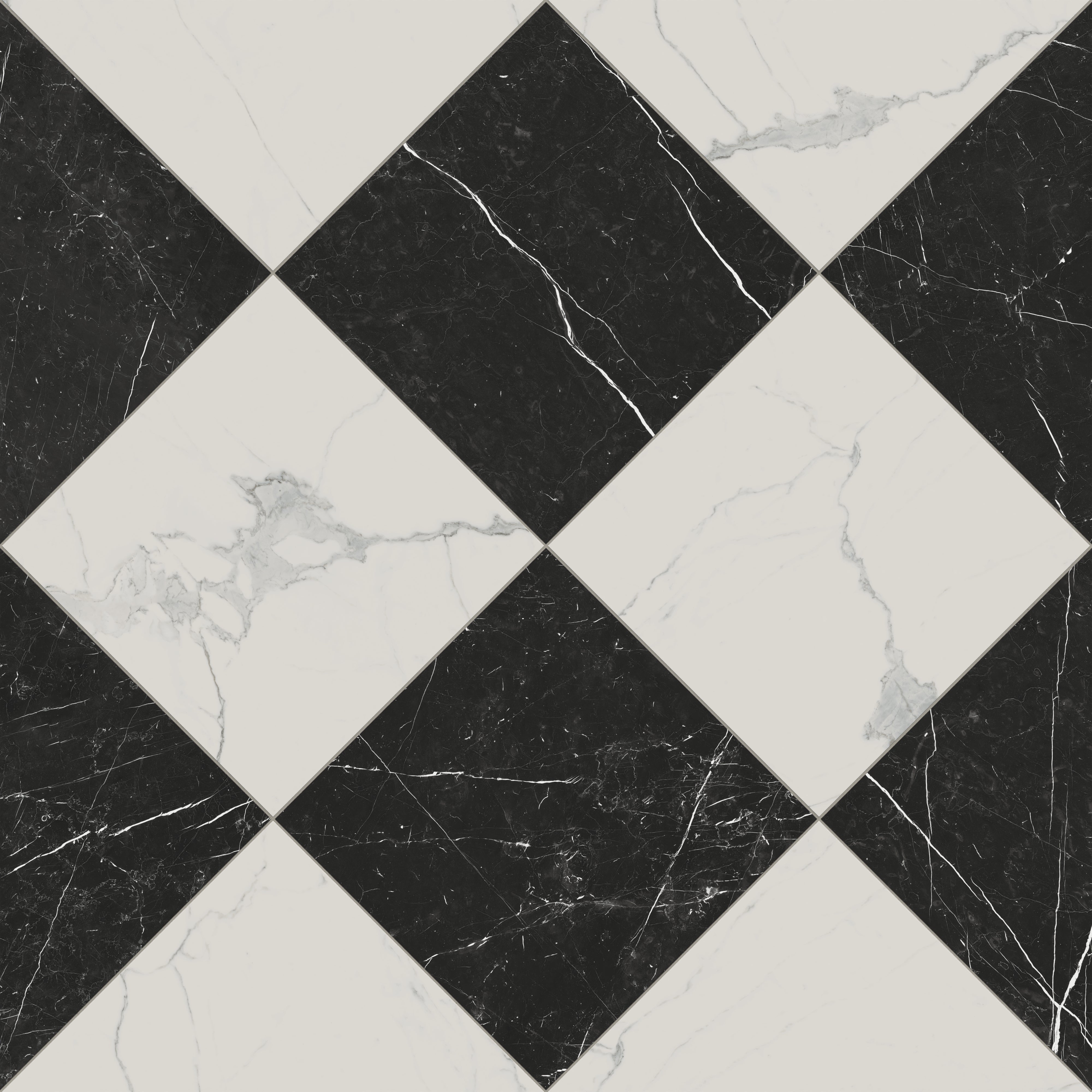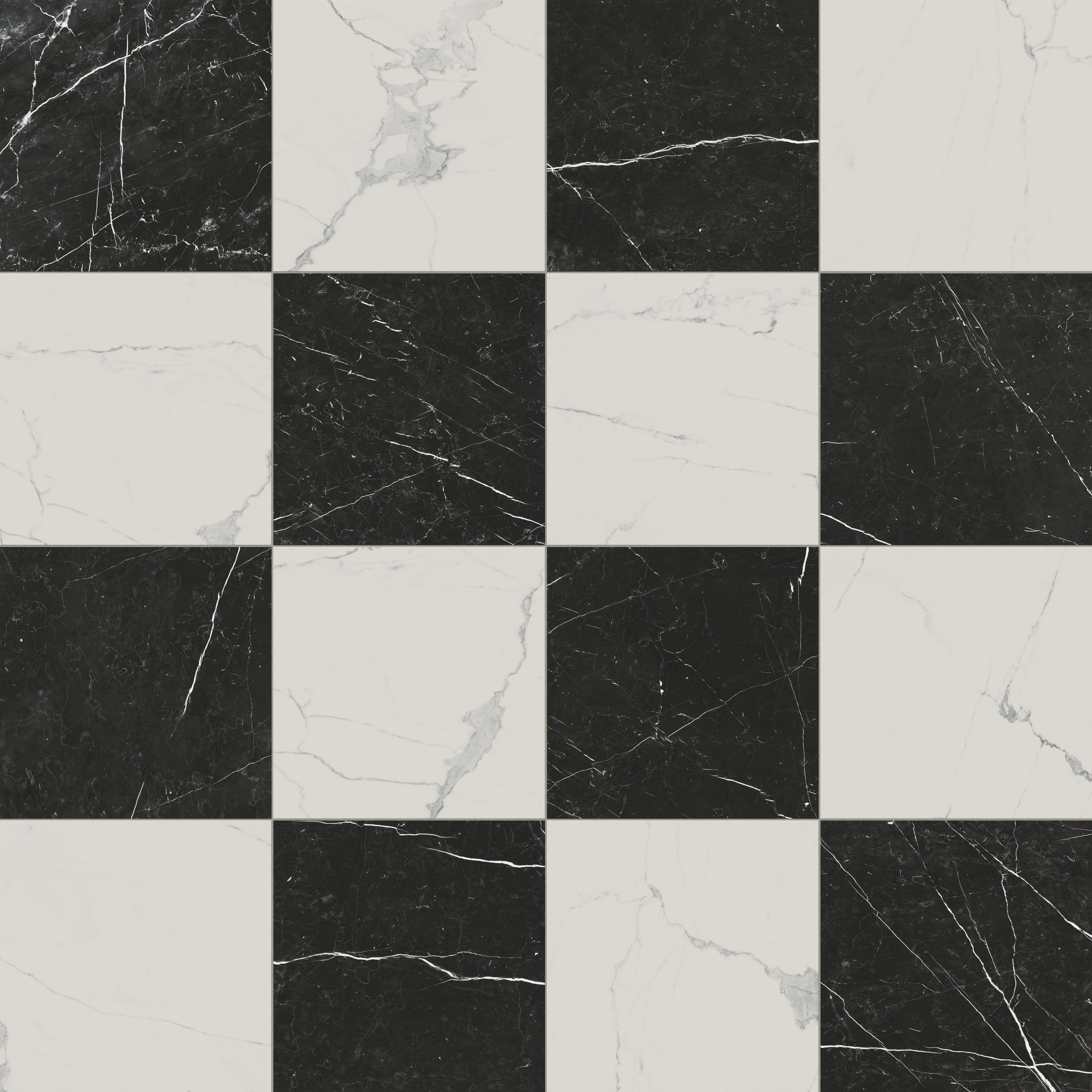 Leona 24x24 Checkerboard Polished Porcelain Tile in Calacatta and Nero Marquina