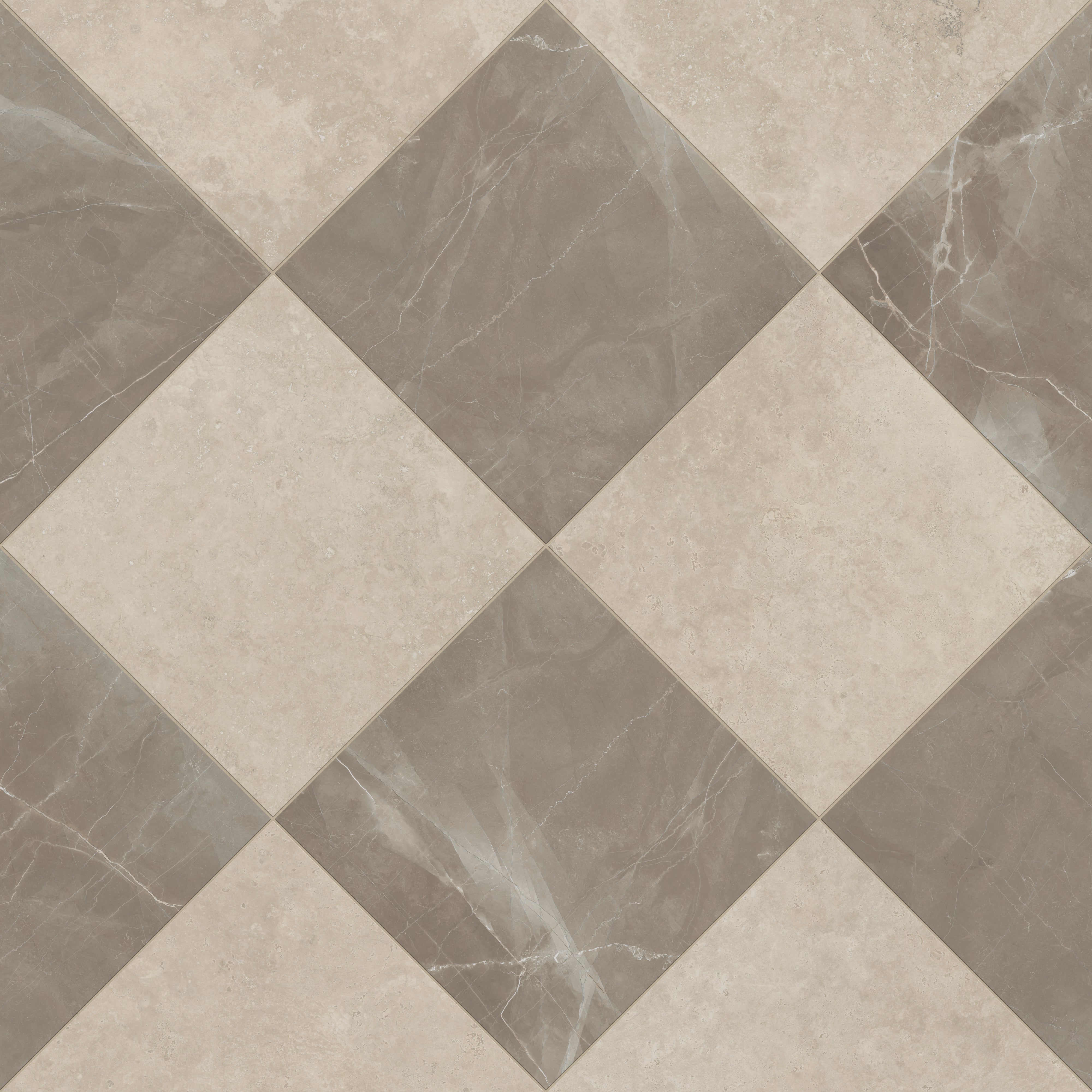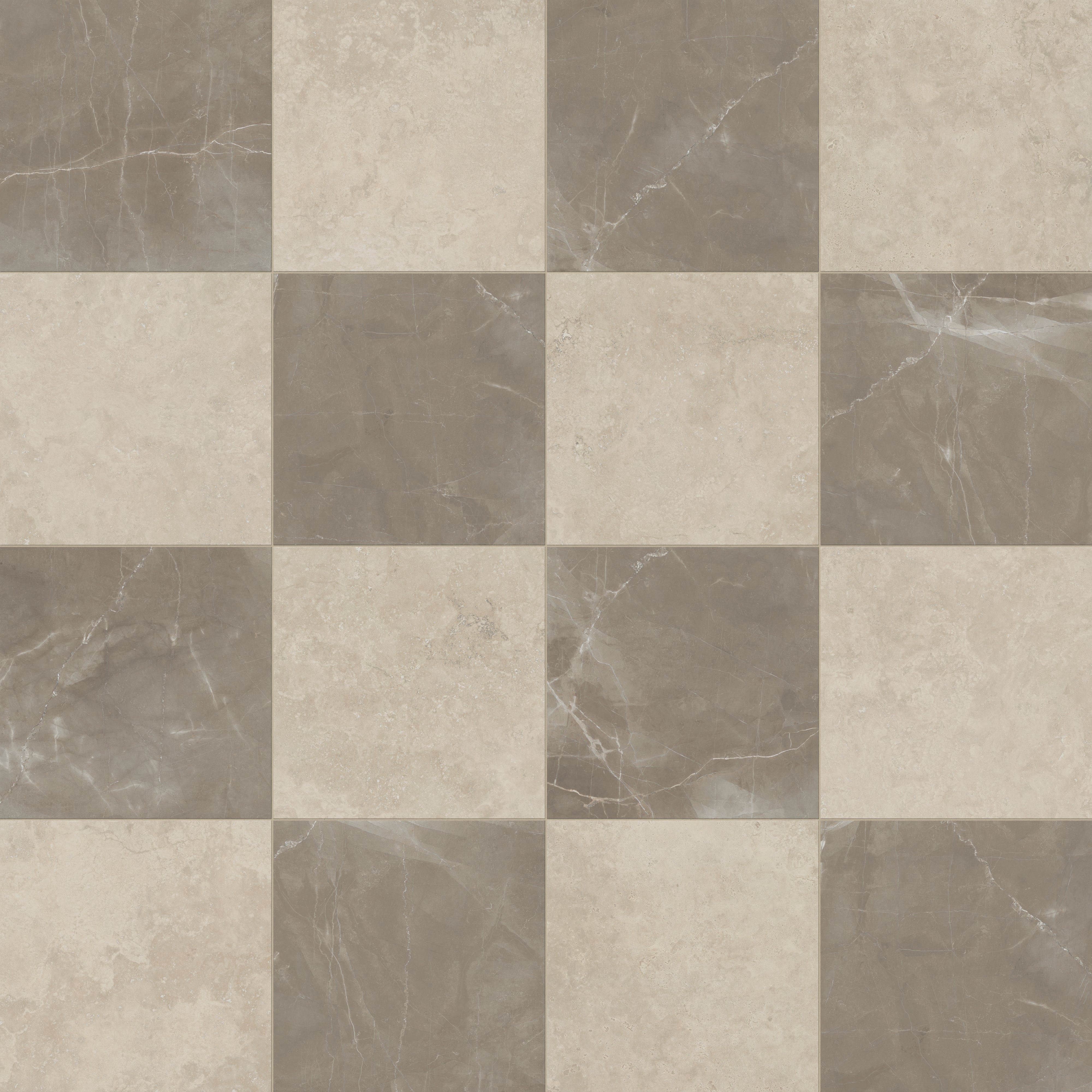 Leona 24x24 Checkerboard Polished Porcelain Tile in Marfil and Amani Bronze