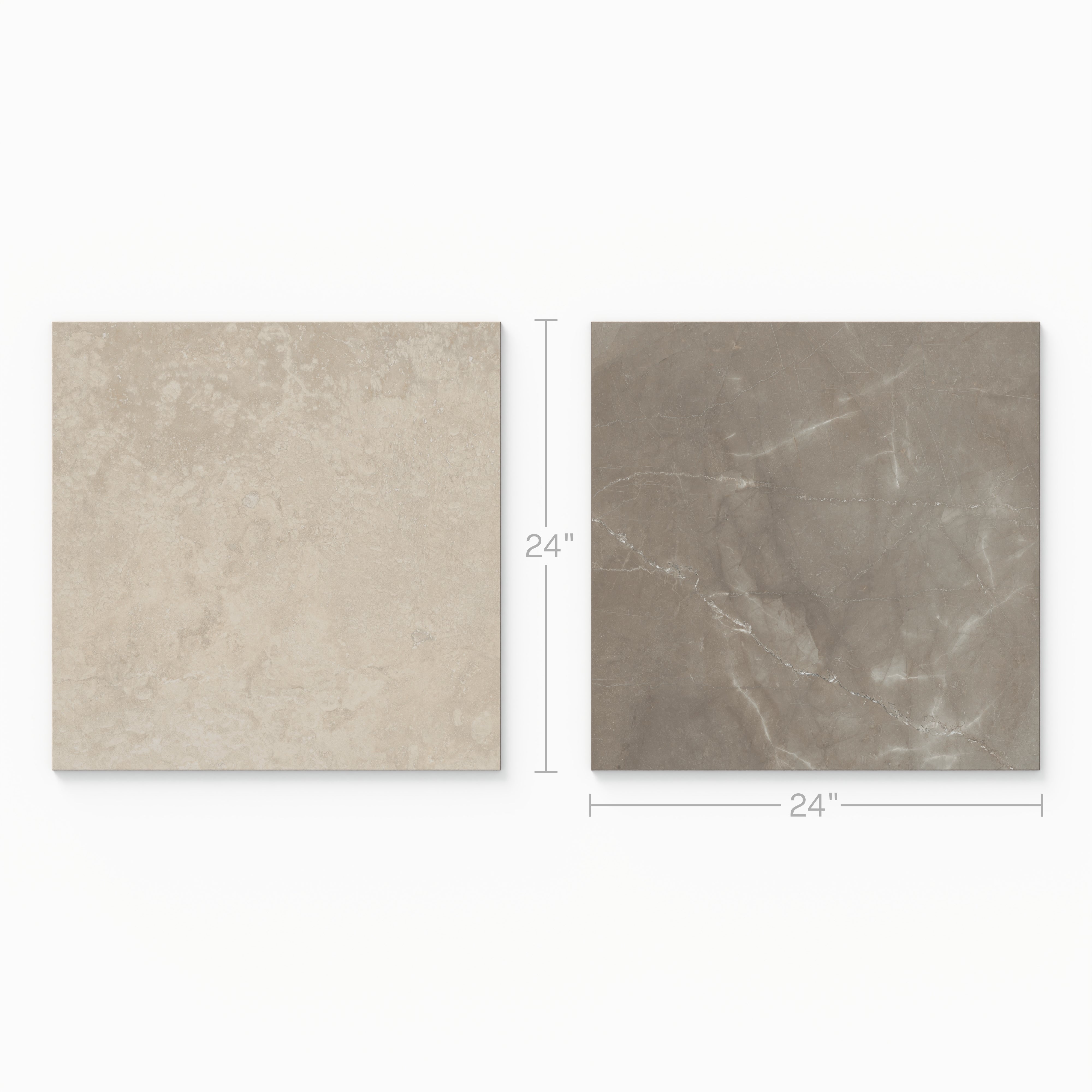 Classic elegance redefined—this is the essence of our Leona 24x24 Checkerboard Polished Porcelain Tile in Marfil and Amani Bronze. Designed for those seeking a refined take on the timeless checkered pattern, these large format square tiles strike the perfect balance between the life-like shade variations of beige Crema Marfil and the rich, earthy tones of Amani Bronze. Its polished finish also lends a sophisticated shine that further highlights the natural marble aesthetic, adding a sleek touch to this vintage-inspired style for a brighter, more open feel.