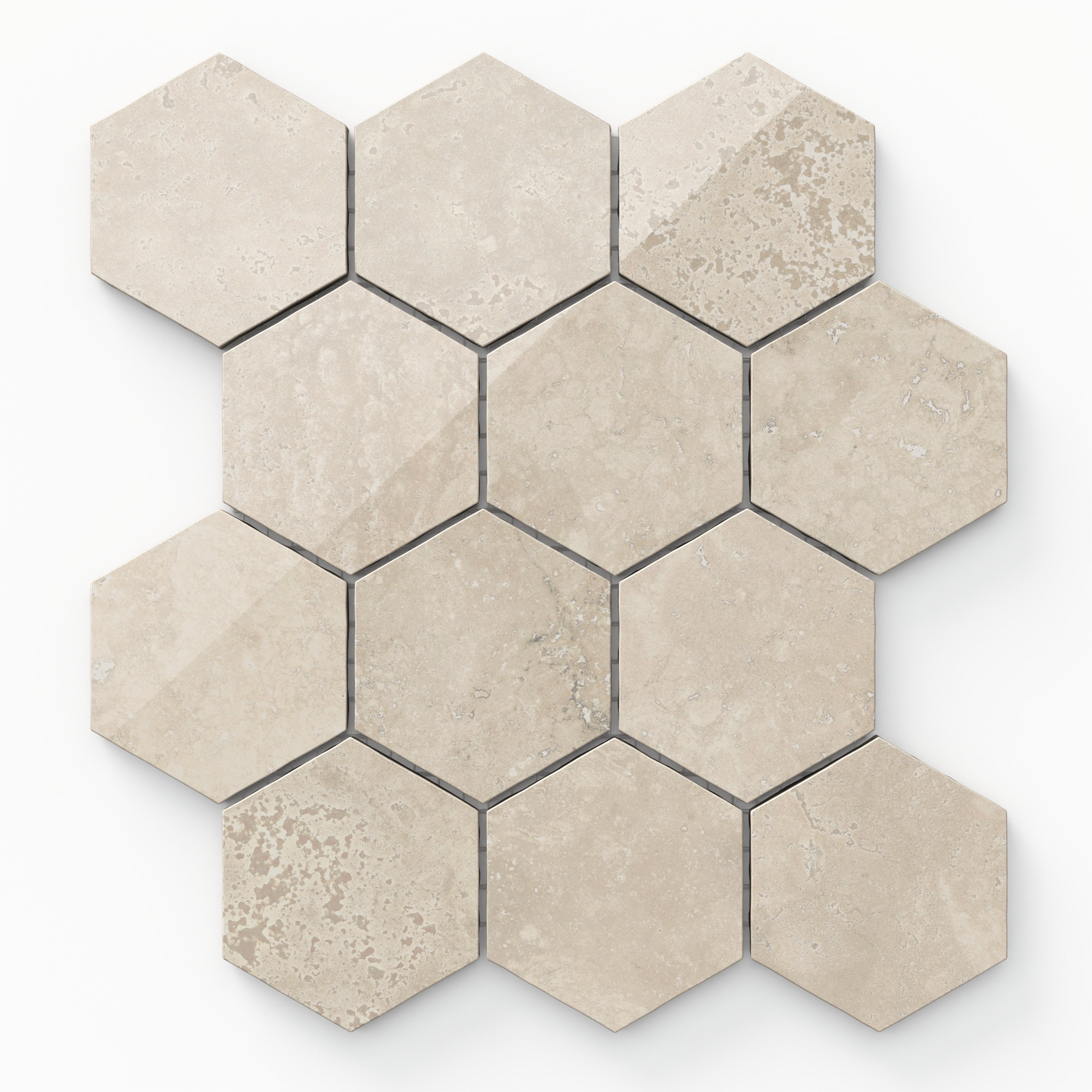 Leona 3x3 Polished Porcelain Hexagon Mosaic Tile in Marfil