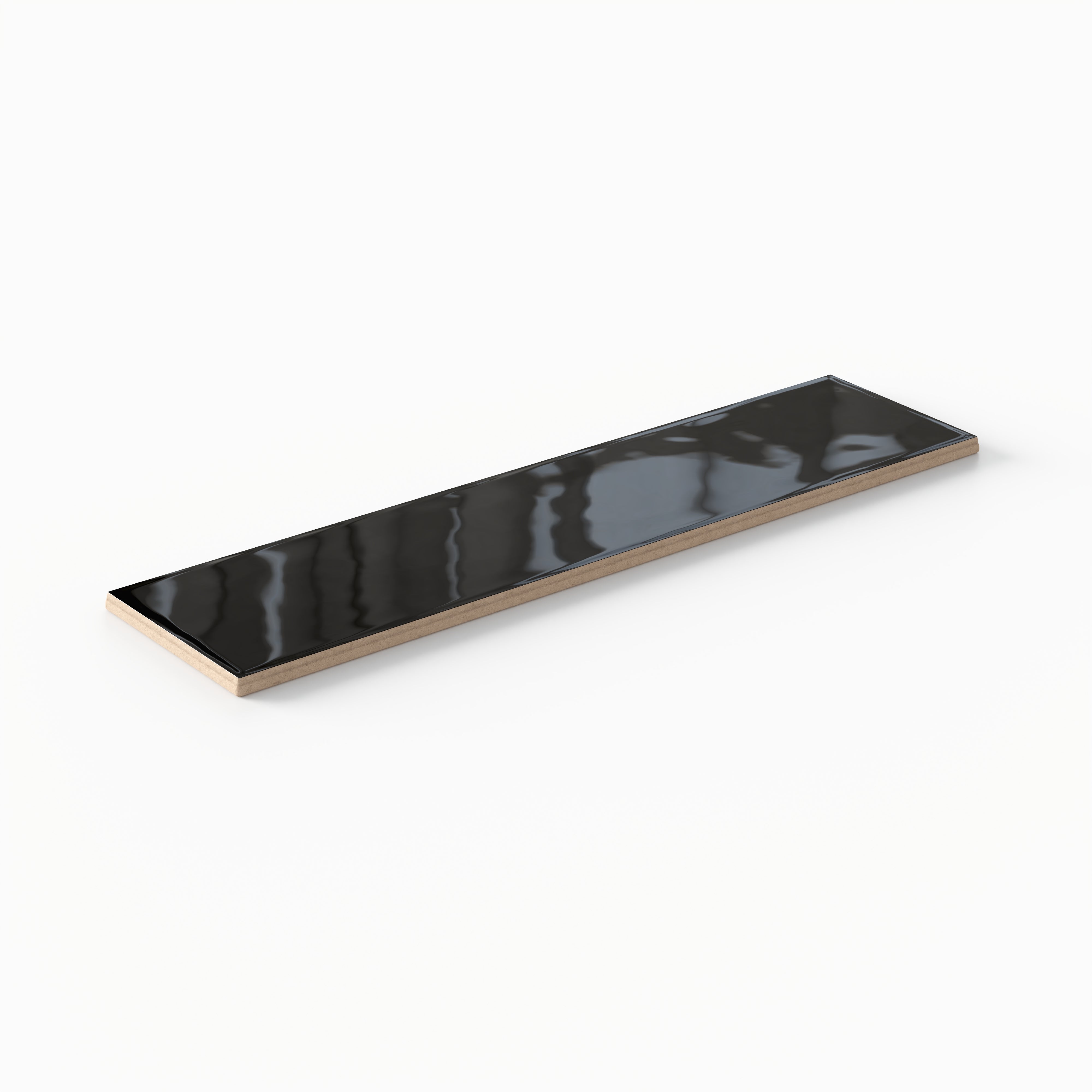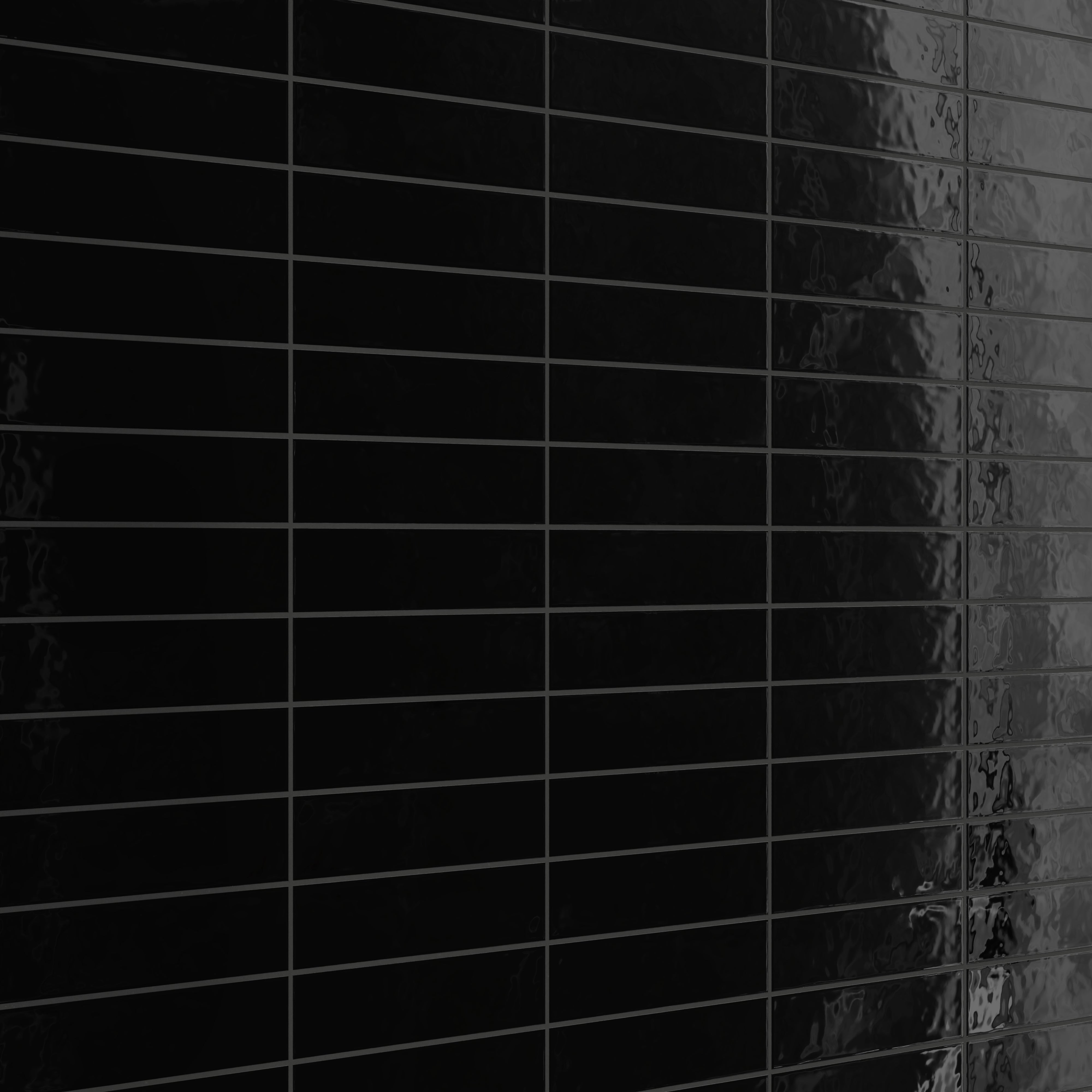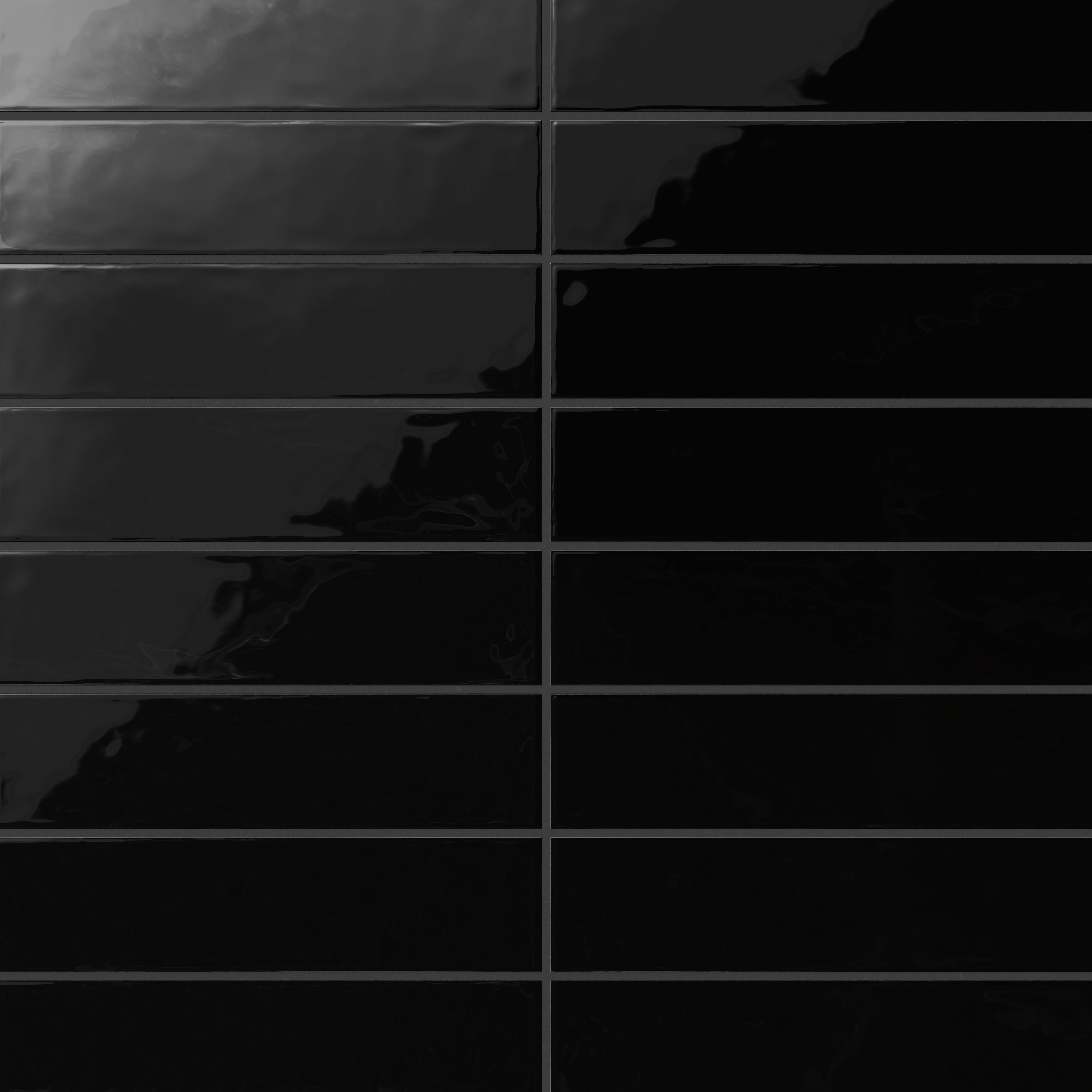 Our Madilyn 3x12 Glossy Ceramic Tile in Midnight is a modern take on the classic subway tile with its elongated silhouette that visually expands any interior. Its light-reflective glaze accentuates a refined handmade look, defined by slightly cushioned edges and gentle ripples across its uniform deep black surface.