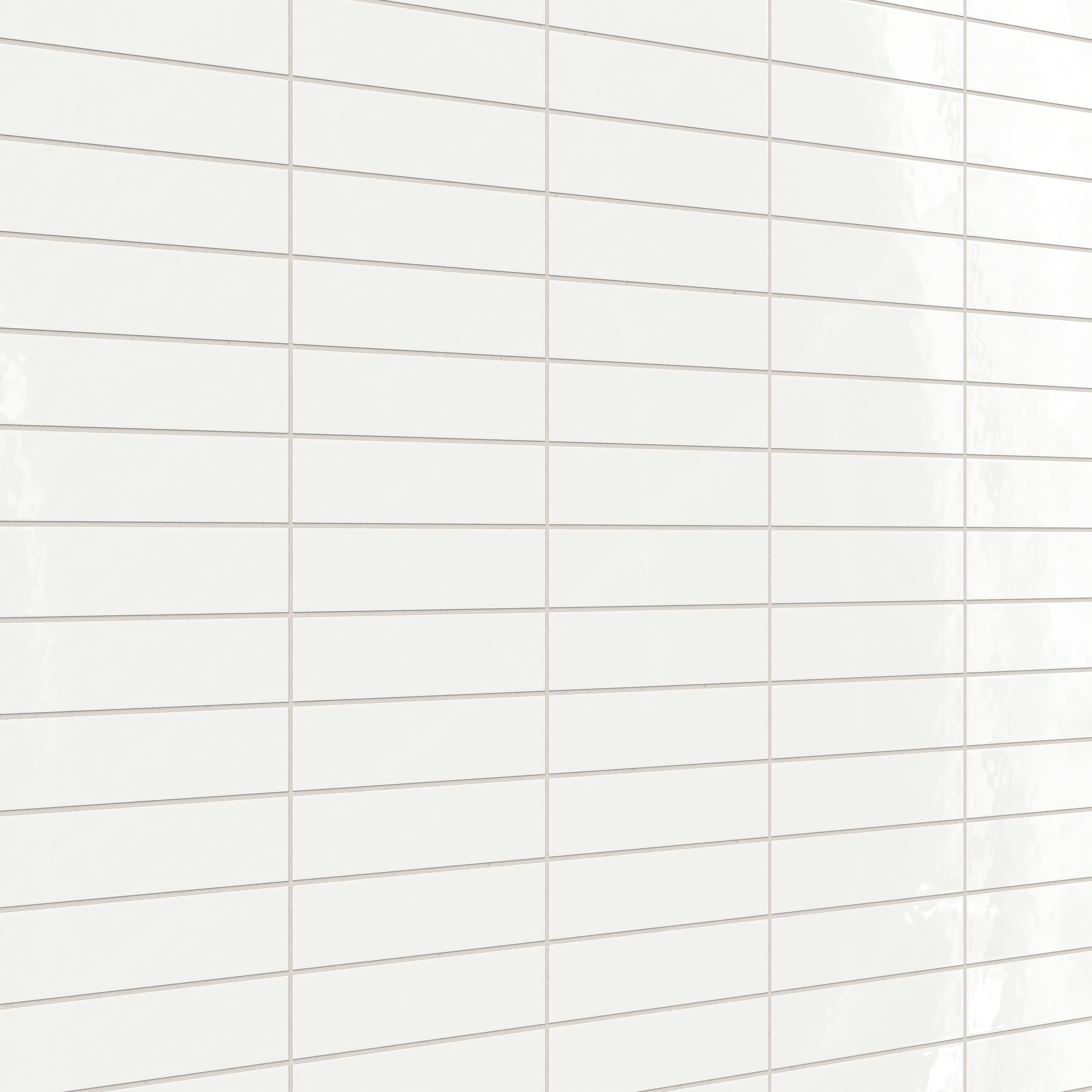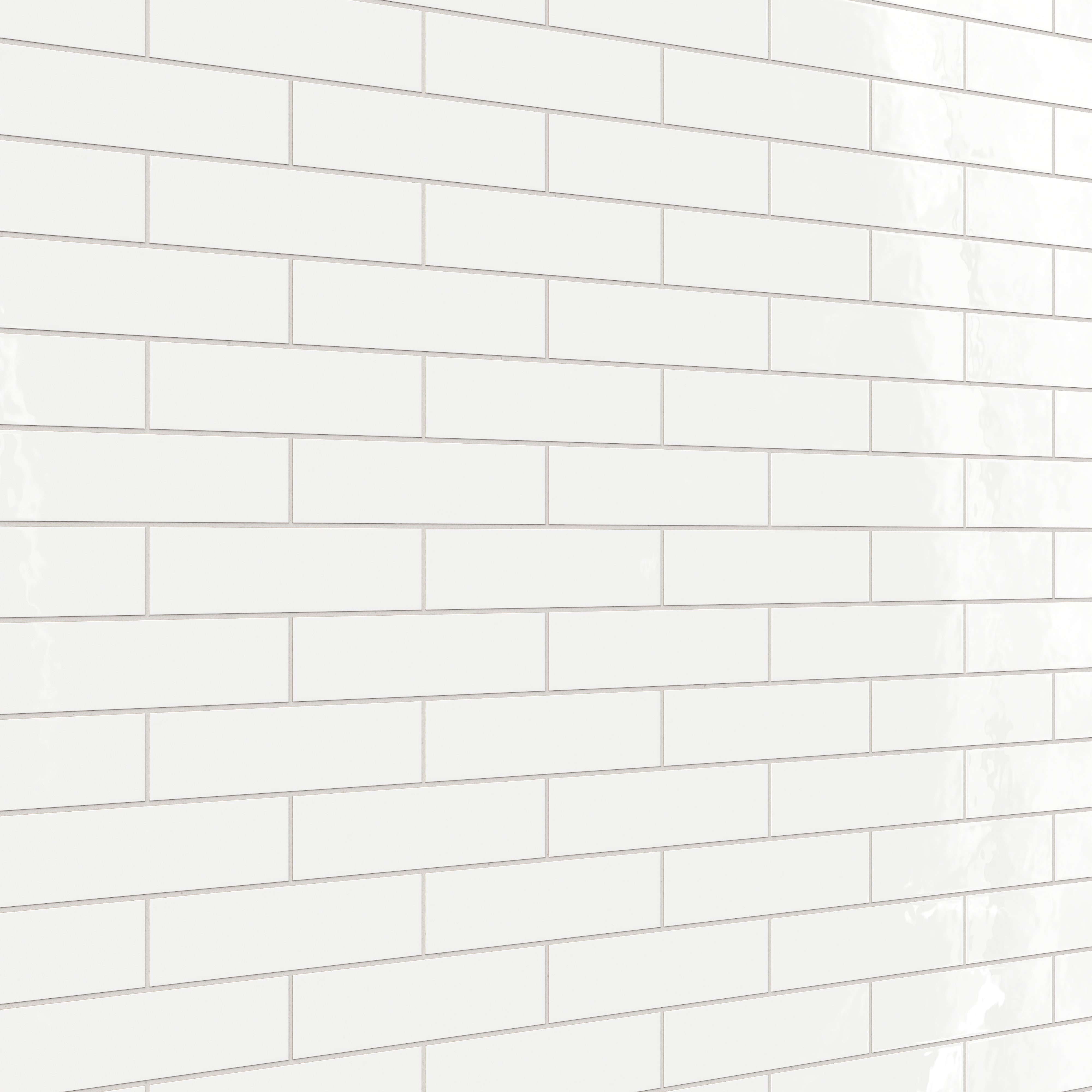 Our Madilyn 3x12 Glossy Ceramic Tile in Pearl is a modern take on the classic subway tile with its elongated silhouette that visually expands any interior. Its light-reflective glaze accentuates a refined handmade look, defined by slightly cushioned edges and gentle ripples across its uniform white surface.