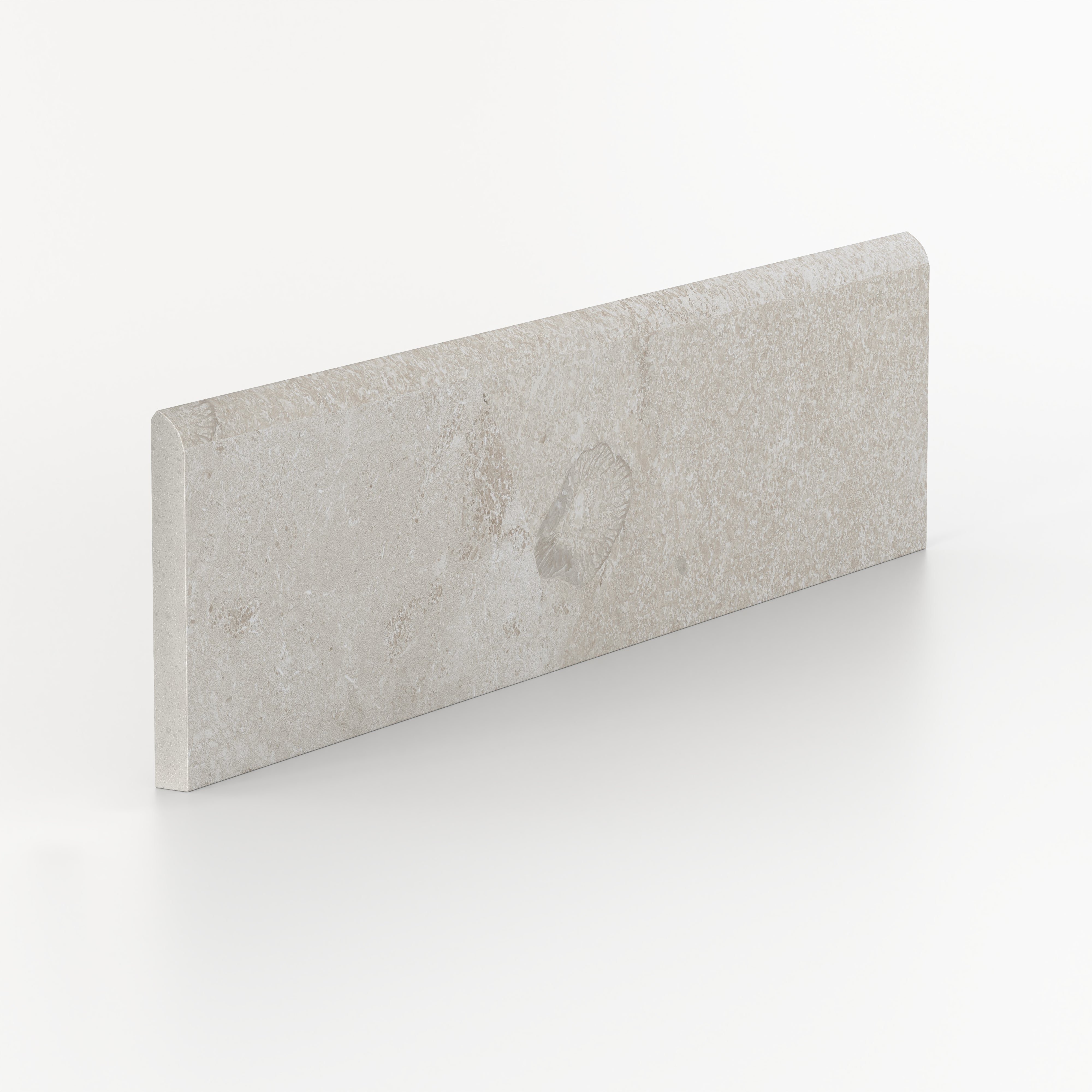 Designed to complement its travertine-inspired field tiles, our Tatum 3x12 Matte Porcelain Bullnose Tile in Cross-Cut Sand showcases the same soft tonal shifts of beige, seamlessly finishing edges, corners, and shower surrounds with its cloudlike pattern visually etched in a smooth, non-reflective surface.