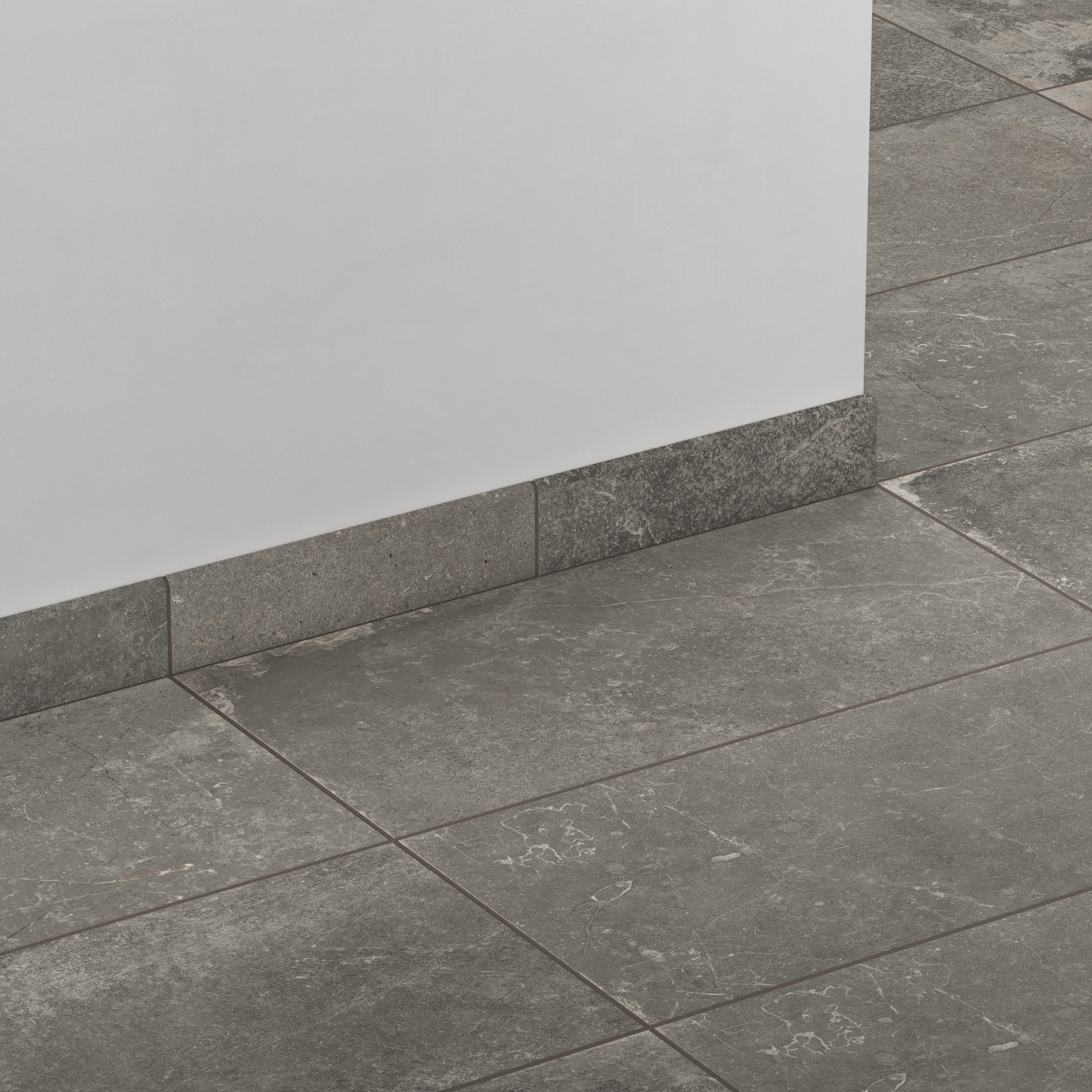 Our Wesley 3x12 Matte Porcelain Bullnose Tile in Smoke carries the same organic–industrial style, featuring a dark gray tone and subtle surface movement that captures the blend of stone and concrete. Designed to finish walls, edges, and corners with a clean, cohesive transition, it ensures seamless flow throughout your space.