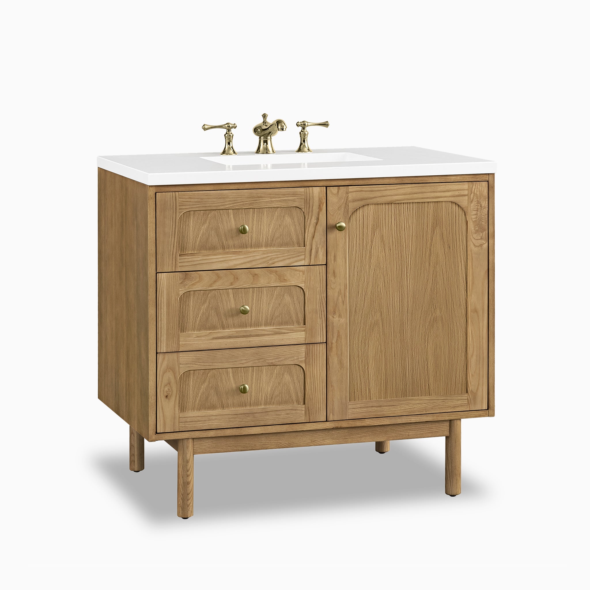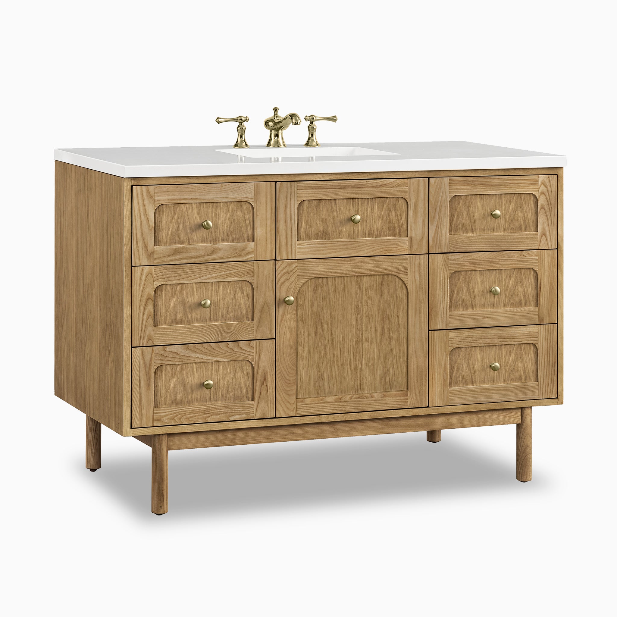 Abigail is designed to bring a sense of ease to the everyday. Whether installed as a freestanding piece with a contemporary wood base or mounted to the wall with a sturdy French cleat, this vanity adapts easily to its space.