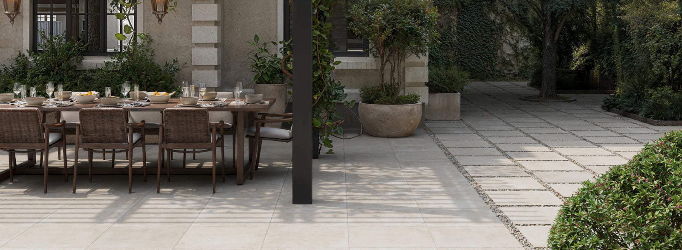 Bowden brings the presence of the world-renowned Dolomites into your own exterior landscapes. Honoring their raw beauty, Bowden reflects their fine-grained texture and natural geological contrasts through dynamic speckles in sunwashed off-white.