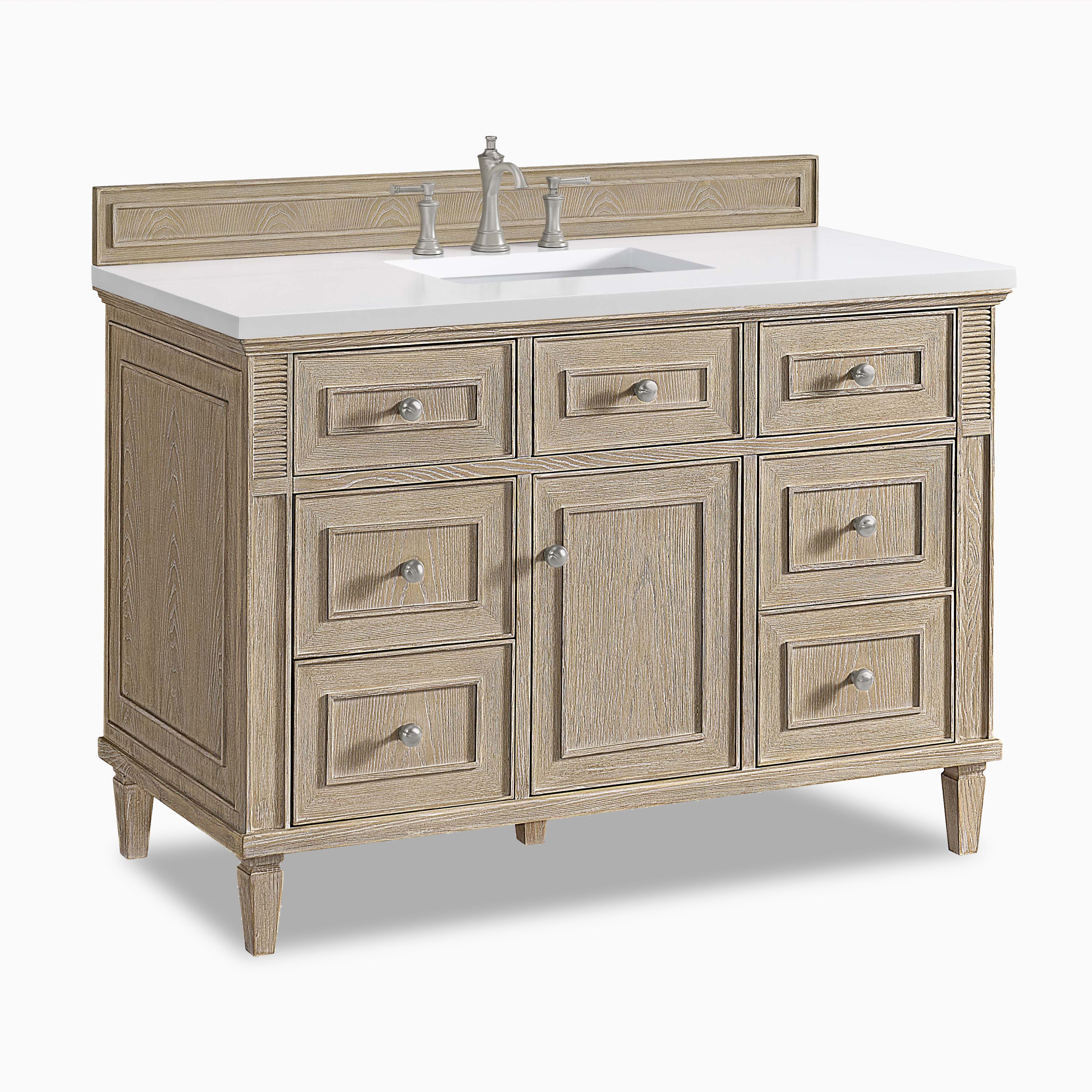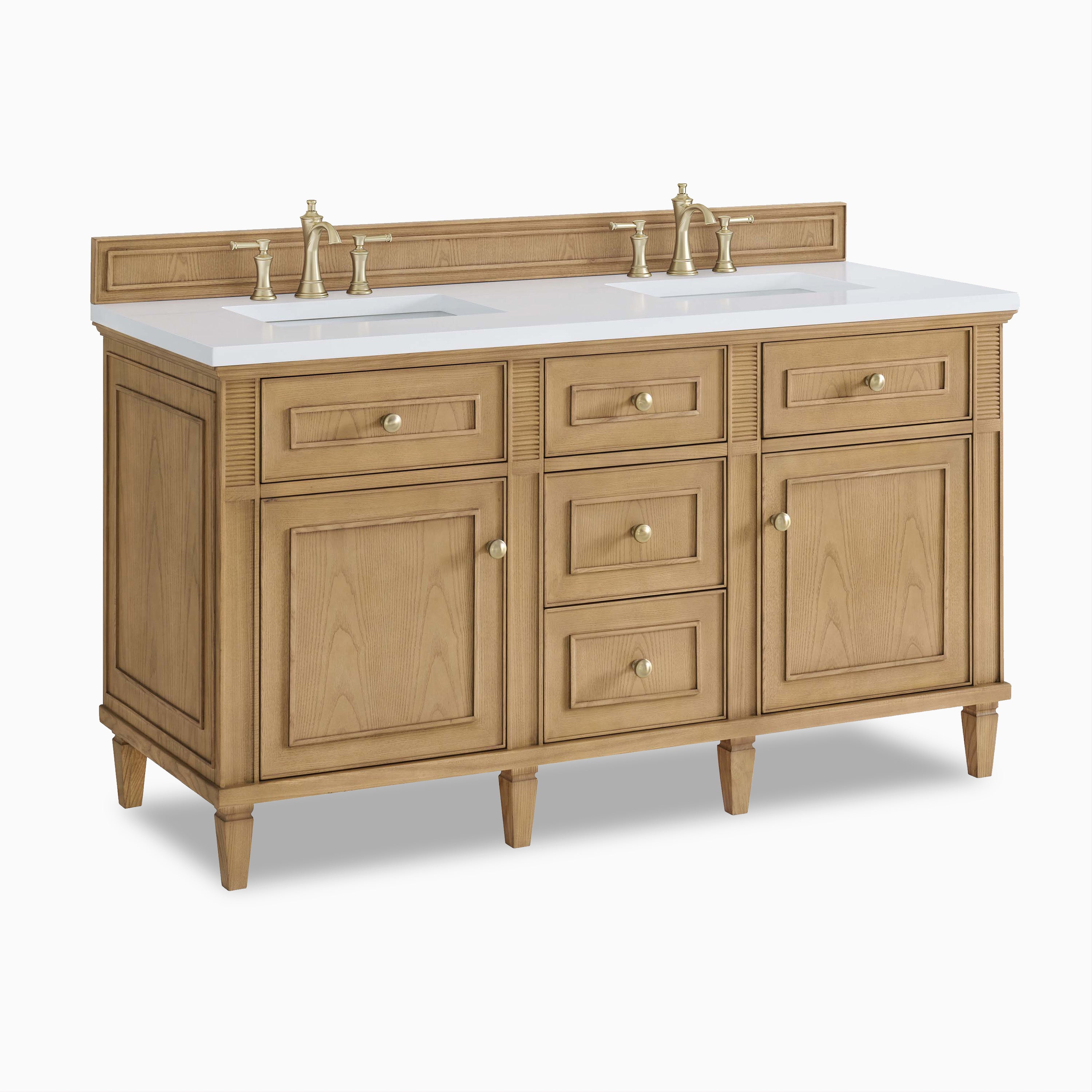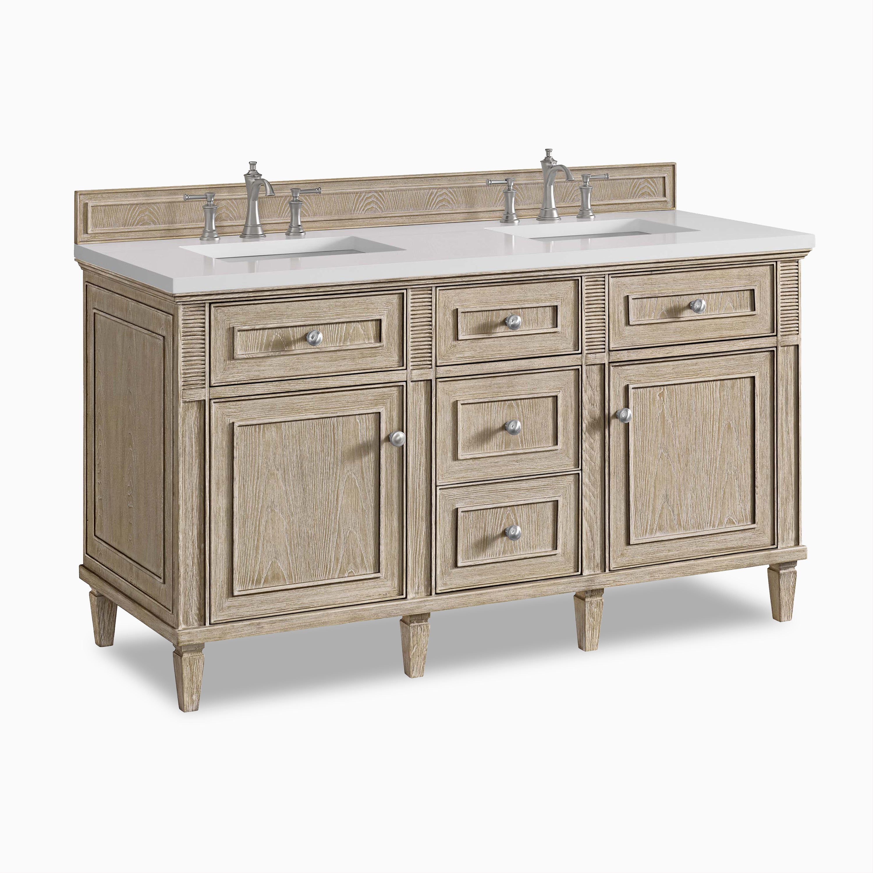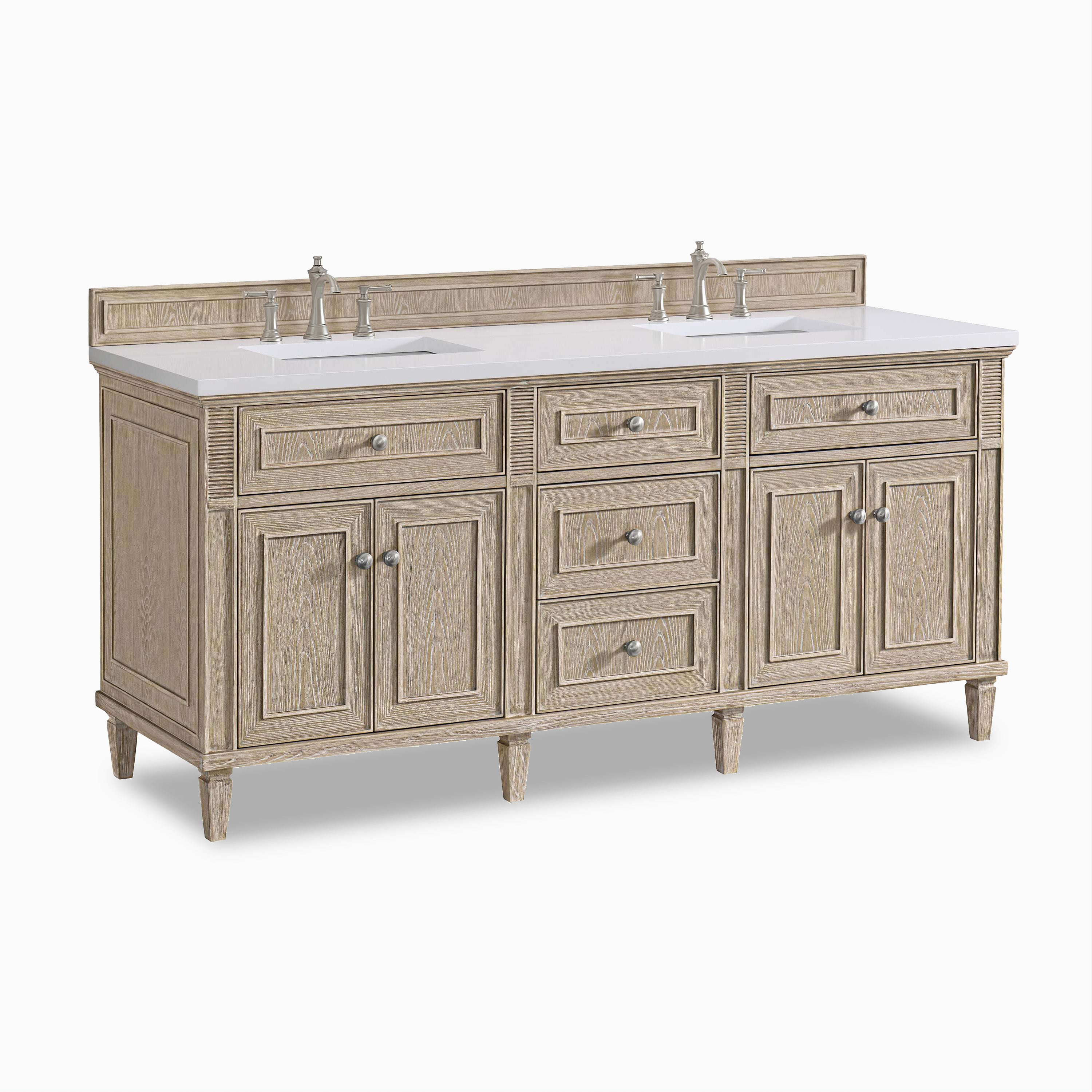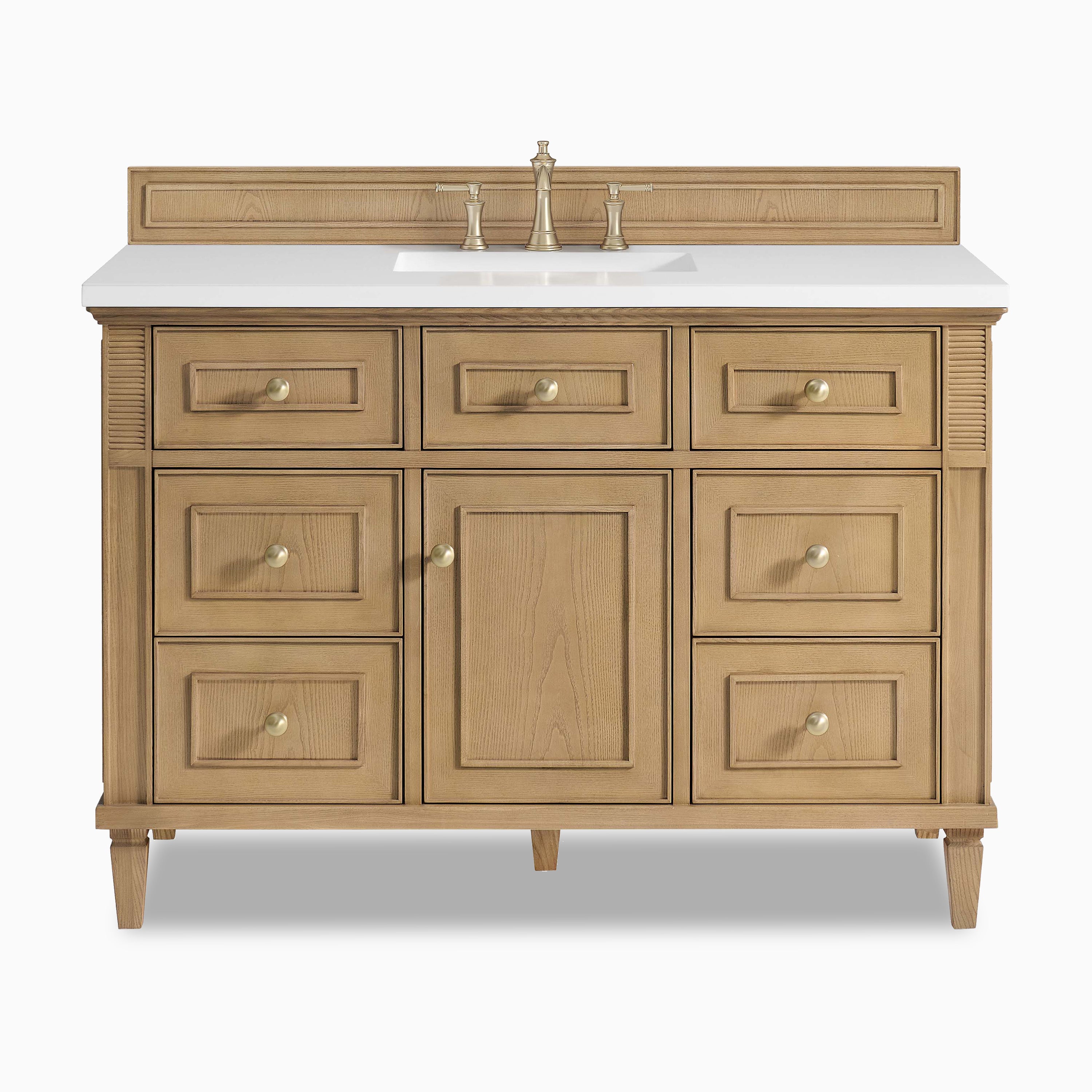 Elodie is where timeless design meets subtle, contemporary detailing. Its reeded column accents and raised picture frame molding are delicately carved into a graceful silhouette. Three drawers at the center, concealed interior shelves, and two upper tip-out drawers provide structured storage to this thoughtfully designed fixture.