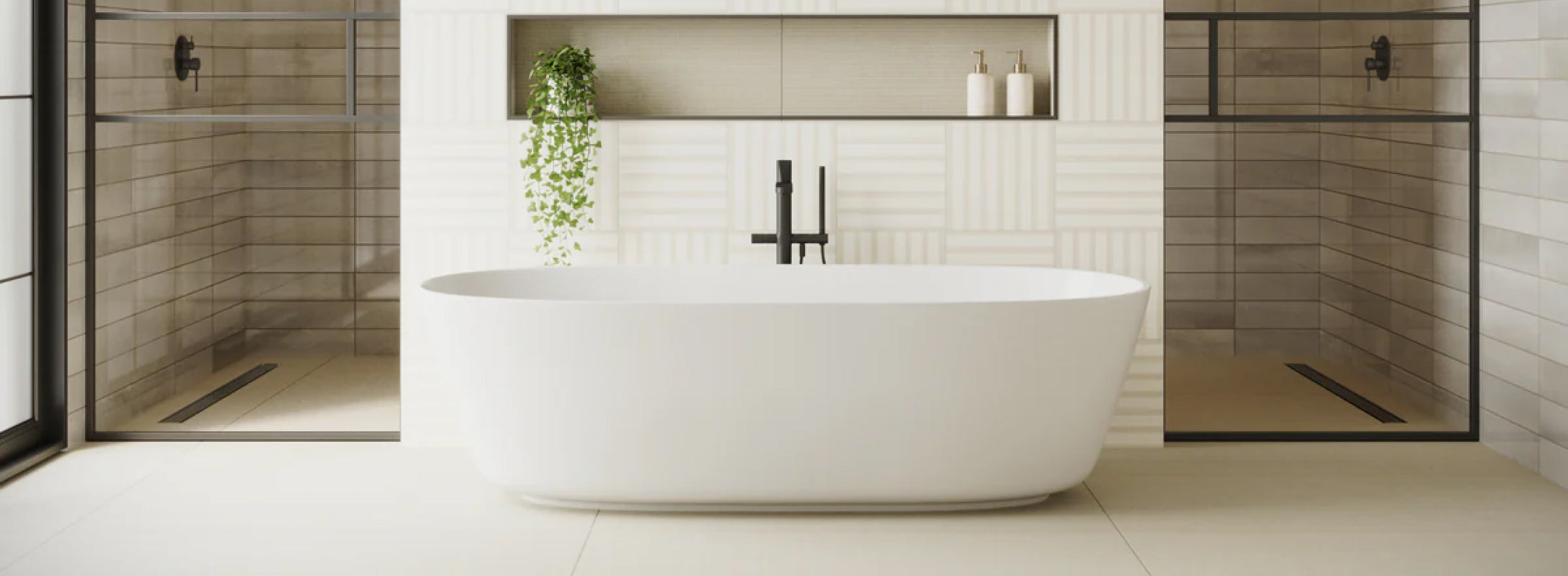 Riley brings artistic expression and subtle texture together through a mix of bold patterns and soft, fabric-like finishes. With a neutral palette and versatile formats, Riley tiles can be arranged to create anything from dynamic feature walls to serene, minimalist floors.