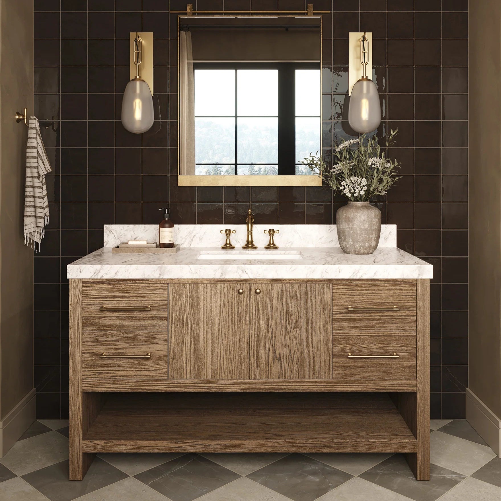 Delilah 36" Single Vanity in Seaside Oak with 3 cm White Zeus Quartz Top