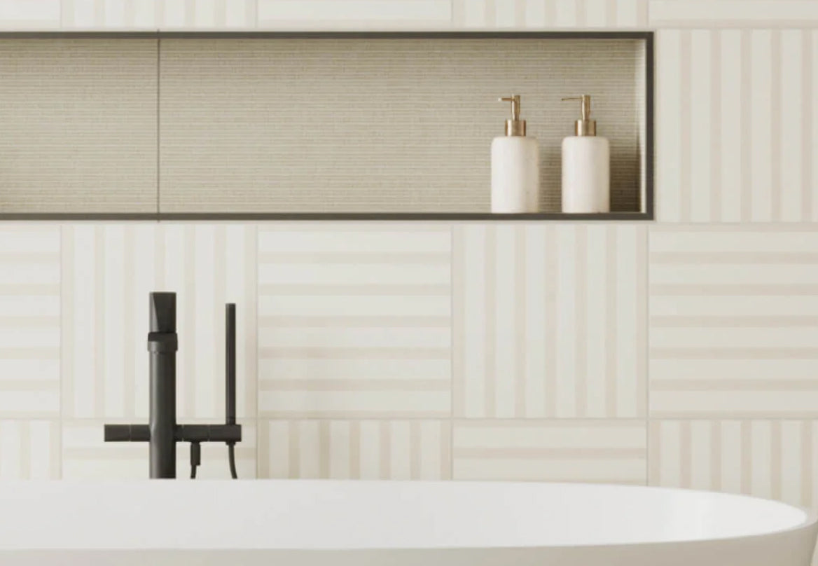 Kira 12x12 Satin Ceramic Tile in Striped Dots White