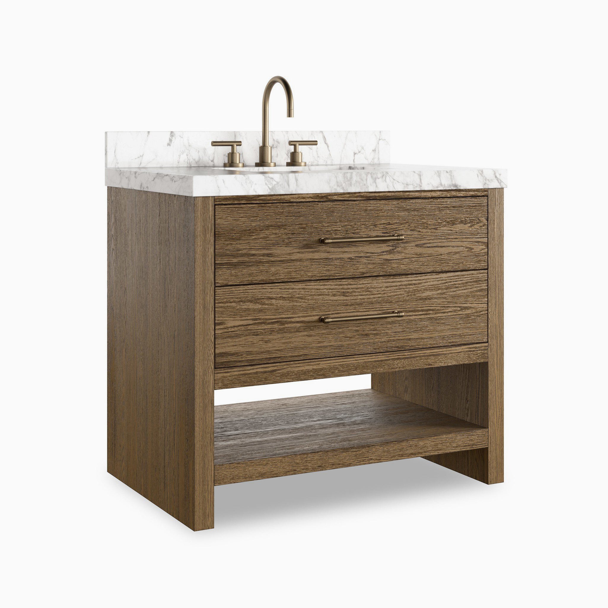 Maxine 36" Single Vanity in Washed Natural Veneer with Carrara Marble Top