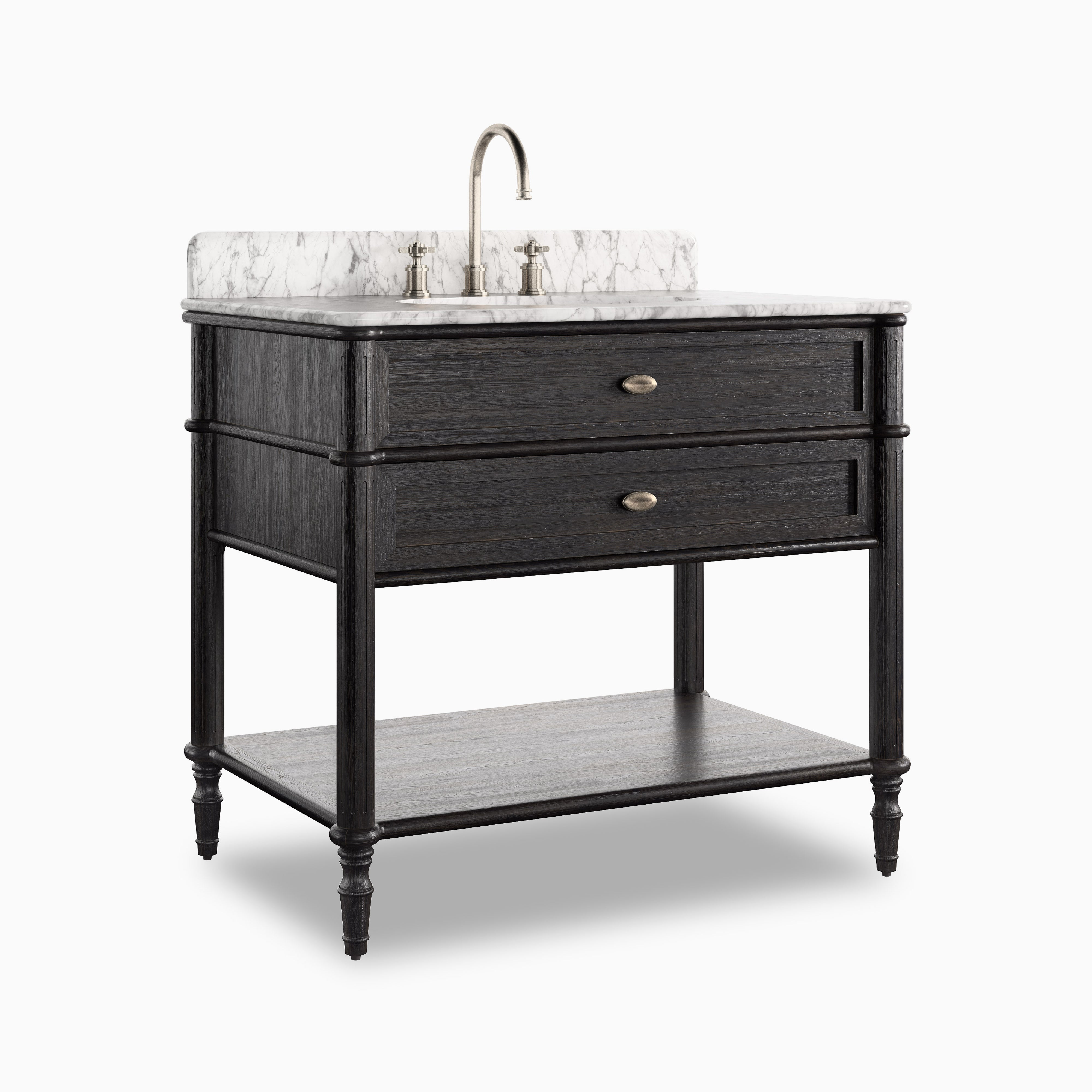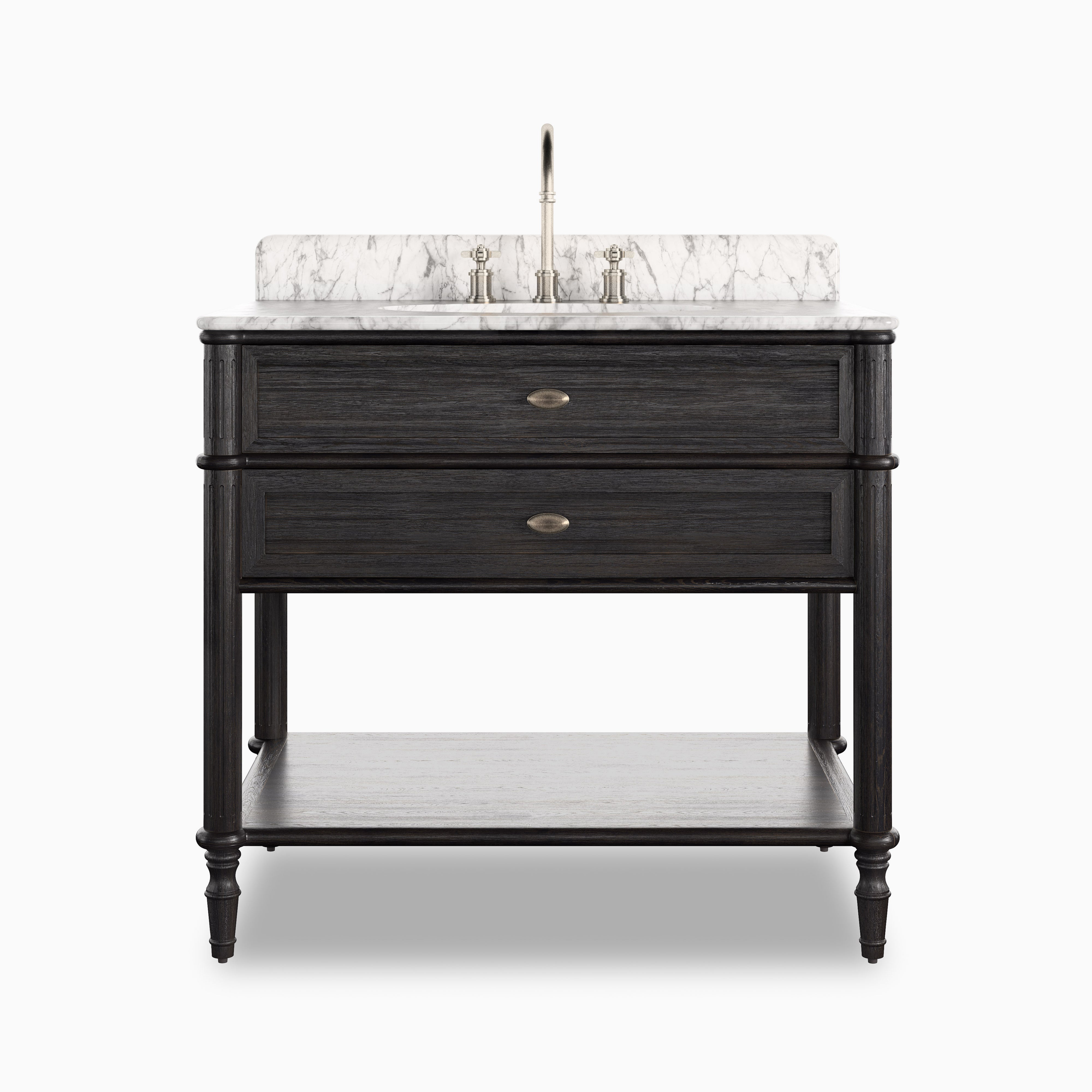 Maxine 36" Single Vanity in Black Wash Oak Veneer with Carrara Marble Top