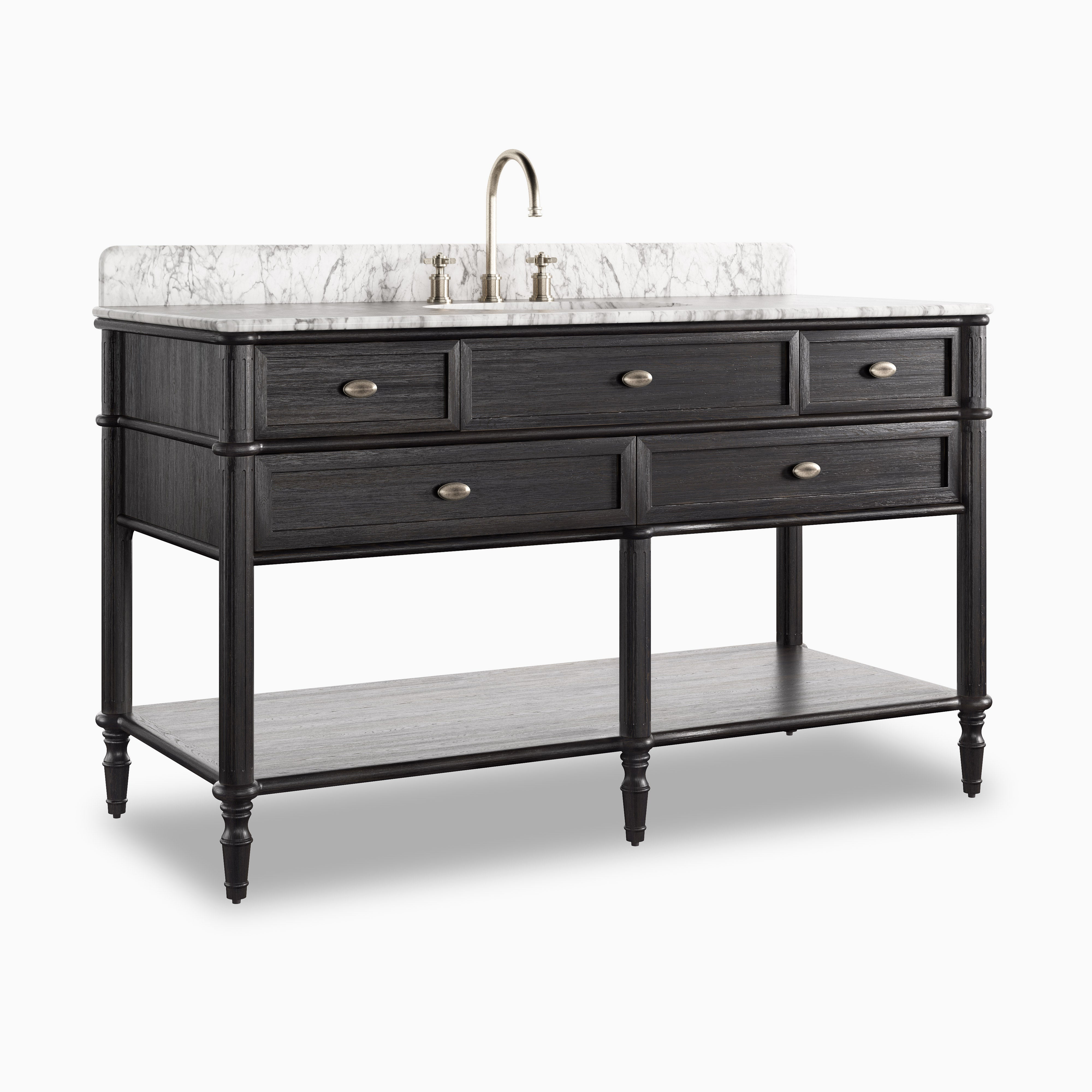 Maxine 55" Single Vanity in Black Wash Oak Veneer with Carrara Marble Top