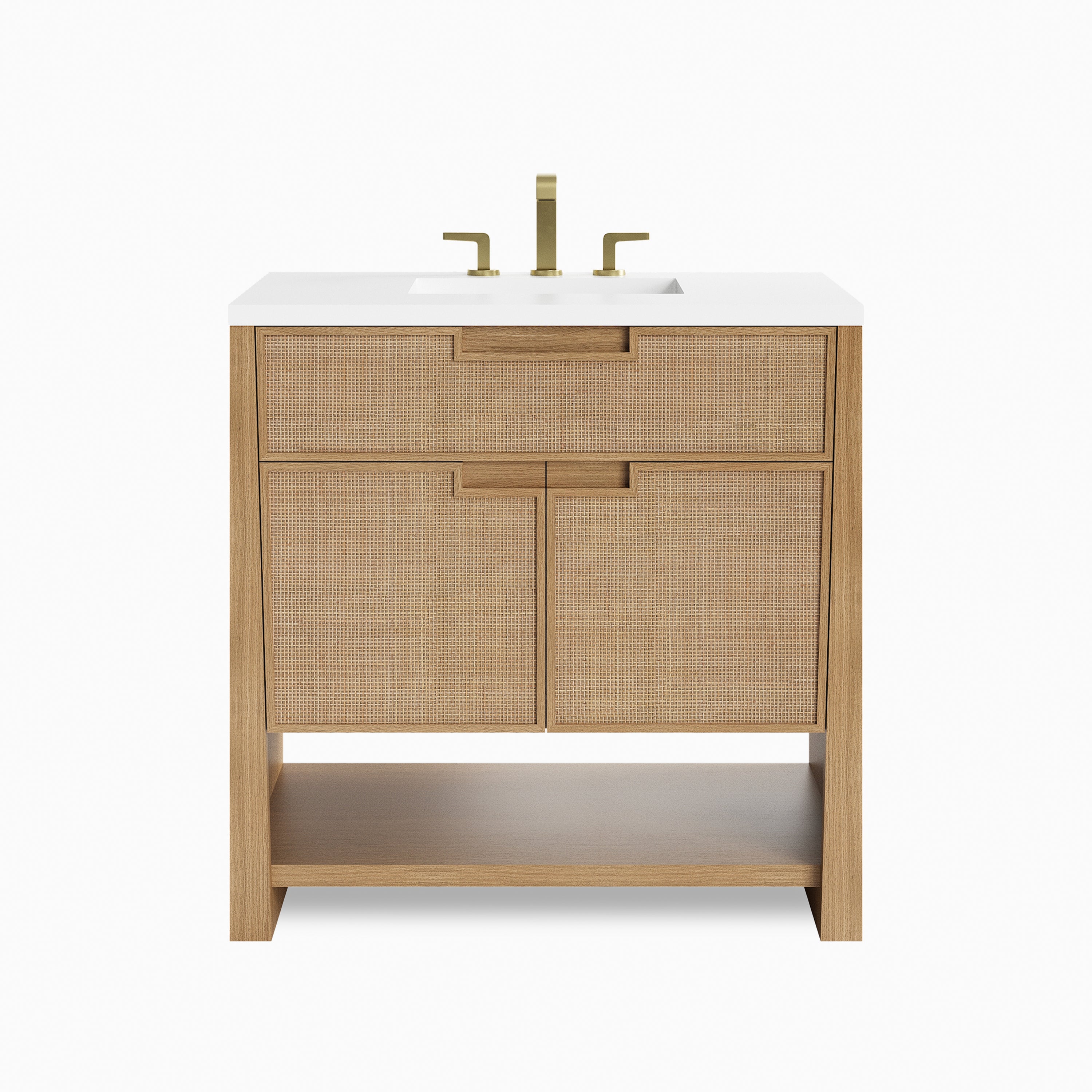 Rosalie 36" Single Vanity in Amber Birch with 3 cm White Zeus Quartz Top