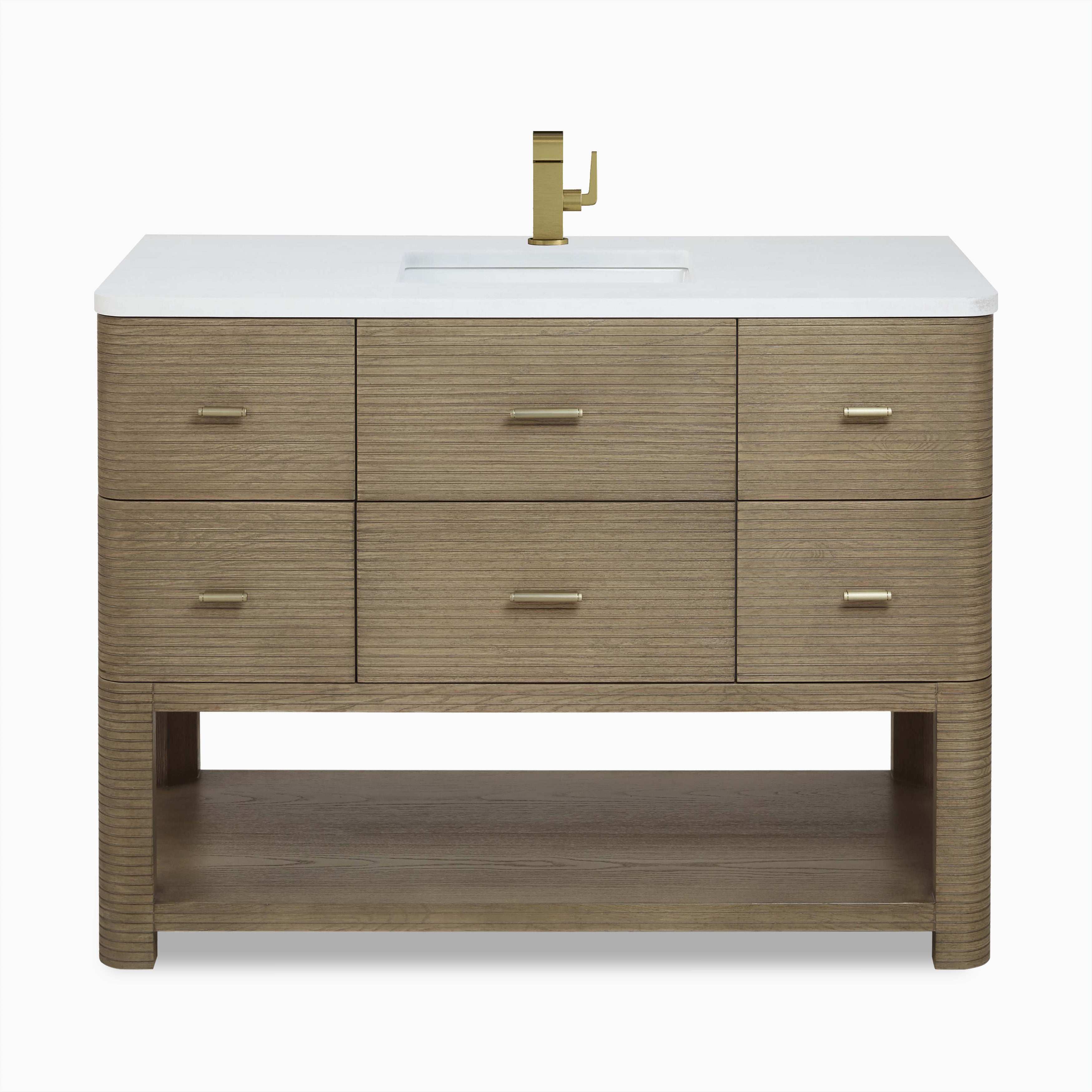 Gwen 48" Single Vanity in Pebble Oak with 3 cm White Zeus Quartz Top