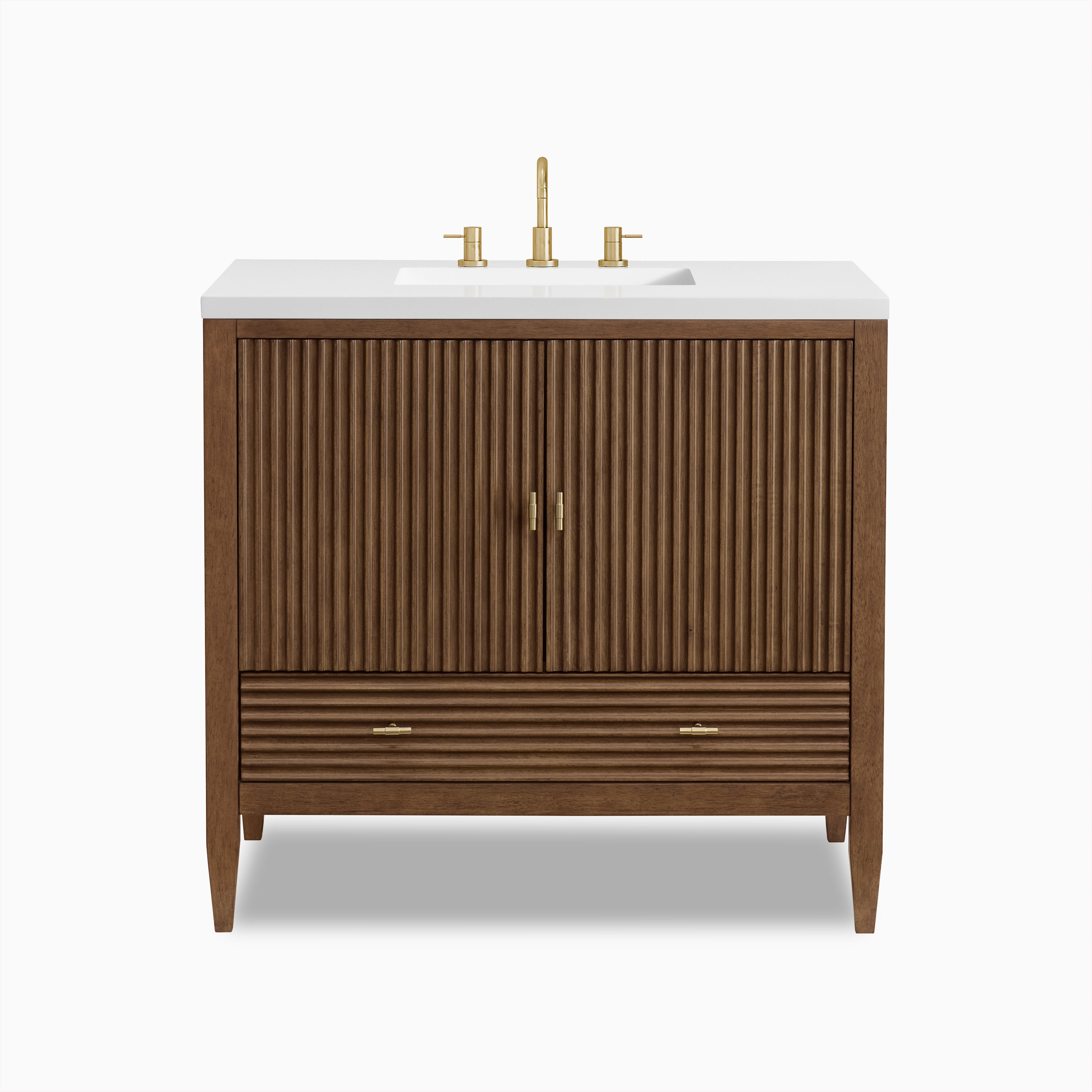 Demi 36" Single Vanity in Mid-Century Walnut with 3 cm White Zeus Quartz Top