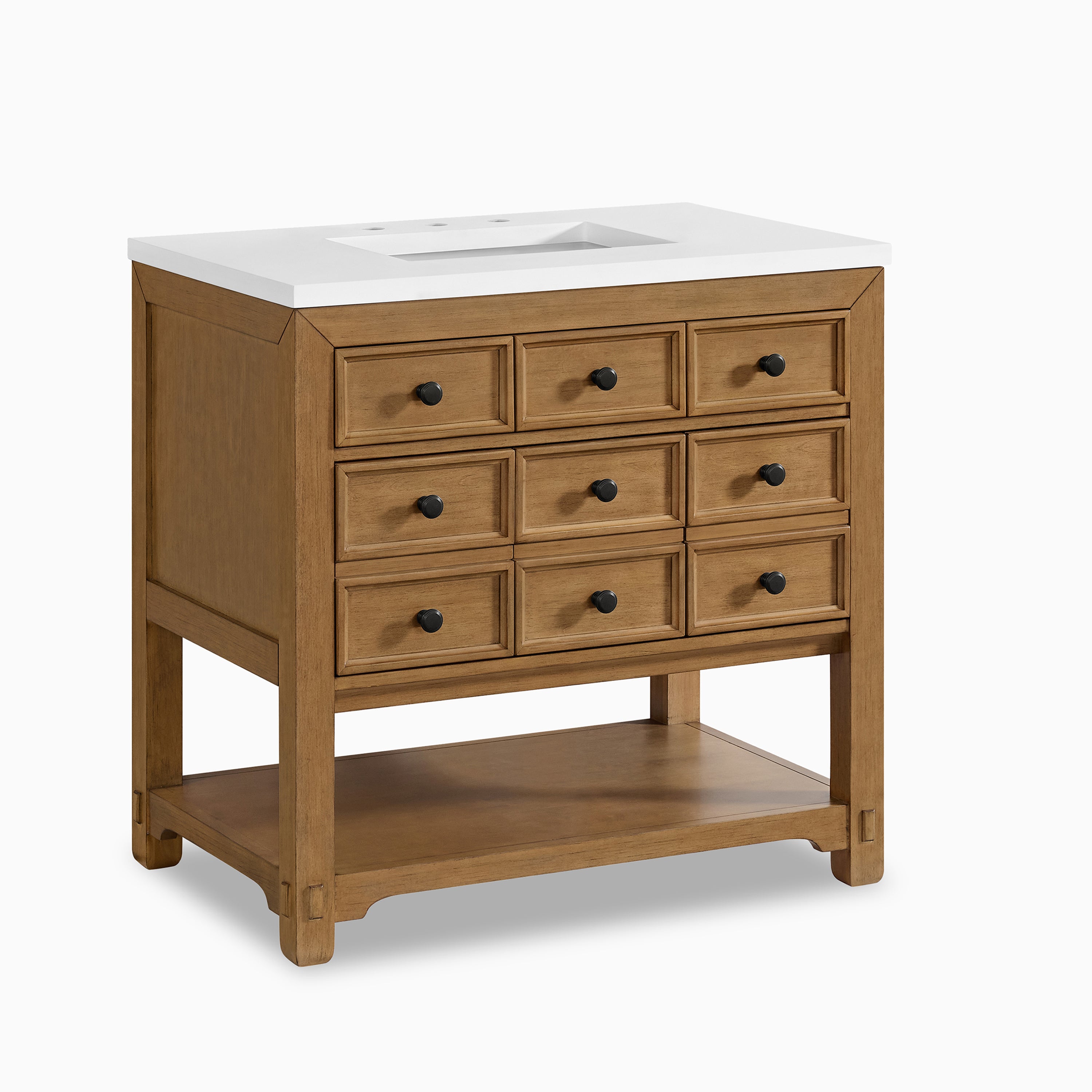Paxton 36" Single Vanity in Pebble Oak with 3 cm White Zeus Quartz Top