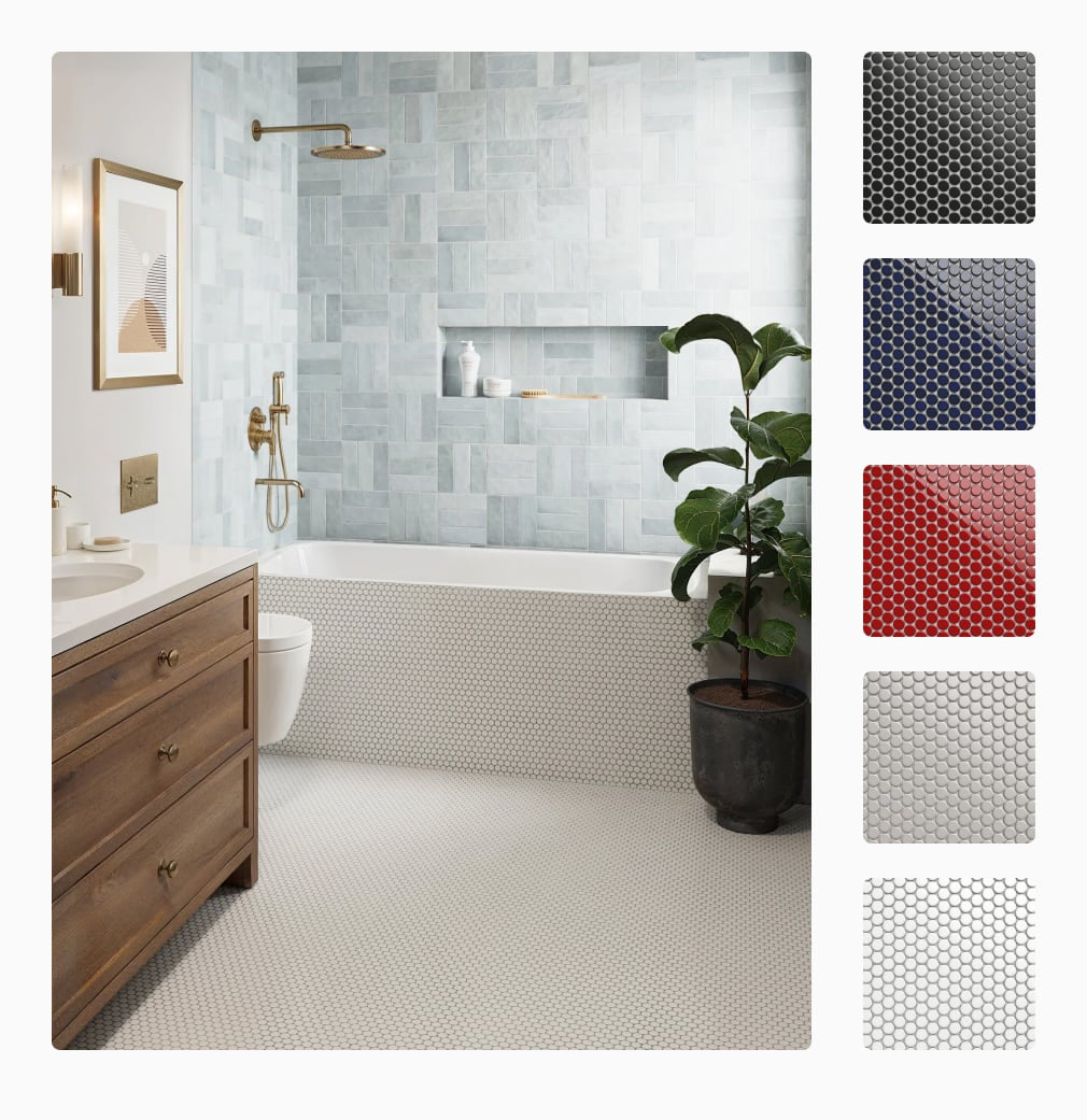 Get a feel for our premium tiles with $1 samples. Request 4x4 chip samples delivered straight to your door!