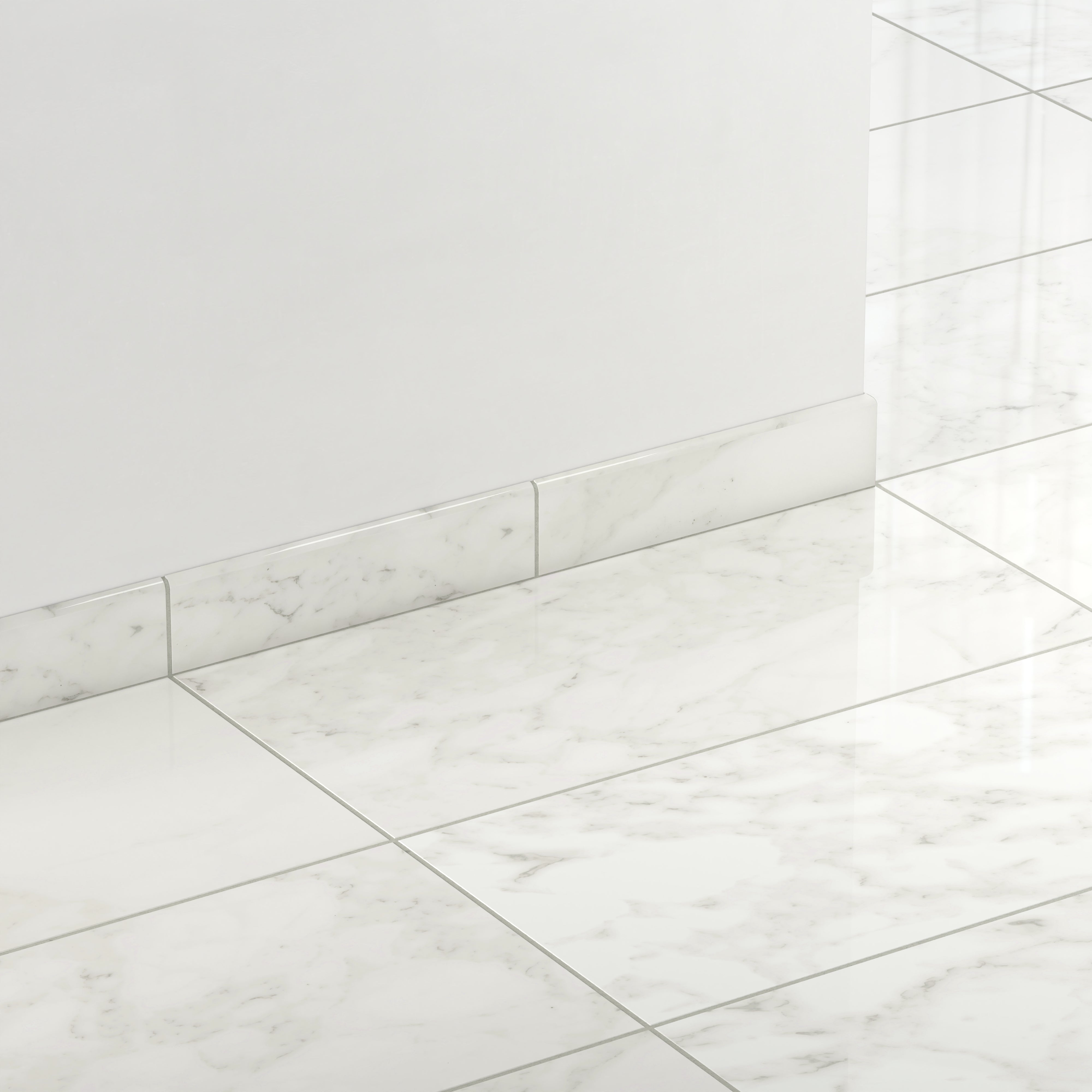 Aniston 3x12 Polished Porcelain Bullnose Tile in Carrara Bianco