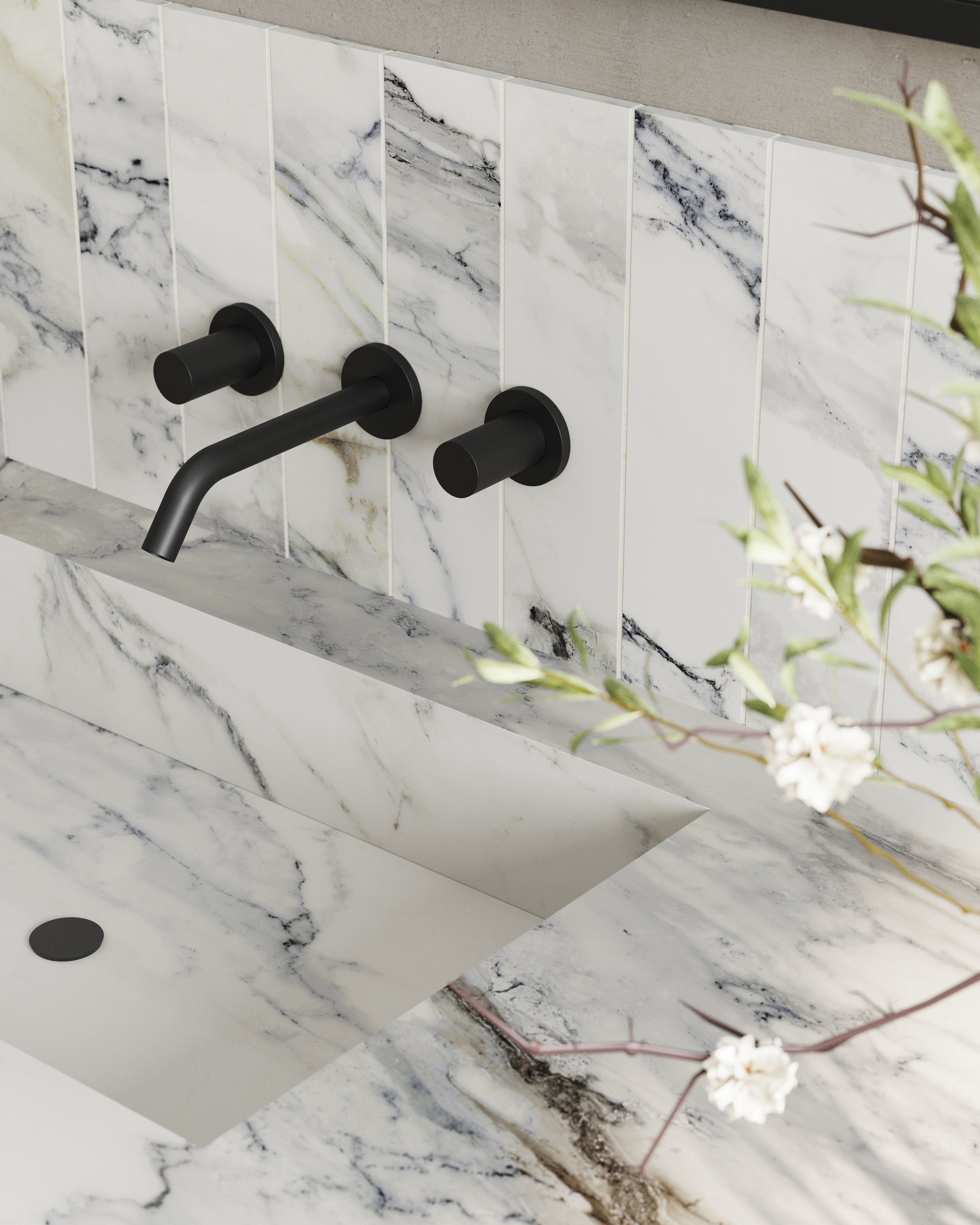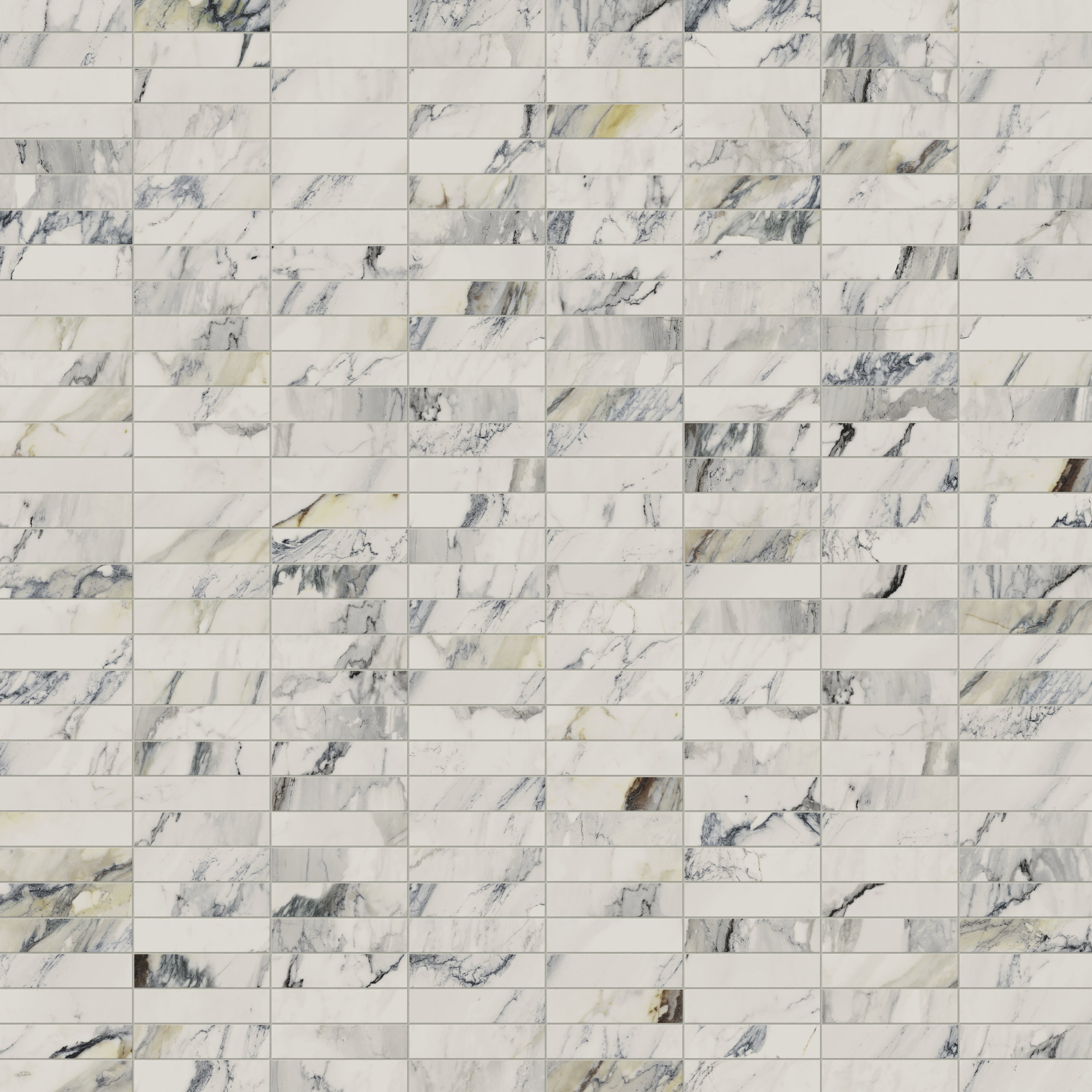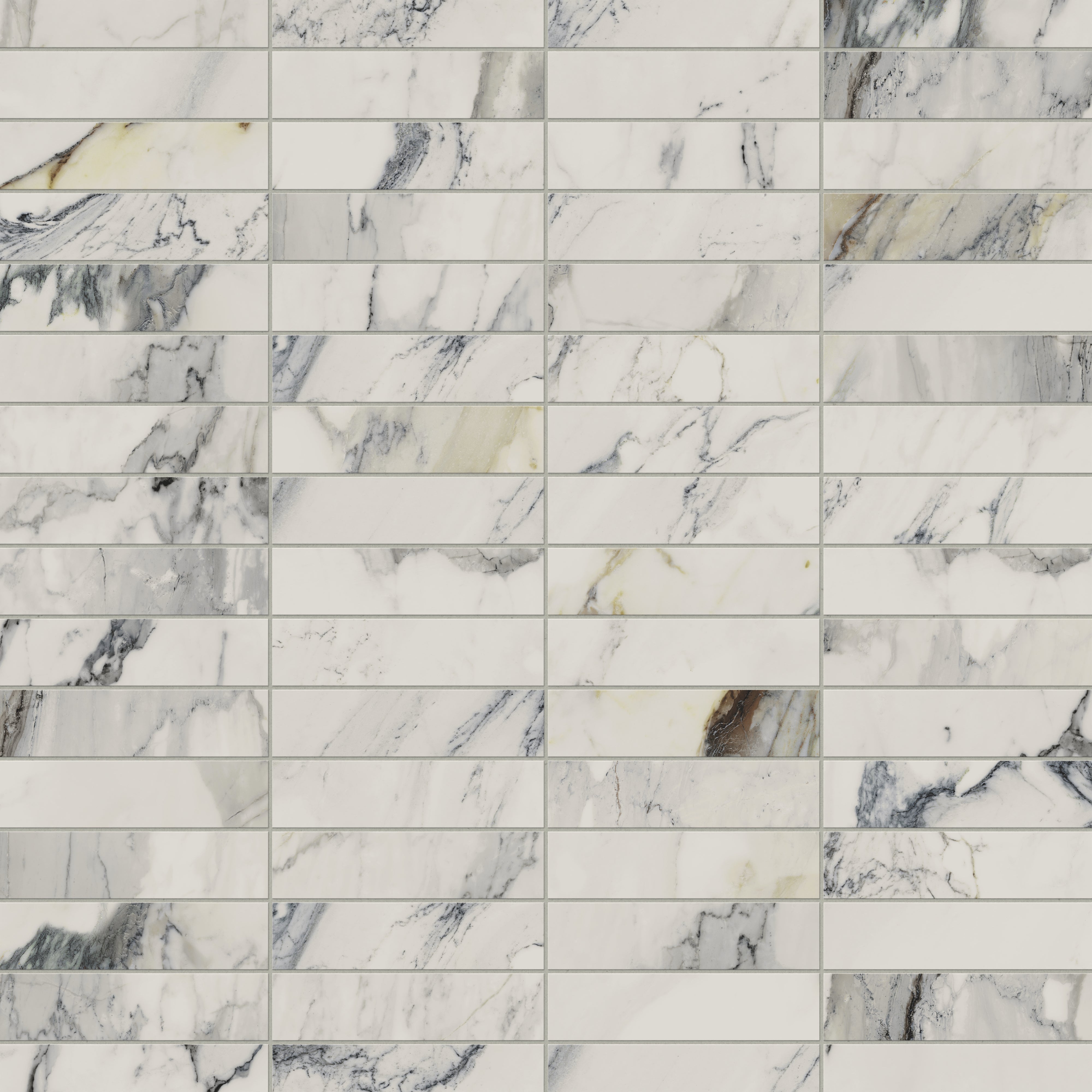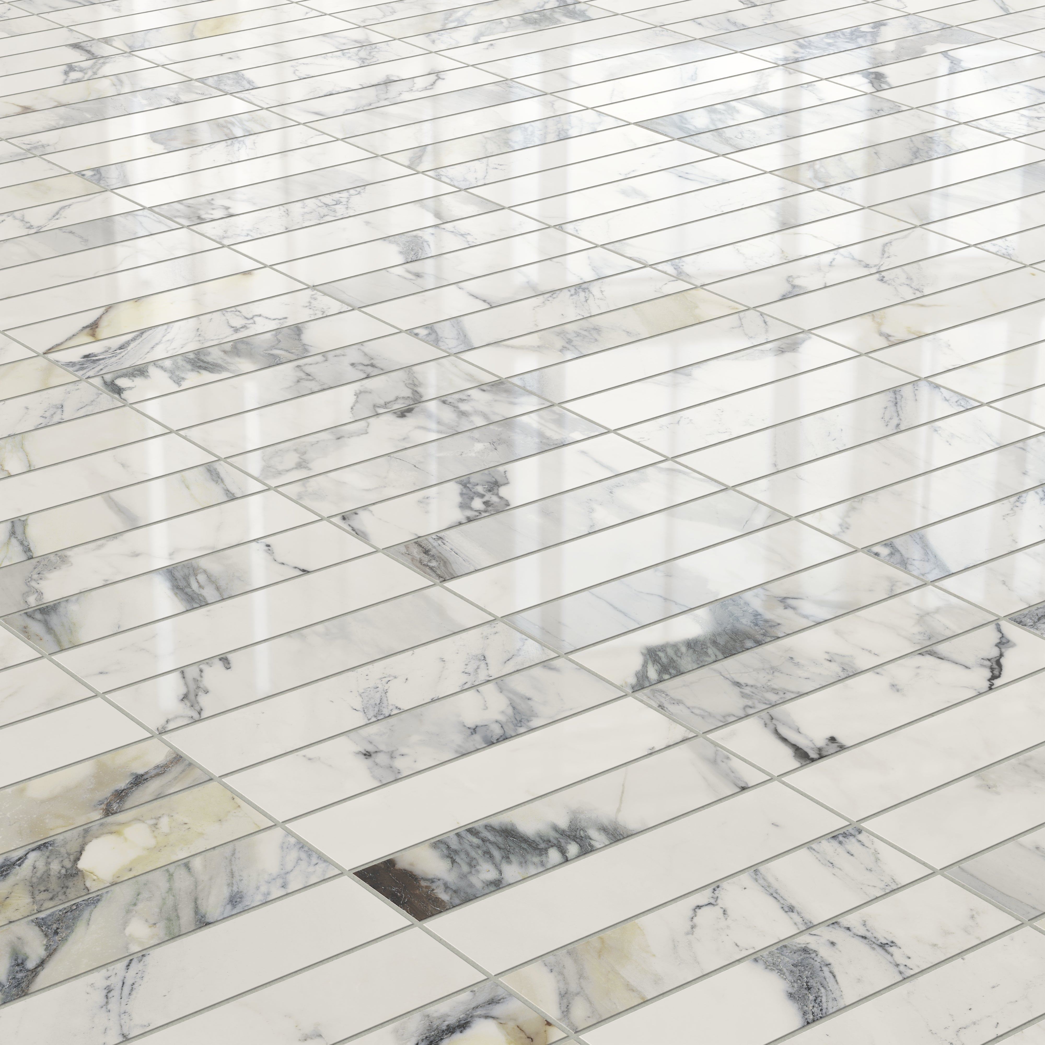 A tribute to marble’s most noble form, our Aniston 3x12 Polished Porcelain Tile in Calacatta Antico features delicate shades of silvery-gray and bluish streams that drift across an extended, white subway canvas. With a lustrous finish that reflects light like silk, it envelopes any space with a modern sense of grandeur that transcends time.