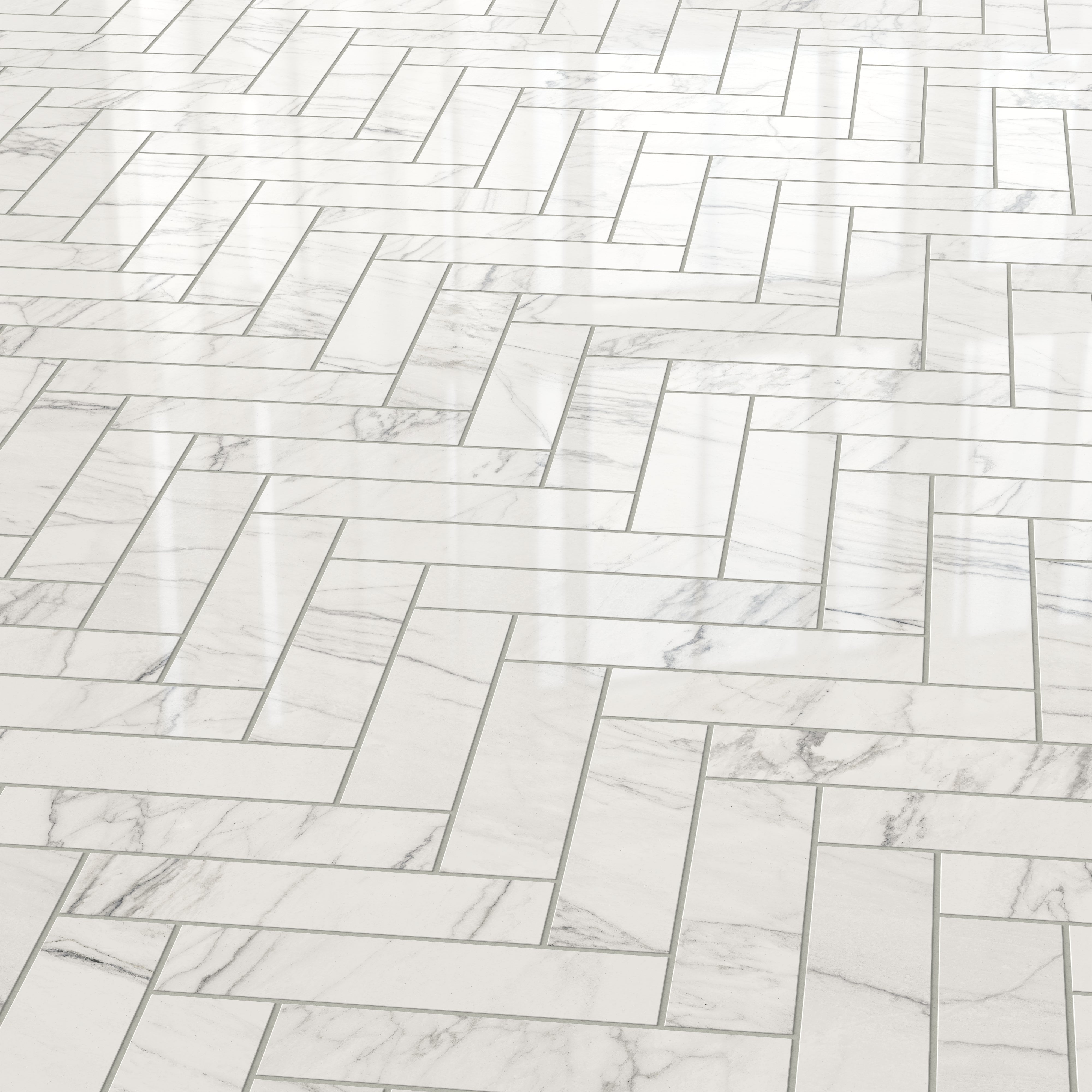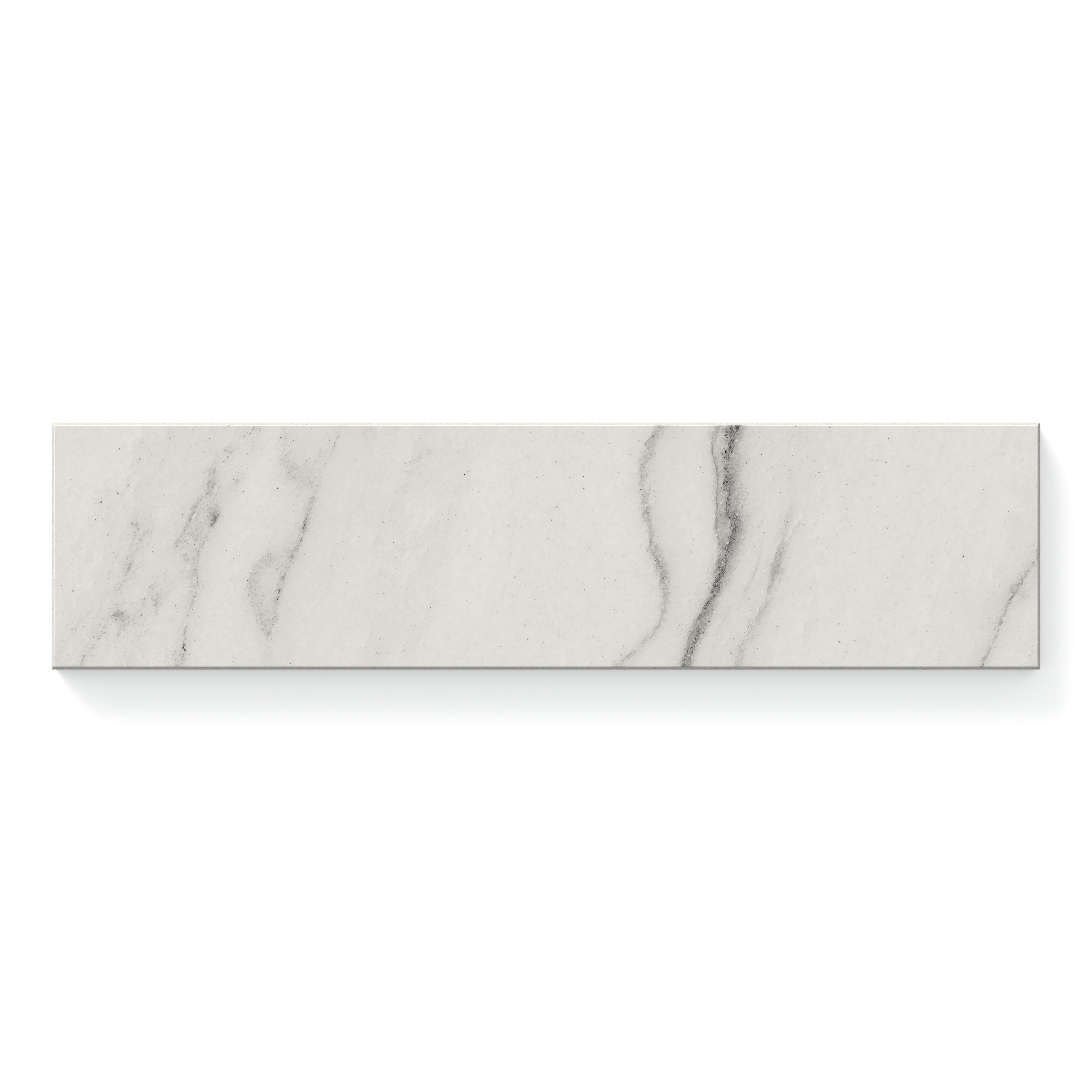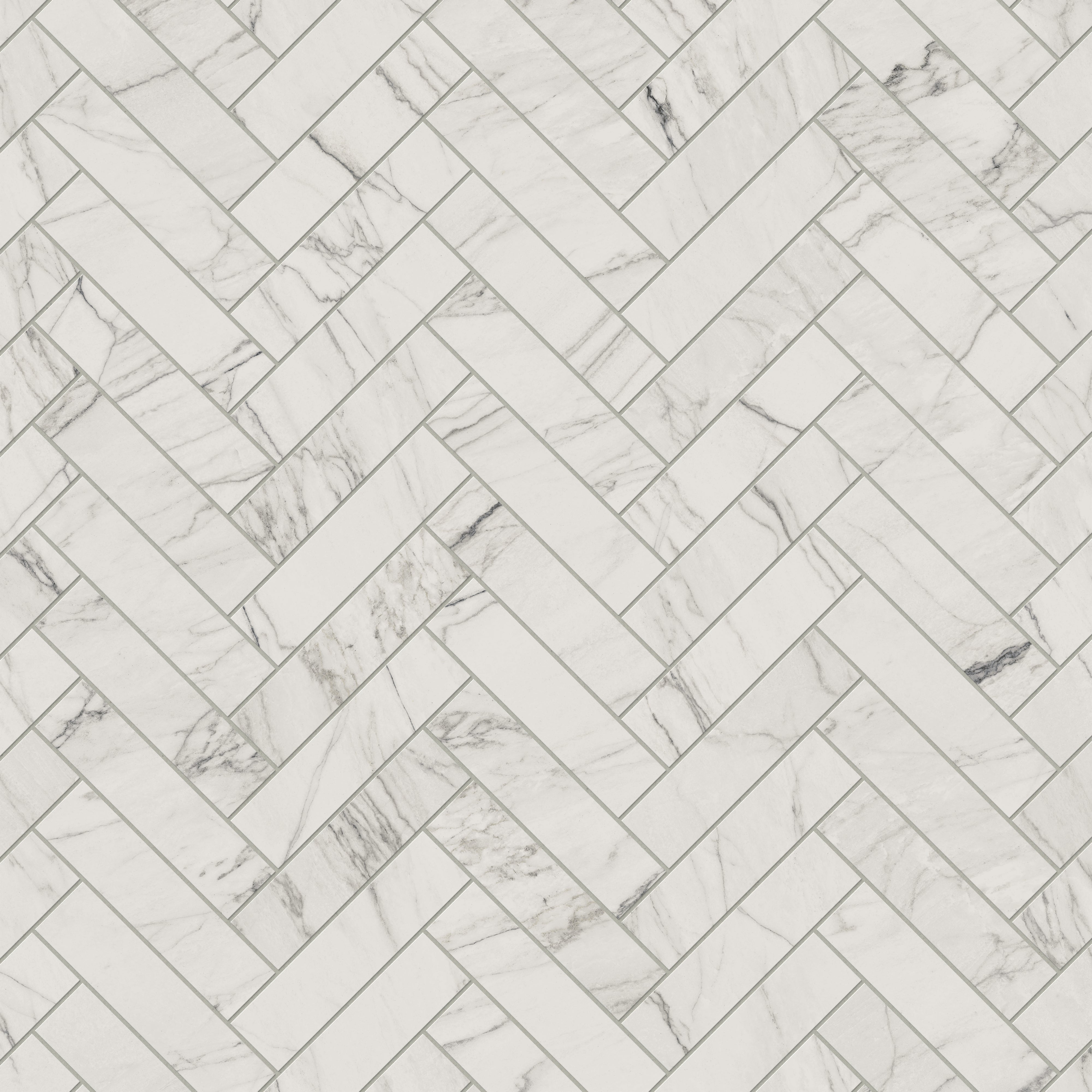 A tribute to marble’s most noble form, our Aniston 3x12 Polished Porcelain Tile in Calacatta Quarzite features linear veins of cool gray that drift across an extended, white subway canvas. With a lustrous finish that reflects light like silk, it envelopes any space with a modern sense of grandeur that transcends time.