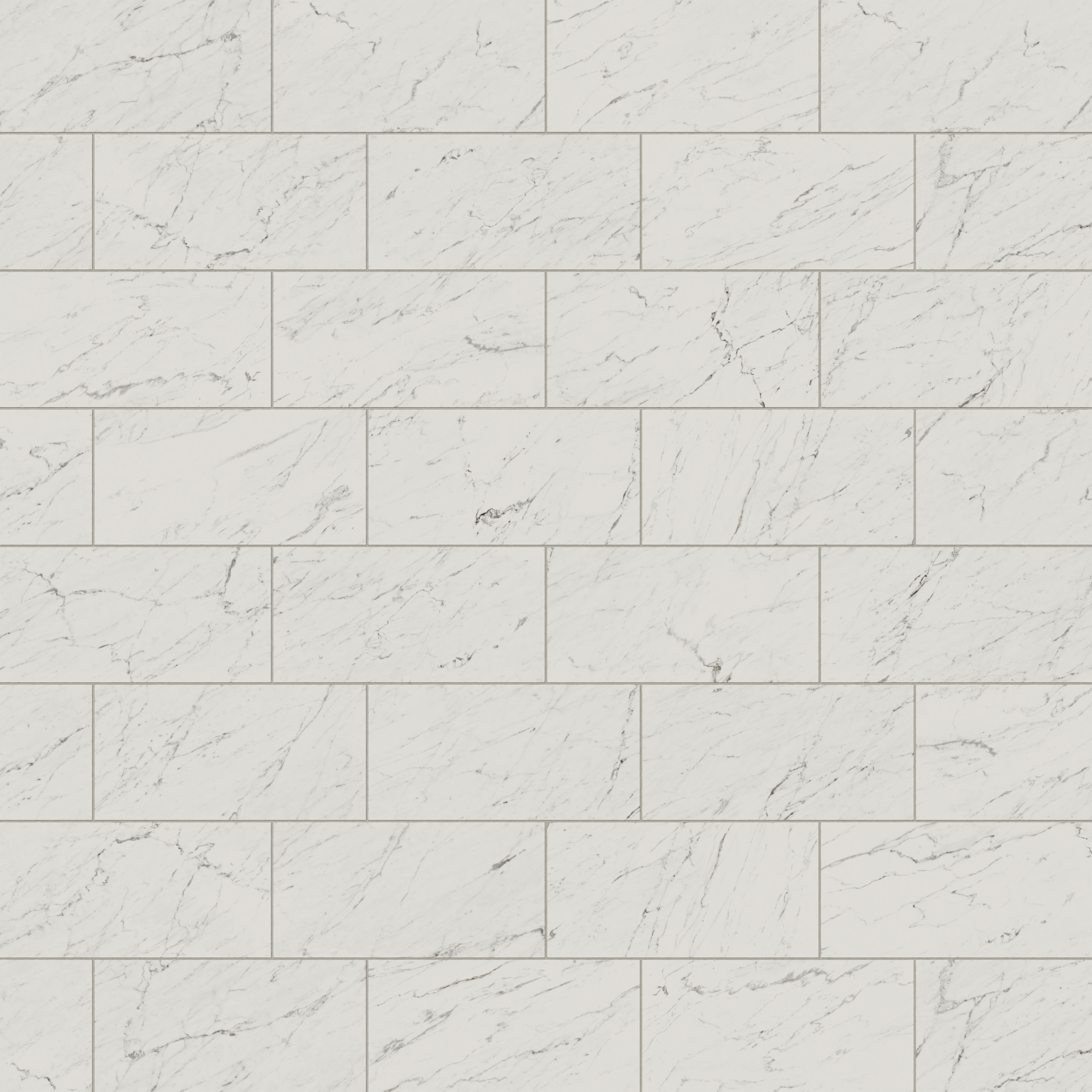 Our Blair 12x24 Polished Porcelain Tile in White Carrara fuses the sophistication of timeless materials with a refined, modern scale, featuring standard-format rectangles that mimic a natural Carrara stone look in fine-lined white. The delicate veining also varies across each lustrous piece, capturing the layered depth of this opulent marble to enhance its sense of movement and authenticity.