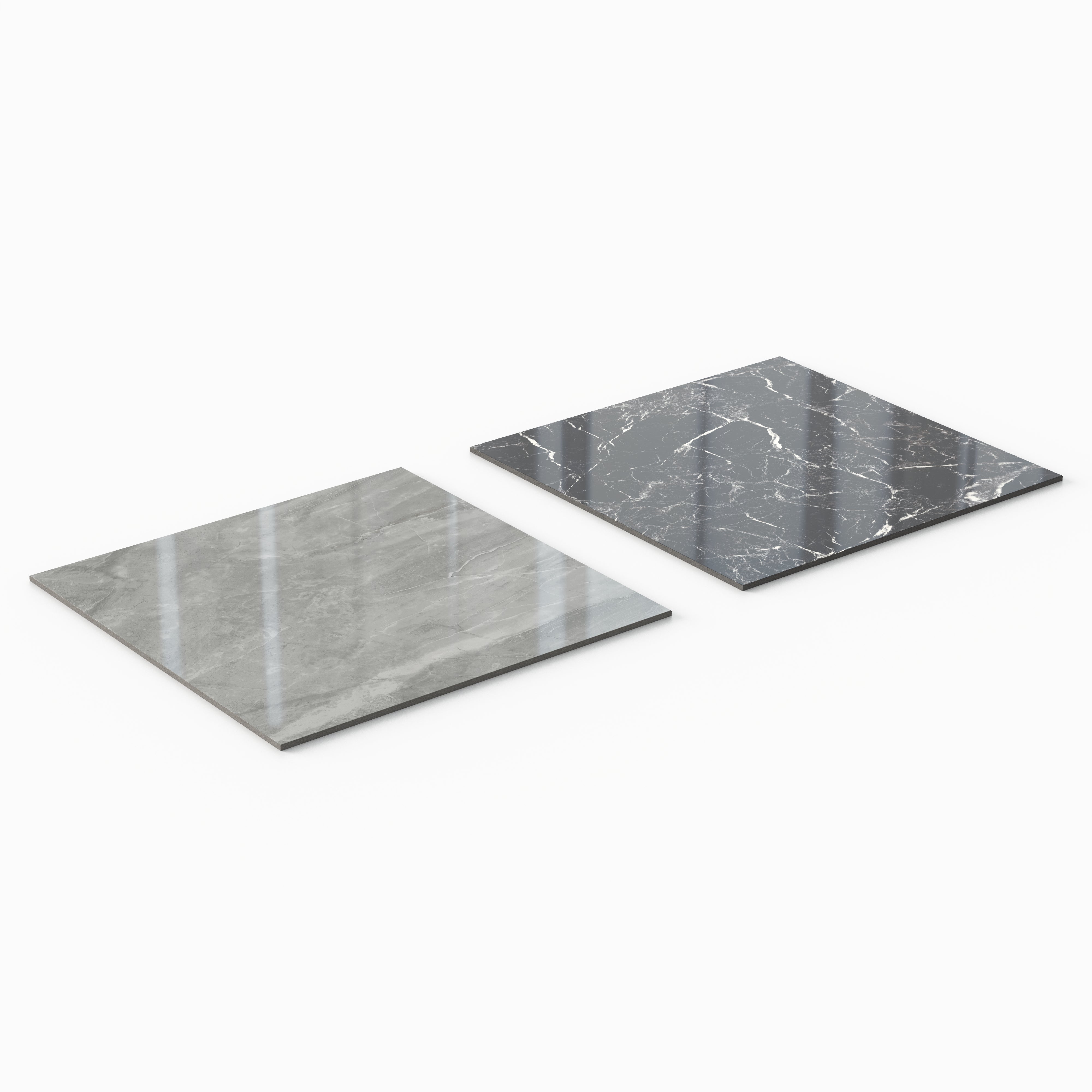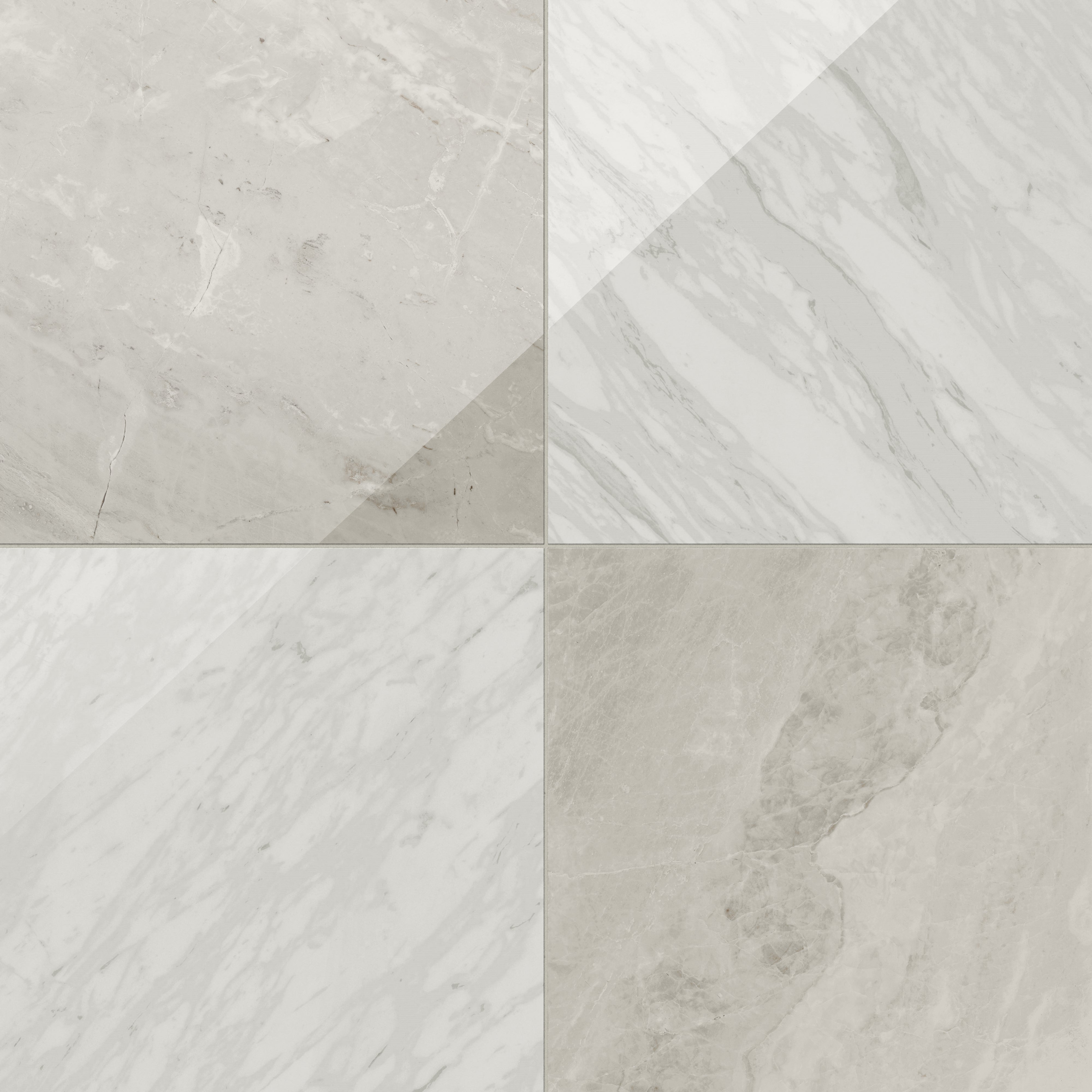 - Marble-inspired porcelain pairs for a low-maintenance checkered look