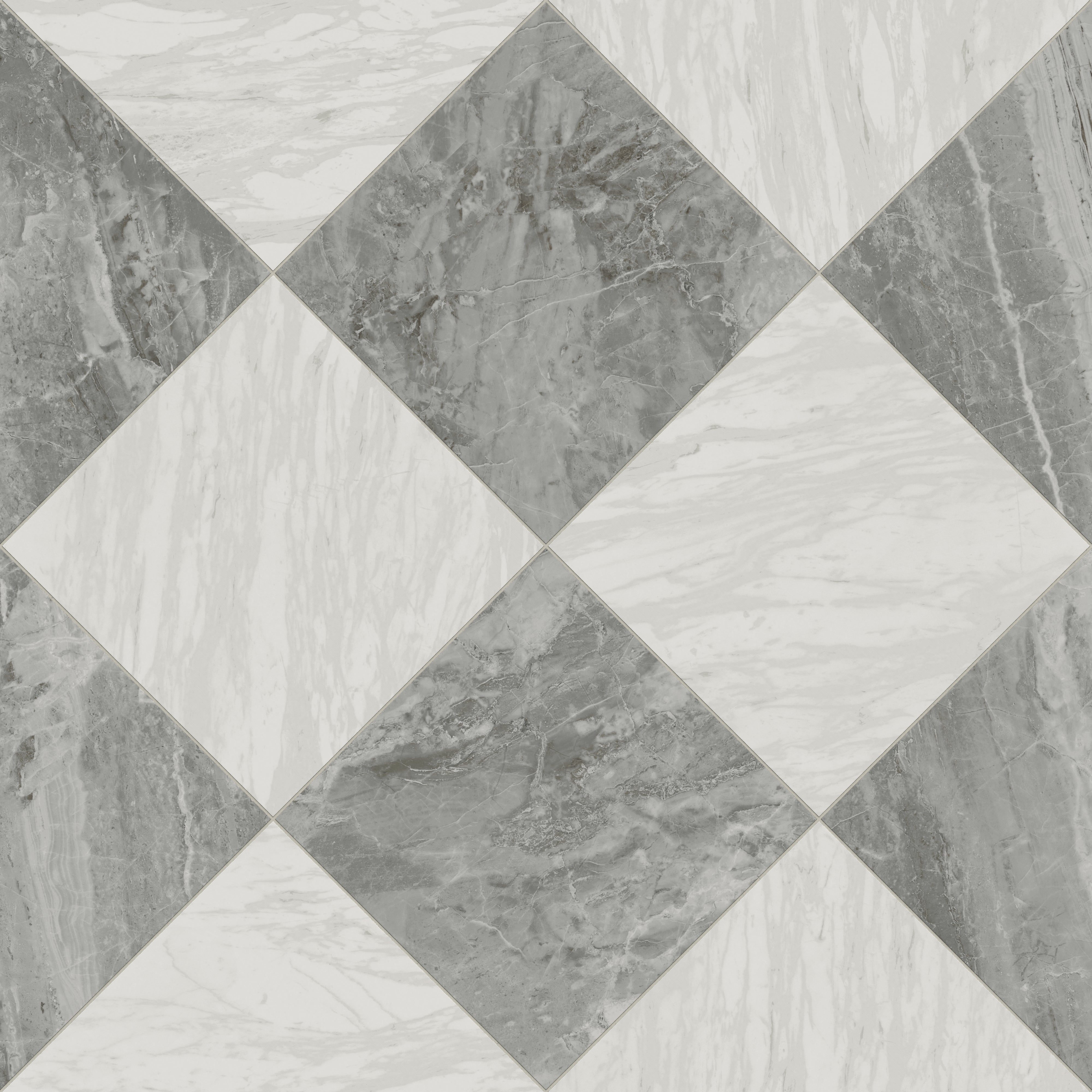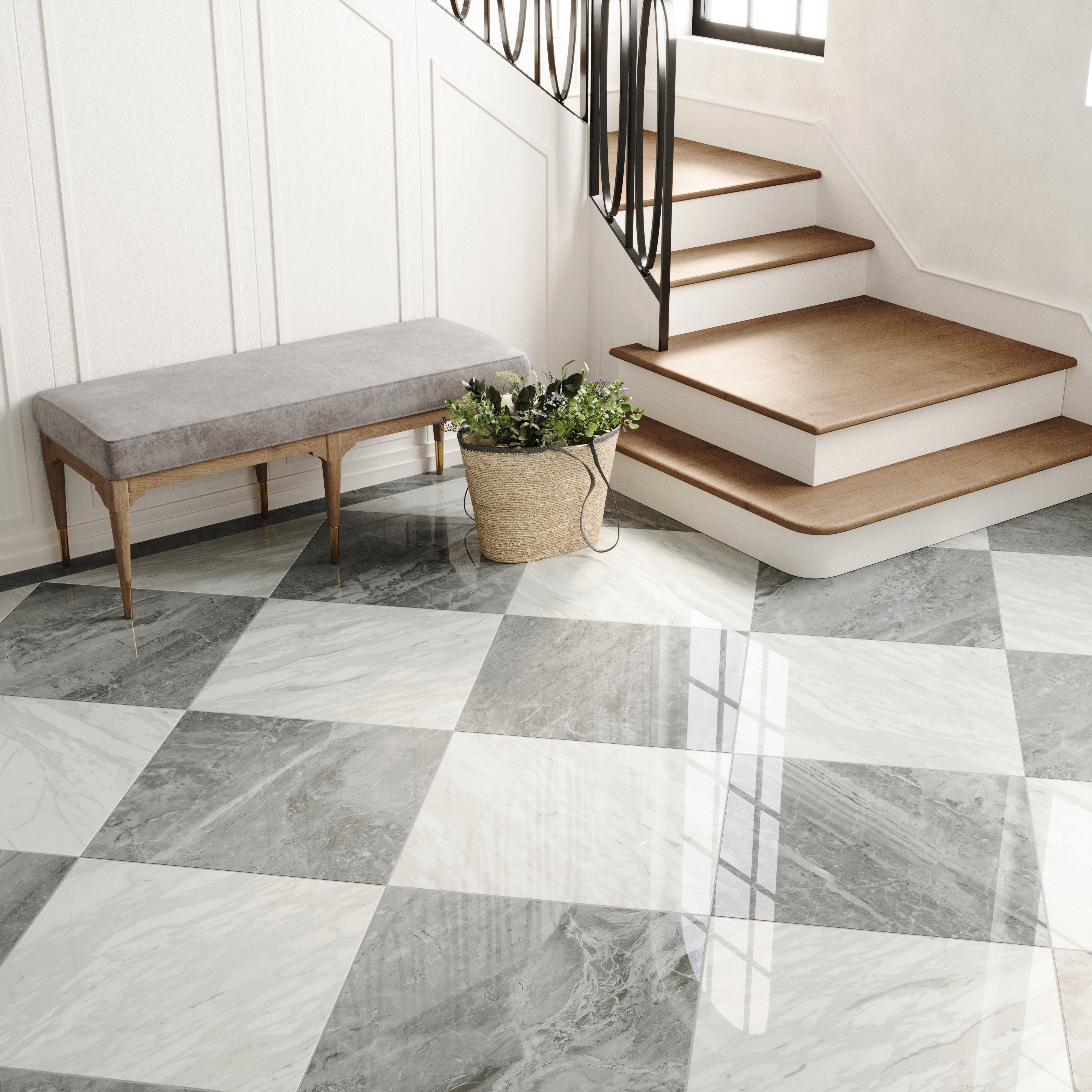 Blair 24x24 Checkerboard Polished Porcelain Tile in Oniciata Grey and Volakas White