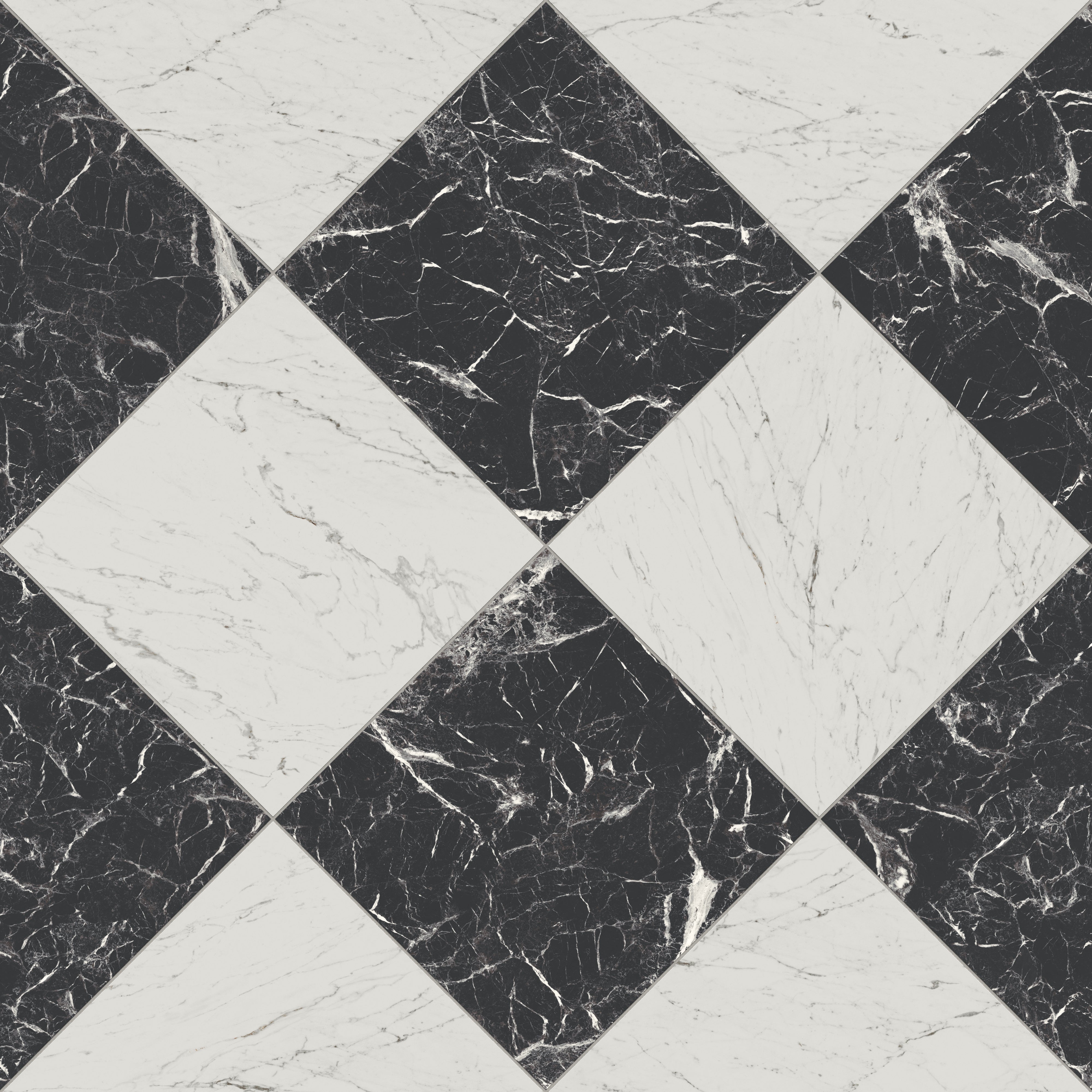 - Marble-inspired porcelain pairs for a low-maintenance checkered look