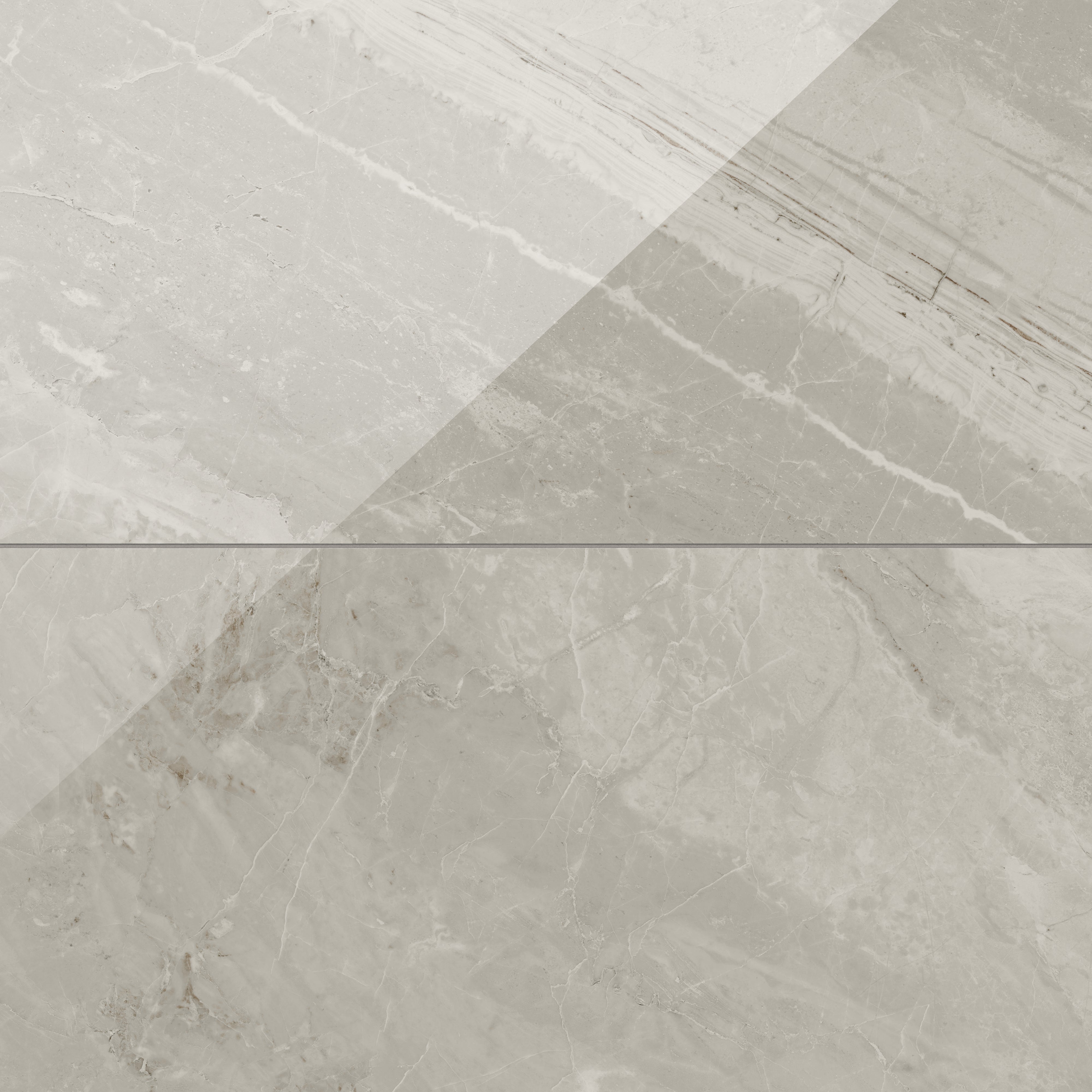 Our Blair 24x48 Polished Porcelain Tile in Oniciata Beige fuses the sophistication of timeless materials with a refined, modern scale, featuring large-format rectangles that mimic a natural Oniciata stone look in muted, mineral beige. The delicate veining also varies across each lustrous piece, capturing the layered depth of this opulent marble to enhance its sense of movement and authenticity.