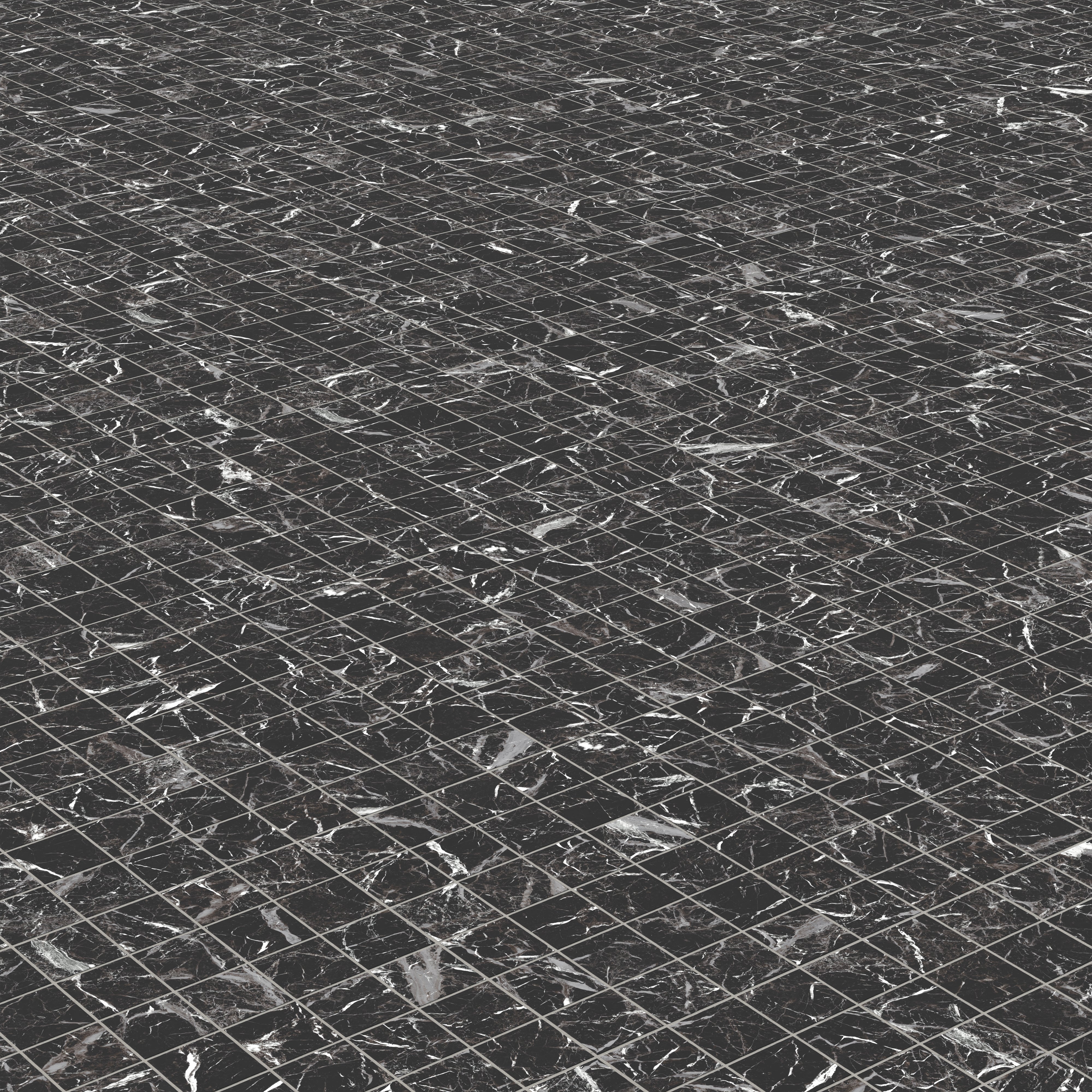 Our Blair 2x2 Matte Porcelain Mosaic Tile in Marmo Black fuses the sophistication of timeless materials with a refined, modern scale, featuring mesh-mounted squares that mimic a natural Marmo stone look in deep, inked black. The delicate veining also varies across each softly textured piece, capturing the layered depth of this opulent marble to enhance its sense of movement and authenticity.