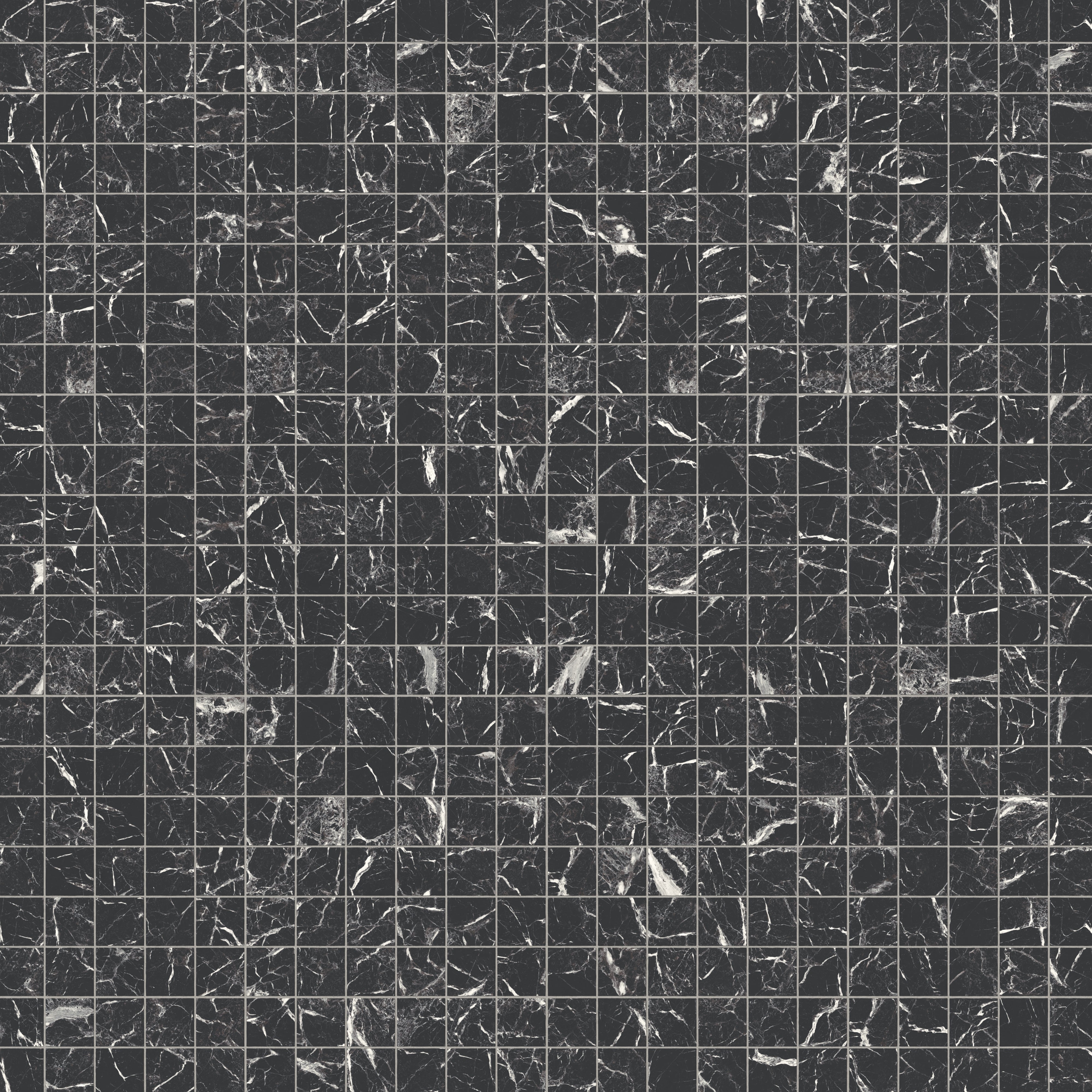Our Blair 2x2 Polished Porcelain Mosaic Tile in Marmo Black fuses the sophistication of timeless materials with a refined, modern scale, featuring mesh-mounted squares that mimic a natural Marmo stone look in deep, inked black. The delicate veining also varies across each lustrous piece, capturing the layered depth of this opulent marble to enhance its sense of movement and authenticity.