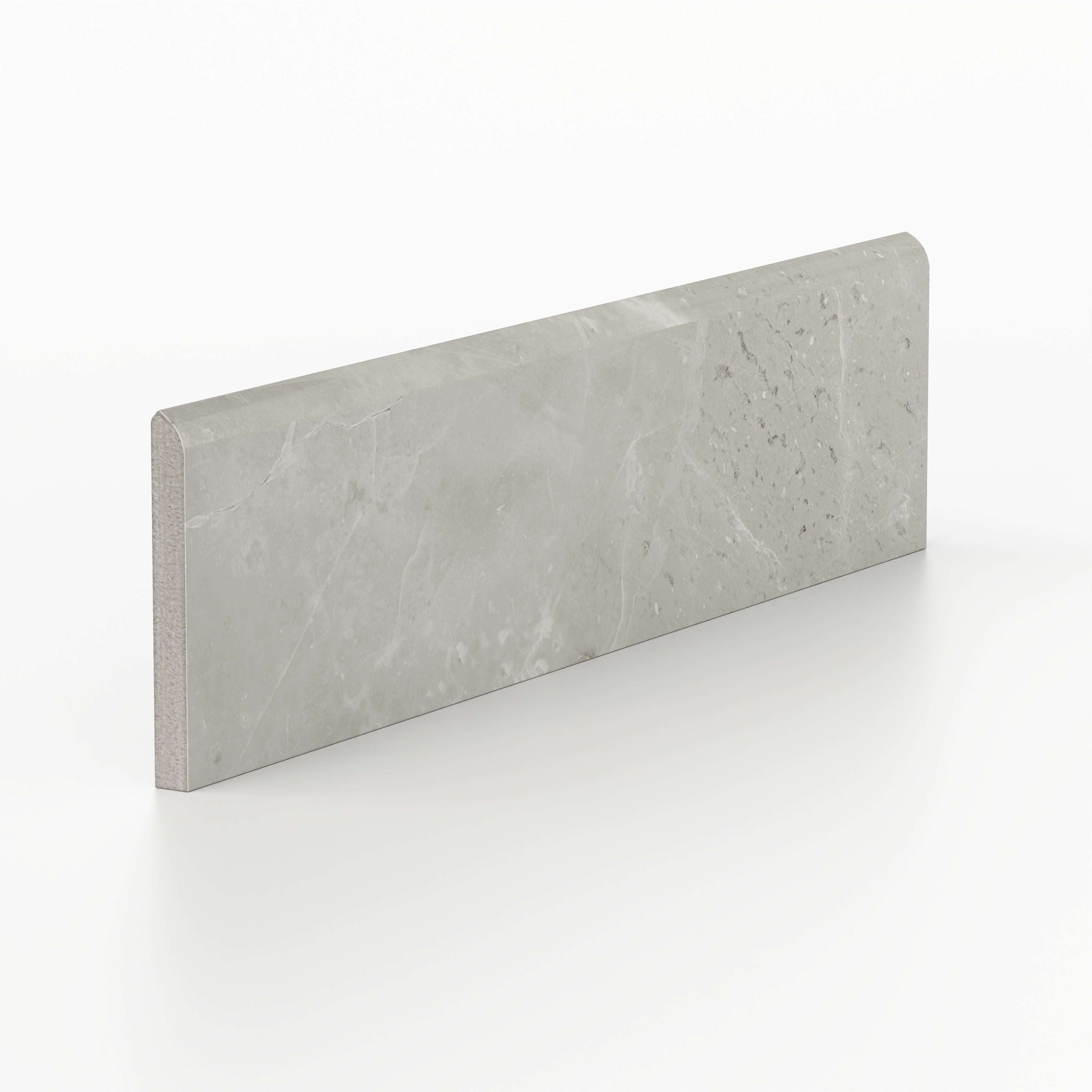 Our Blair 3x12 Polished Porcelain Bullnose Tile in Oniciata Beige completes the collection with the same sophisticated Oniciata stone look in muted, mineral beige. Featuring a delicate, naturally varied veining and a lustrous glaze, this finishing piece ensures a cohesive edge treatment for shower surrounds, backsplashes, and transitional details.