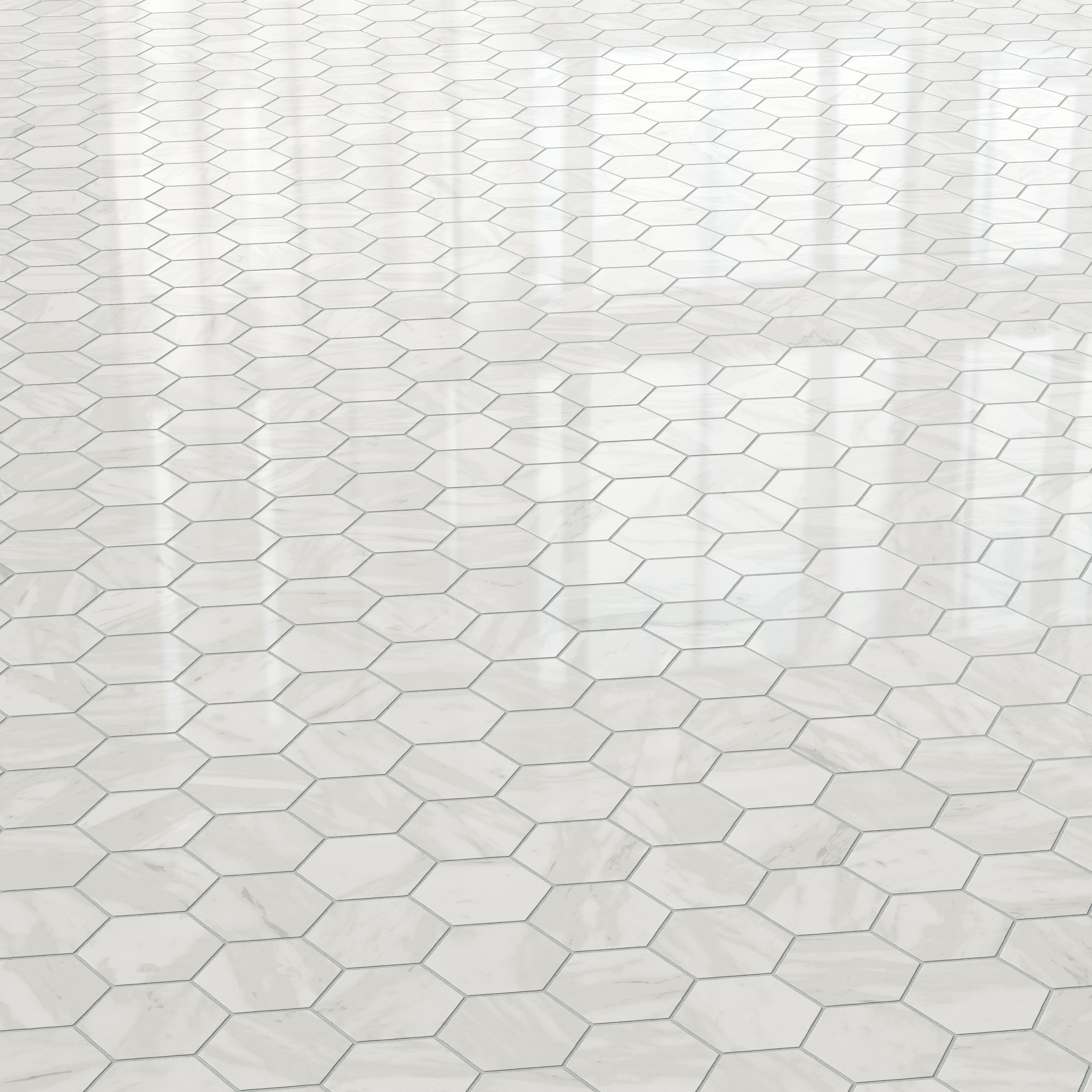Blair 3x3 Polished Porcelain Hexagon Mosaic Tile in Volakas White