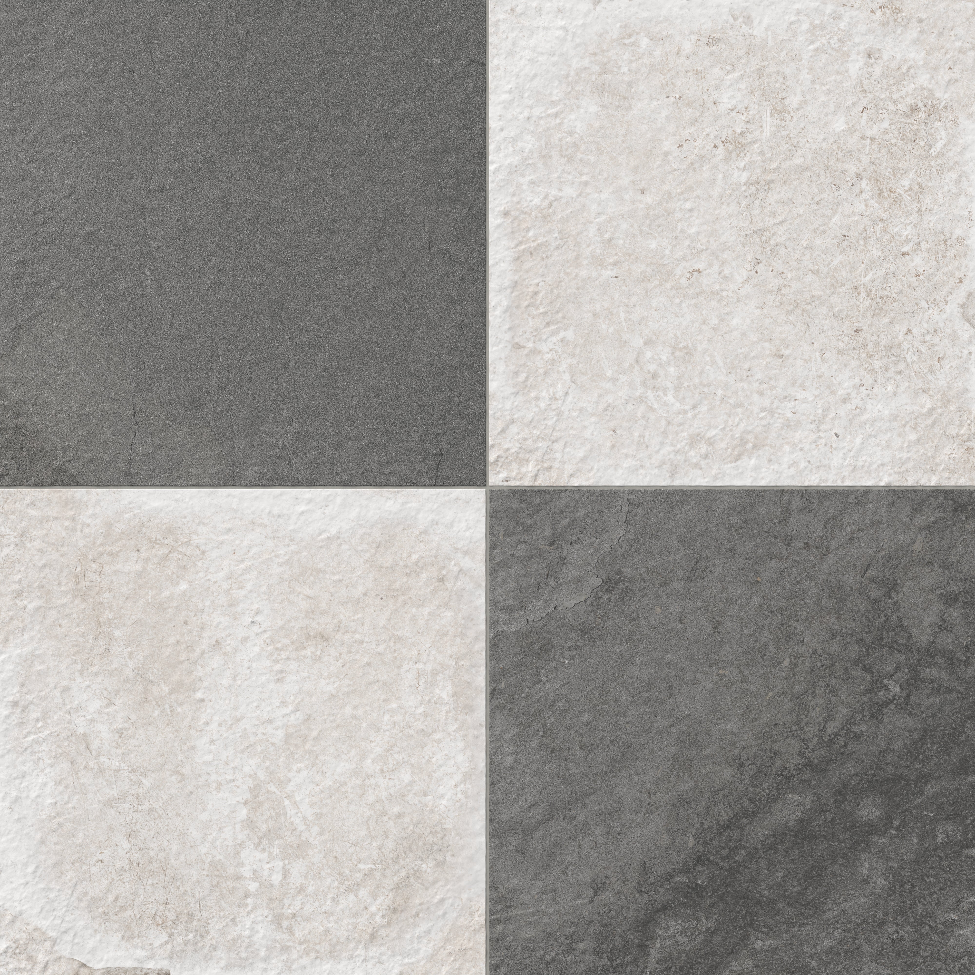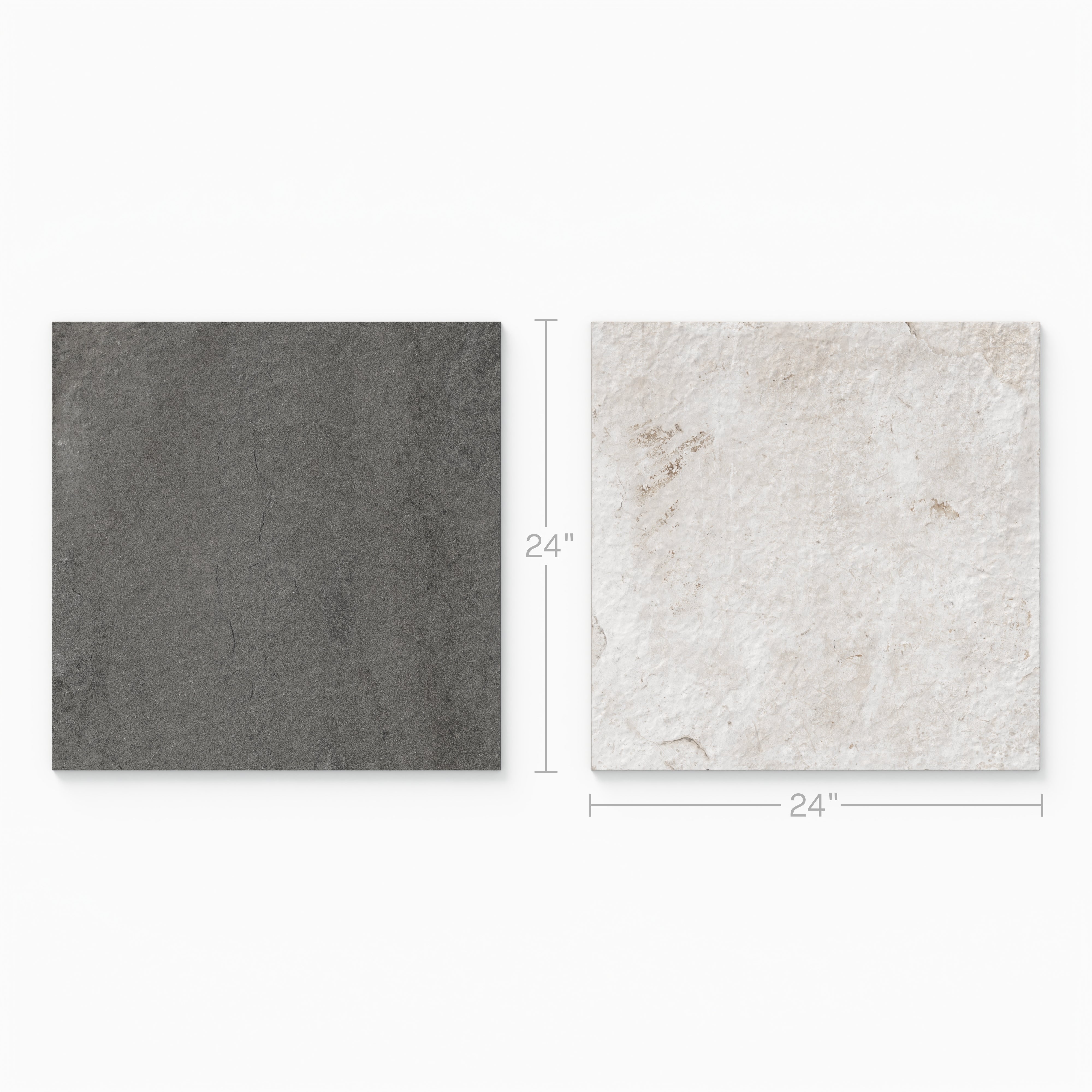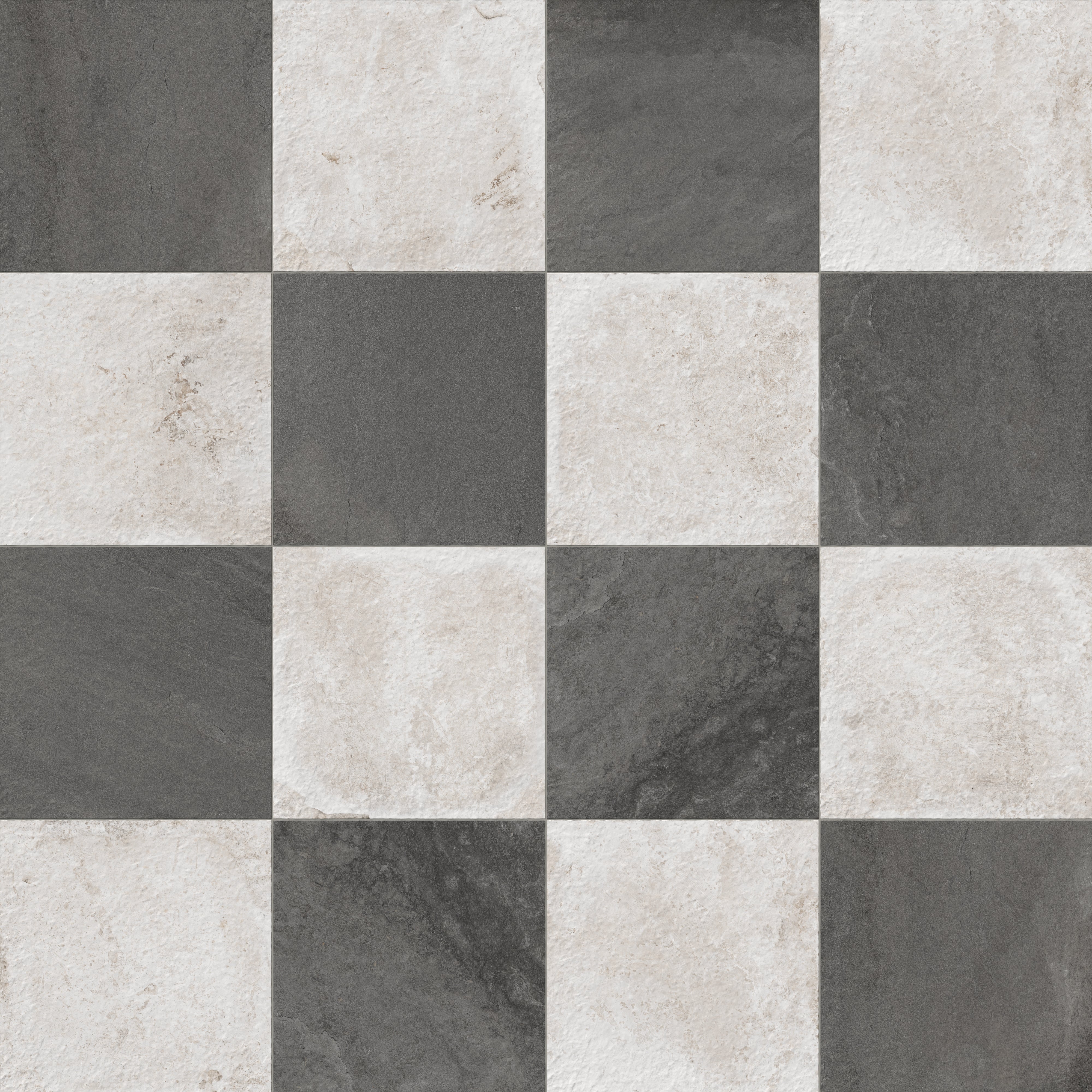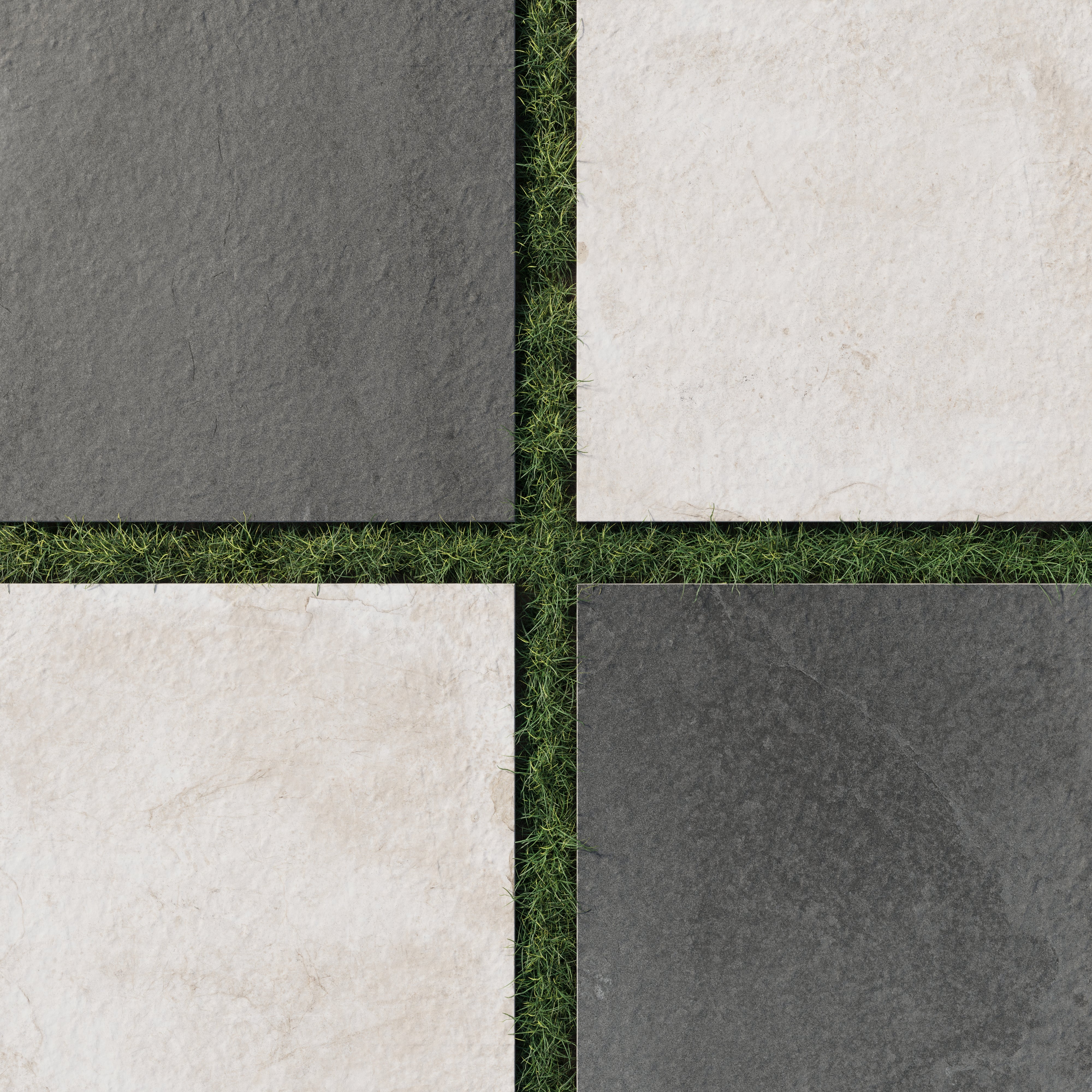 Honoring the raw beauty of the Dolomites that rise out of Italy’s Trentino region, our Bowden 24x24 Checkerboard Grip 2cm Porcelain Paver Tile in Charcoal & Oat reflects their fine-grained texture and natural geological contrasts through shifting tones of dark gray and warm beige. Together, they form a large-scale design that feels elemental yet practically modern, bringing the presence of the world-renowned alpine rock formations they’re inspired from right into your own exterior landscapes.