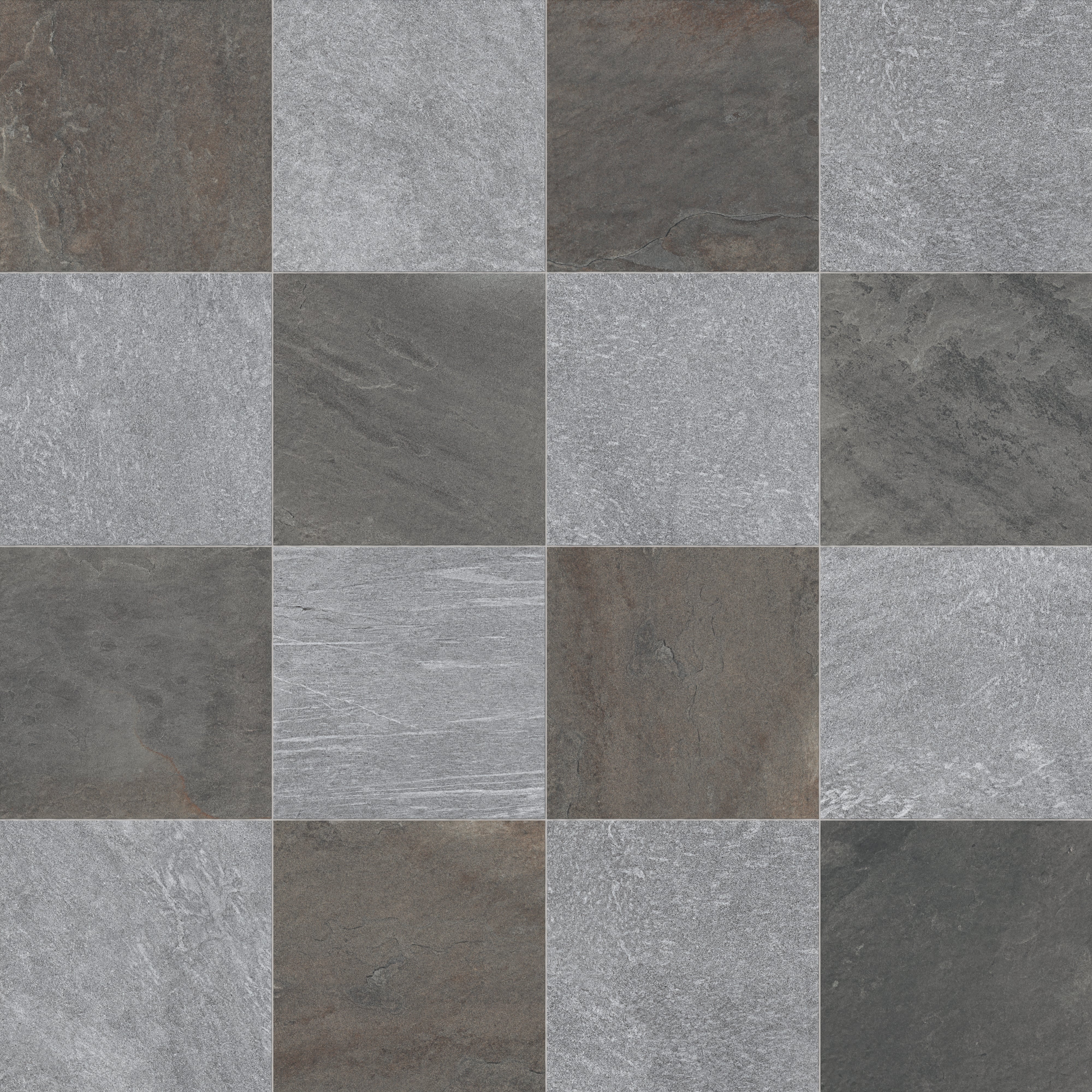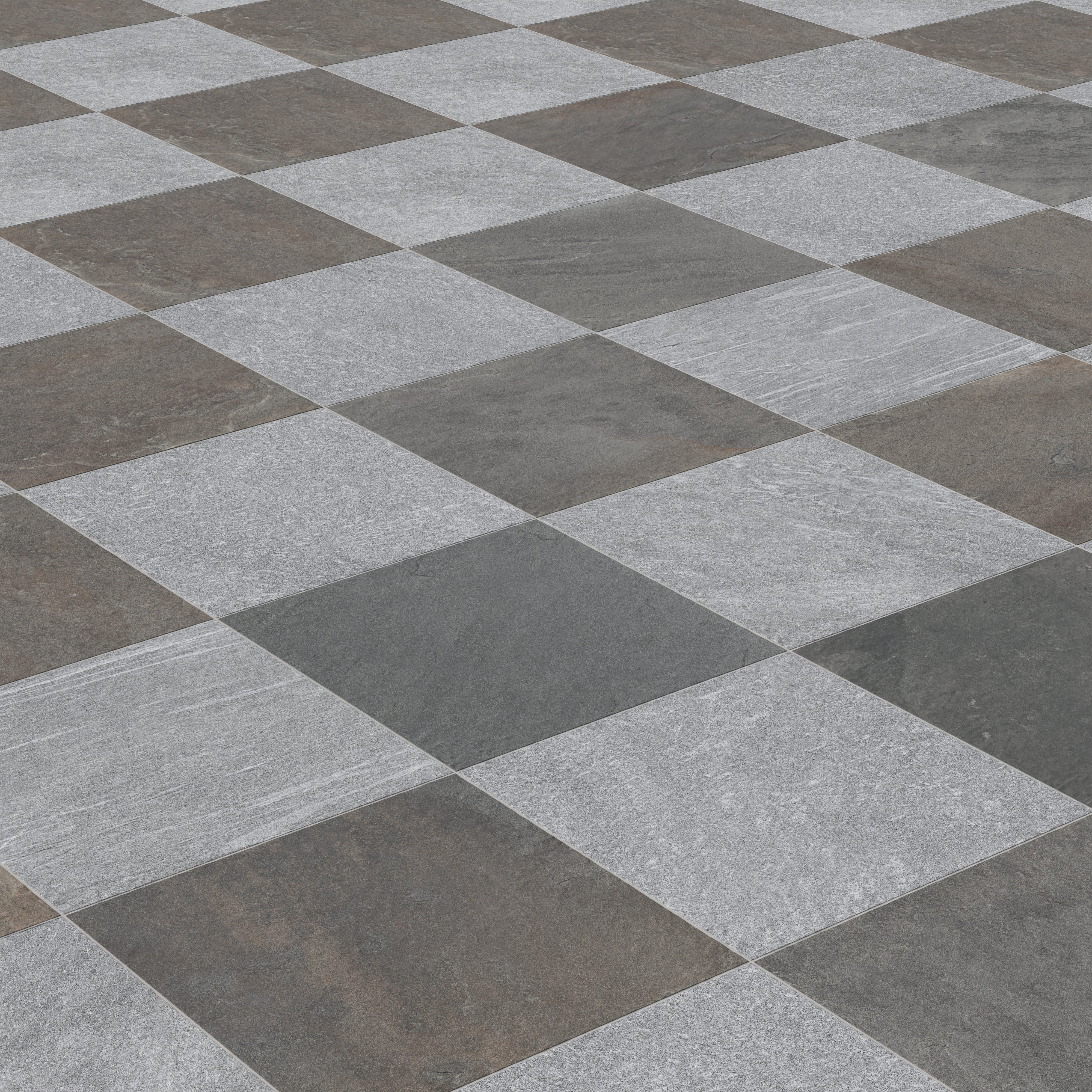 Honoring the raw beauty of the Dolomites that rise out of Italy’s Trentino region, our Bowden 24x24 Checkerboard Grip 2cm Porcelain Paver Tile in Mutlicolor & Slate reflects their fine-grained texture and natural geological contrasts through shifting tones of light and earthen grays. Together, they form a large-scale design that feels elemental yet practically modern, bringing the presence of the world-renowned alpine rock formations they’re inspired from right into your own exterior landscapes.