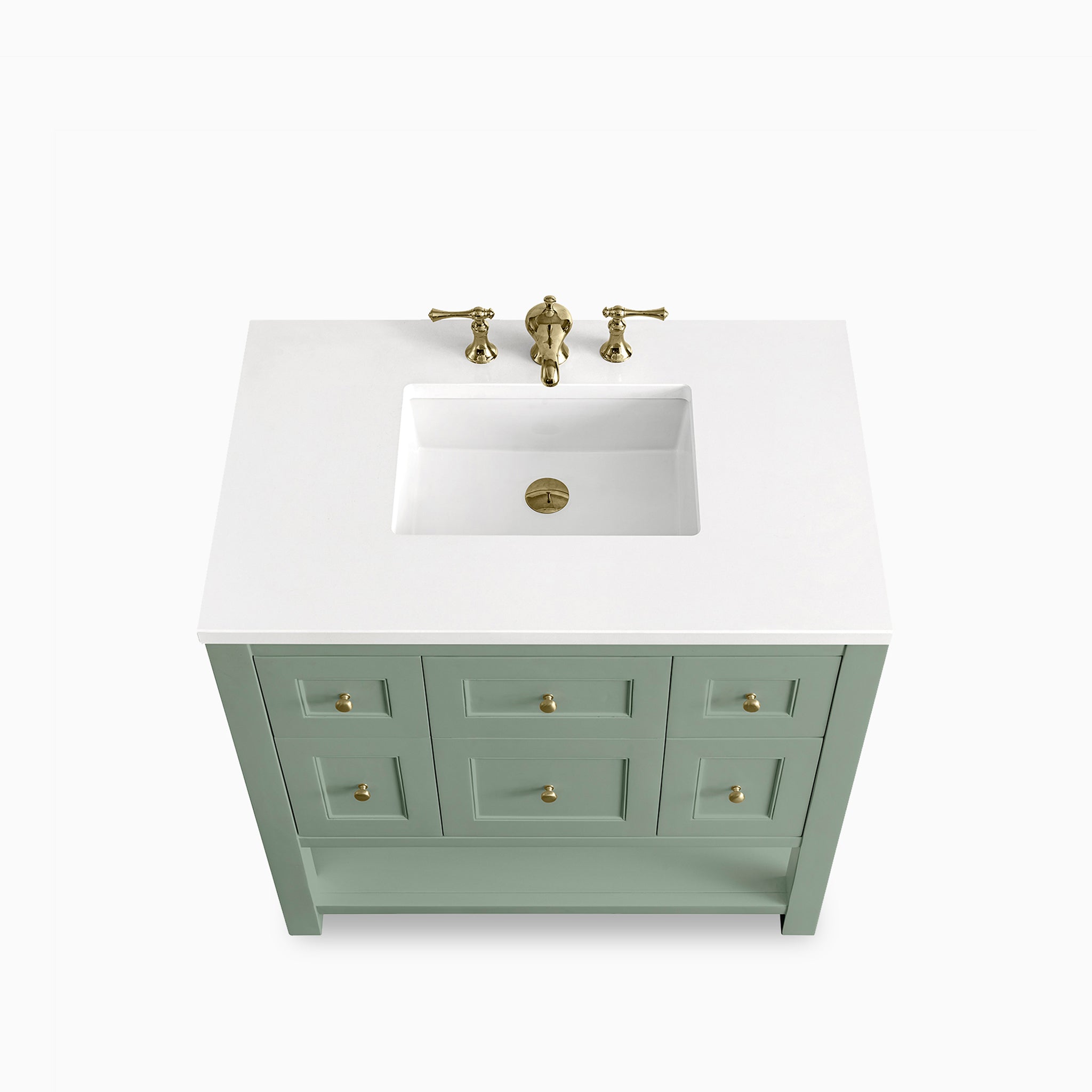 Bridgette 36" Single Vanity in Smokey Celadon with 3 cm White Zeus Quartz Top